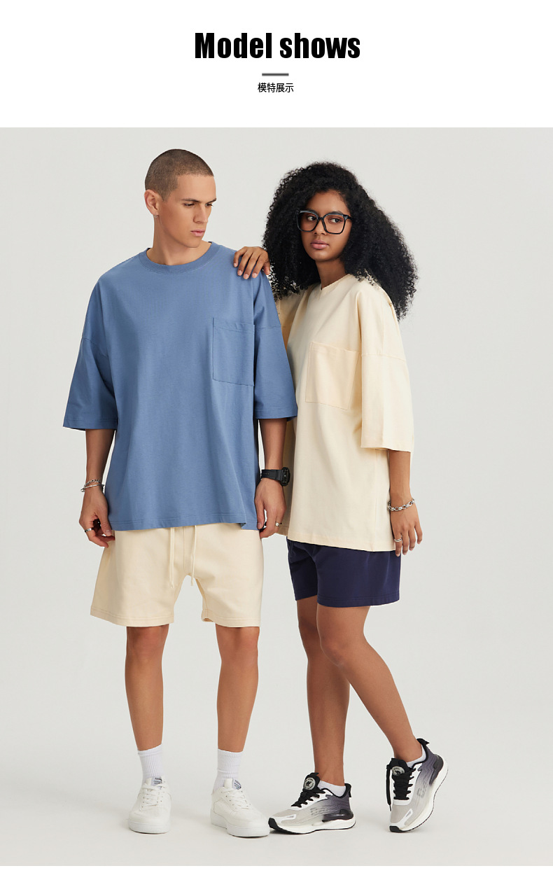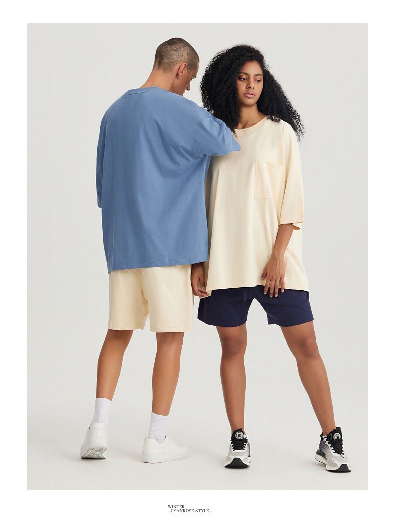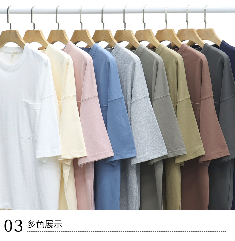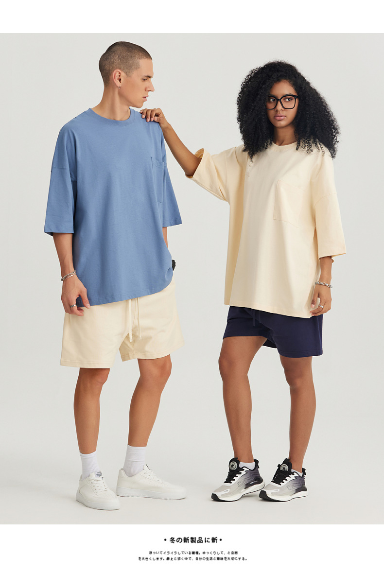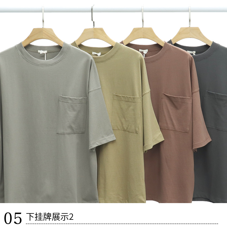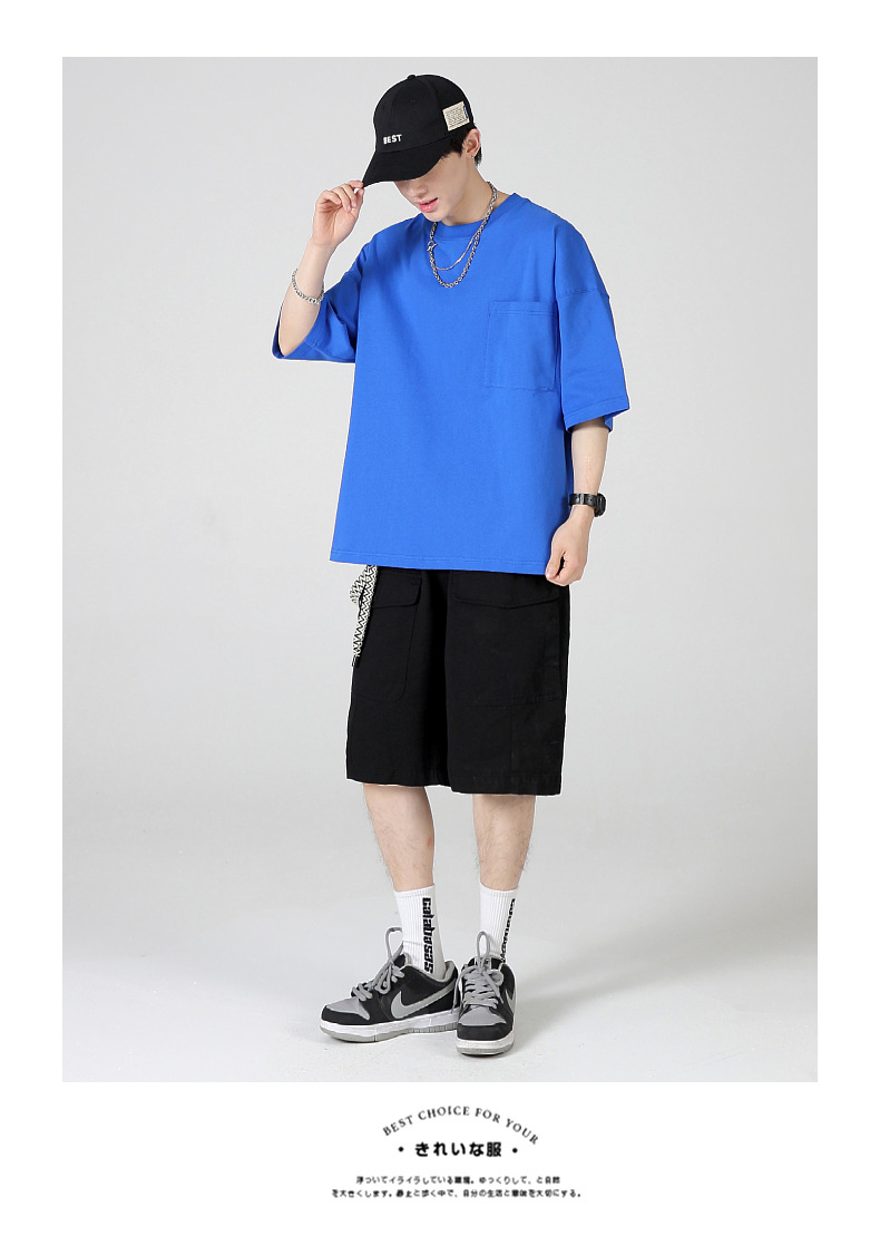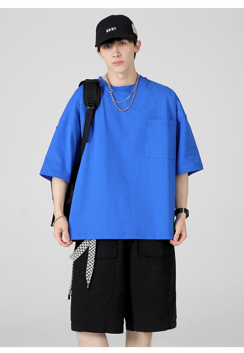 Ropa de hombre LVLV | Algodón pesado transfronterizo ancho fuera del hombro Bolsillo de manga de 5 puntos High Street Camiseta de marca de moda de comercio exterior ancho T