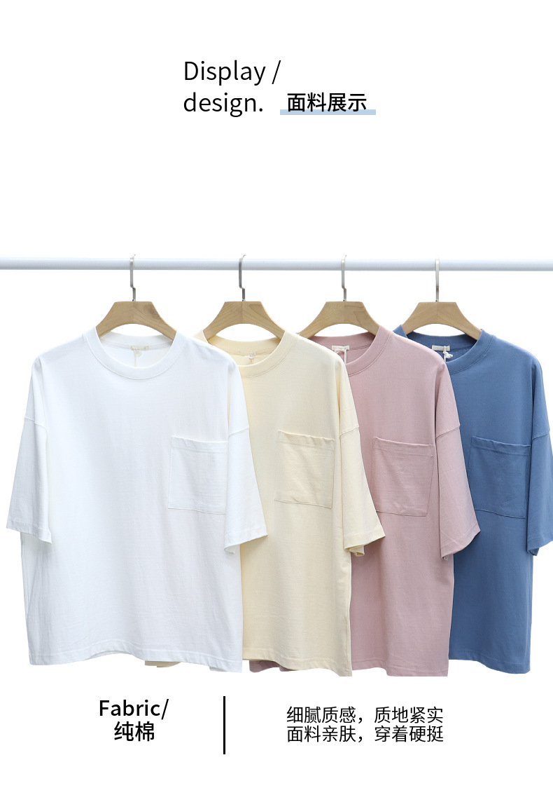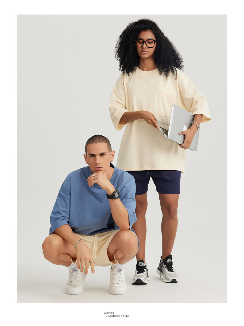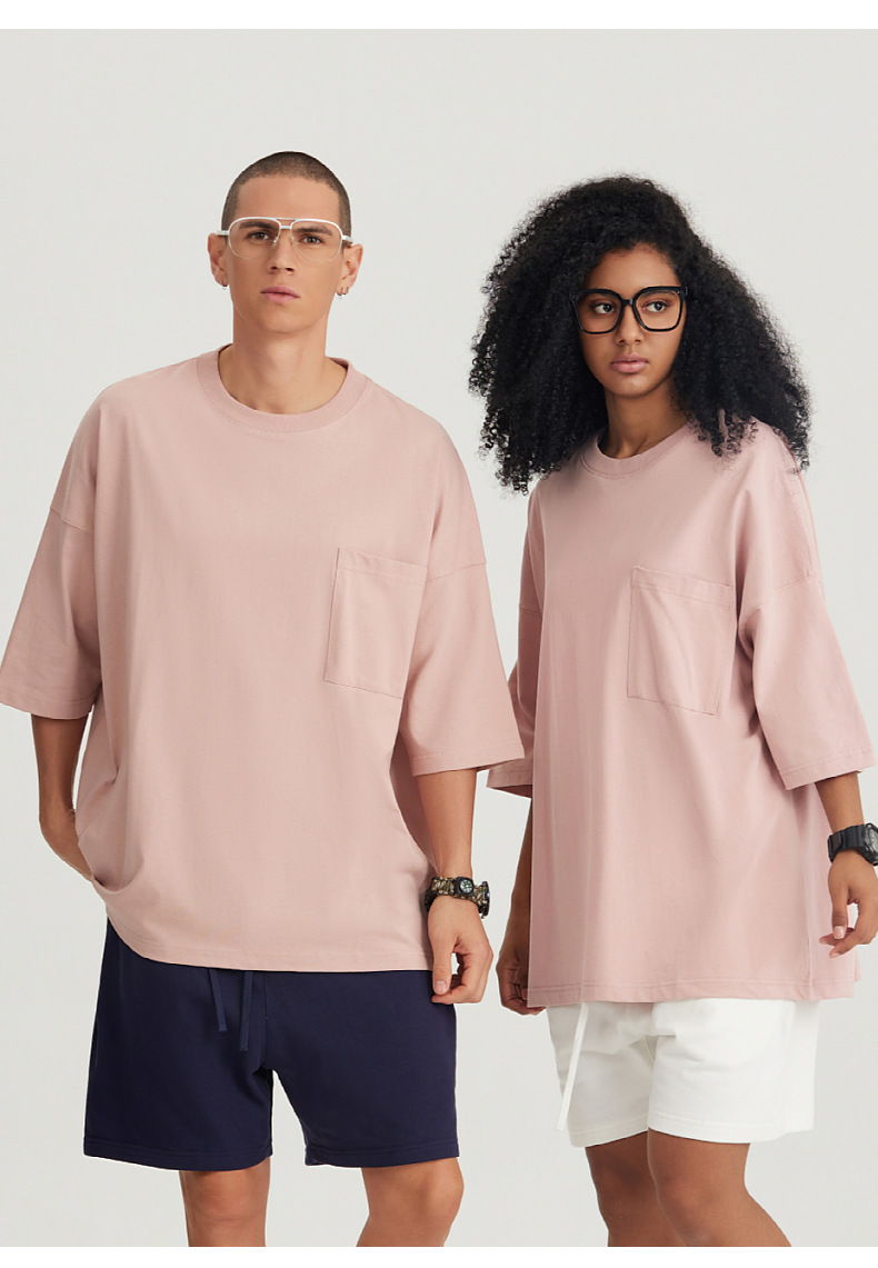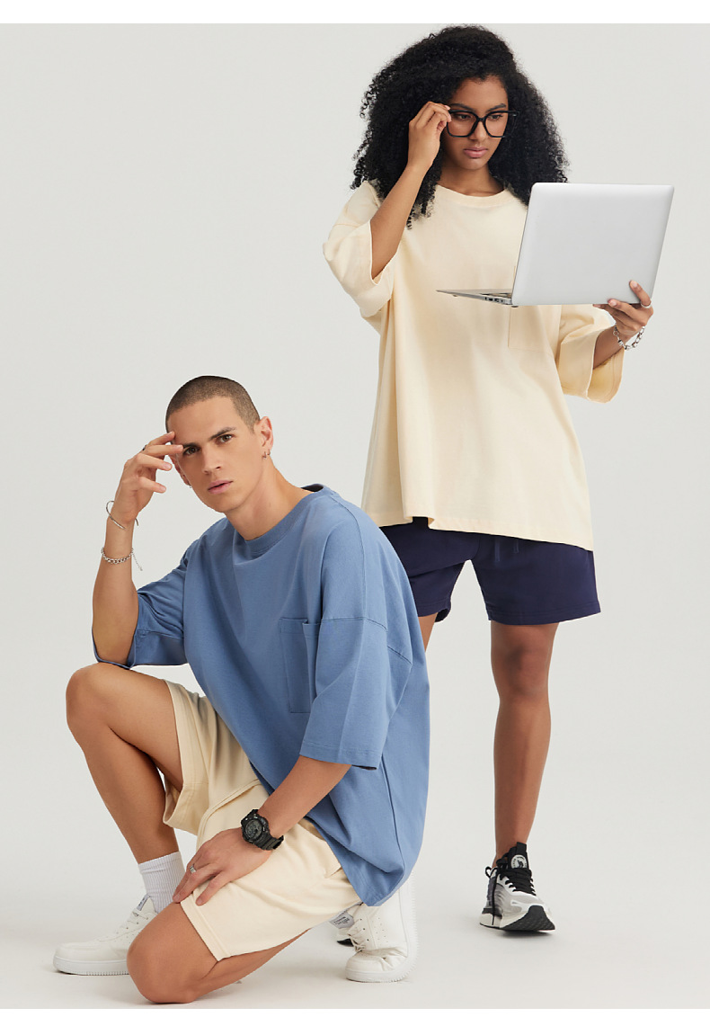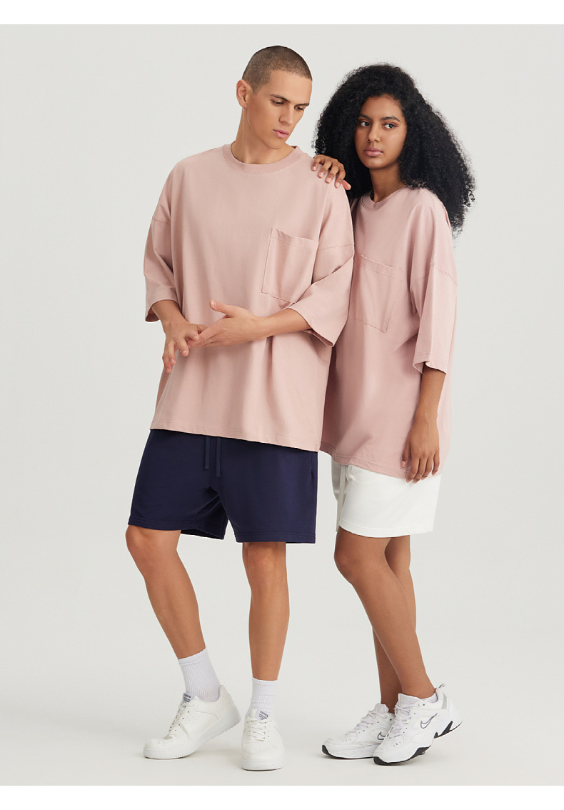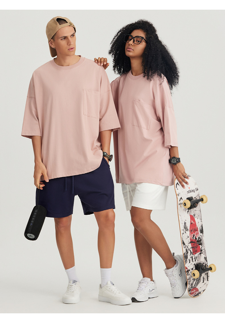 Ropa de hombre LVLV | Algodón pesado transfronterizo ancho fuera del hombro Bolsillo de manga de 5 puntos High Street Camiseta de marca de moda de comercio exterior ancho T