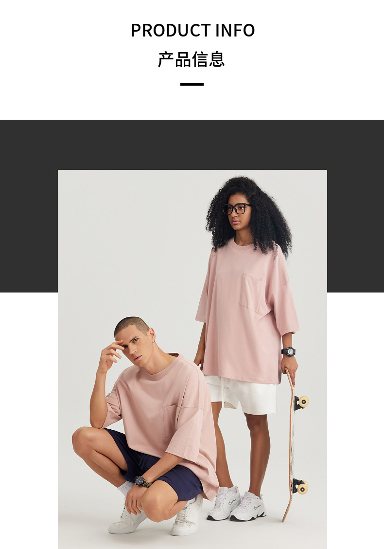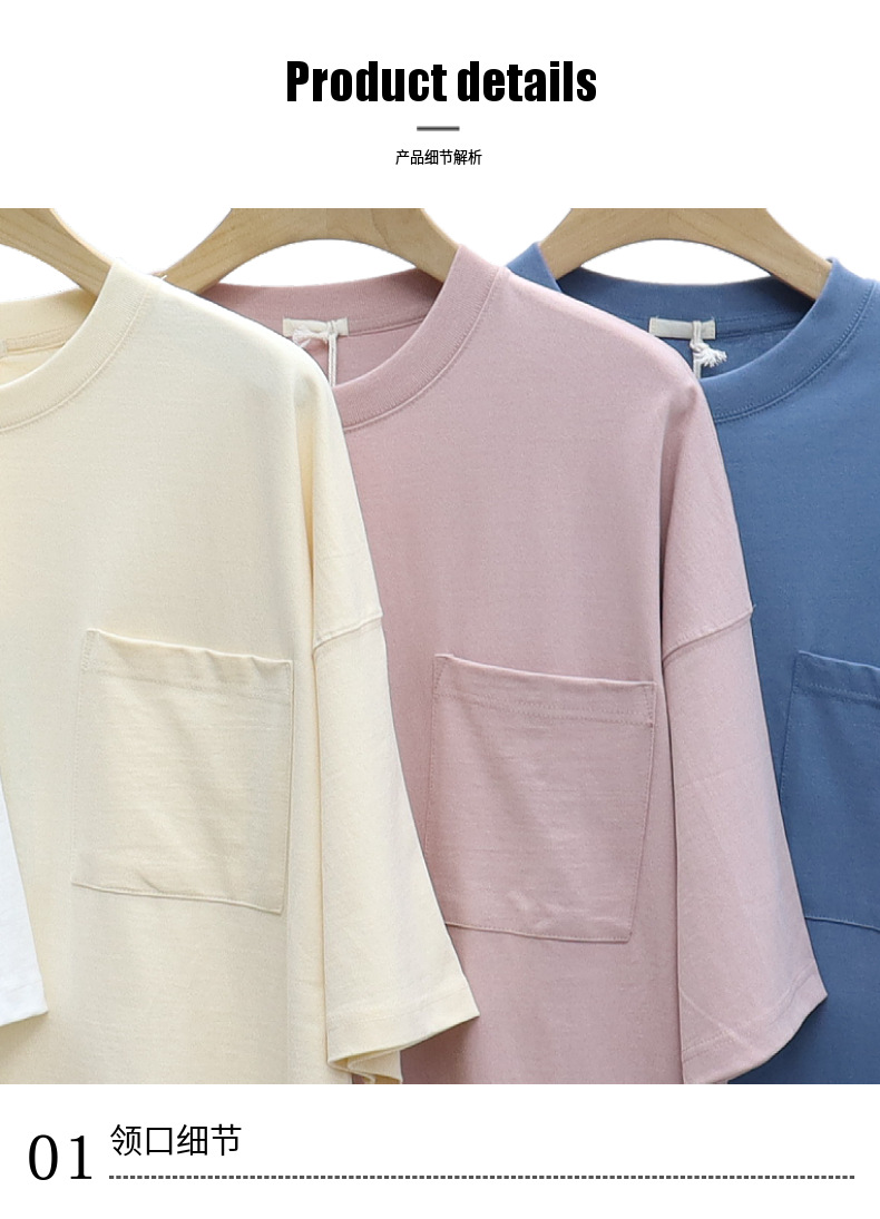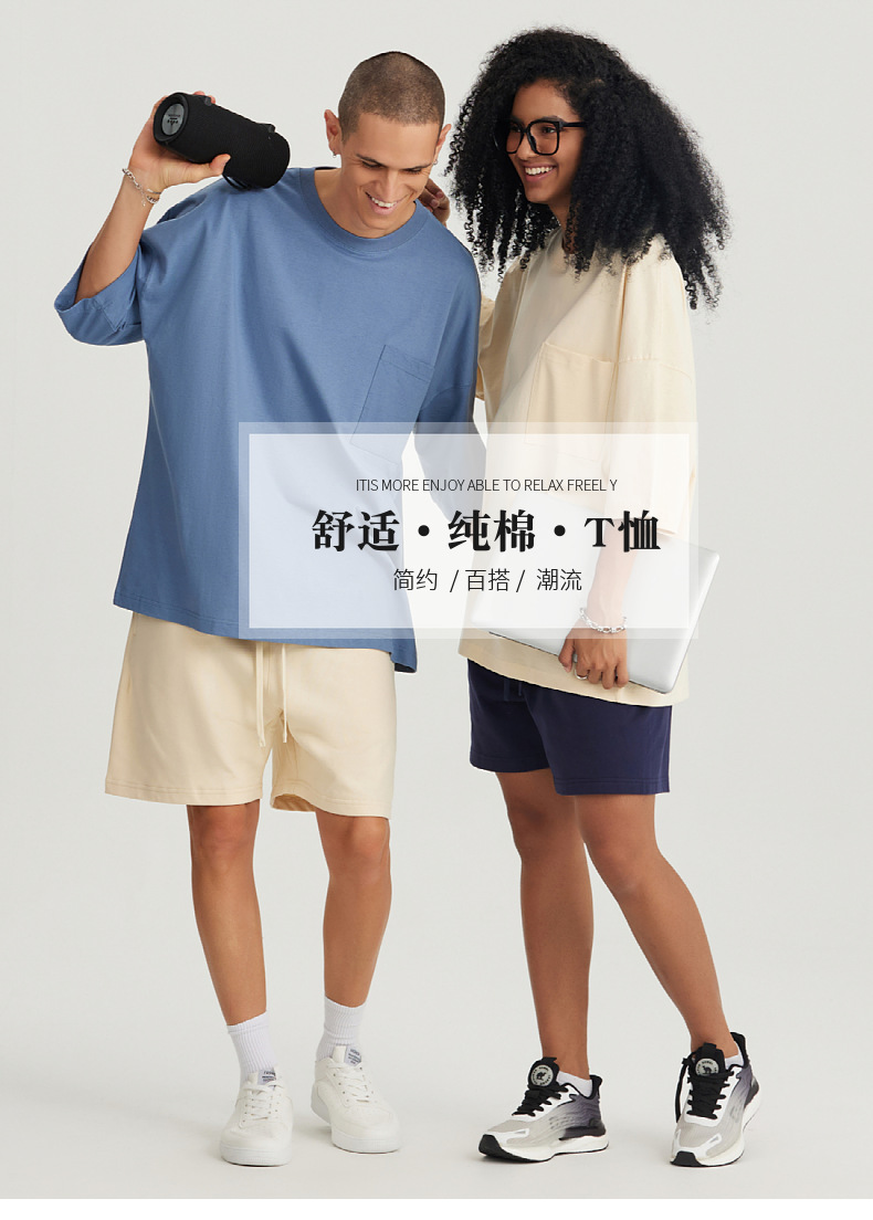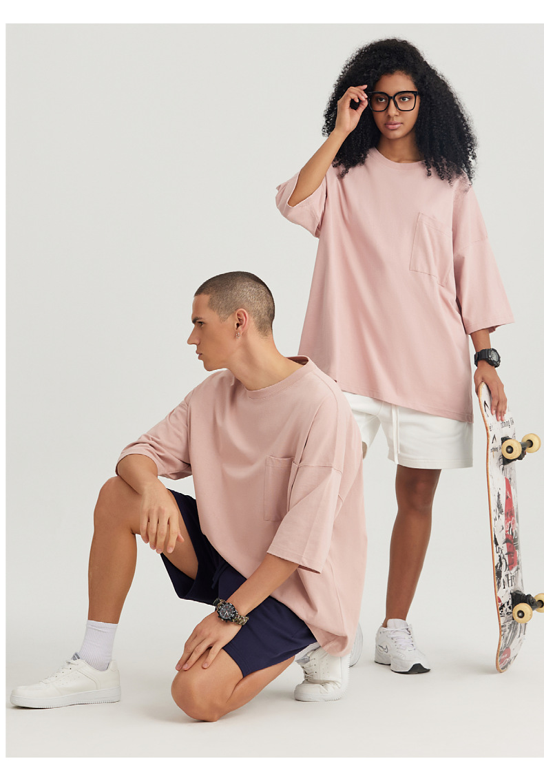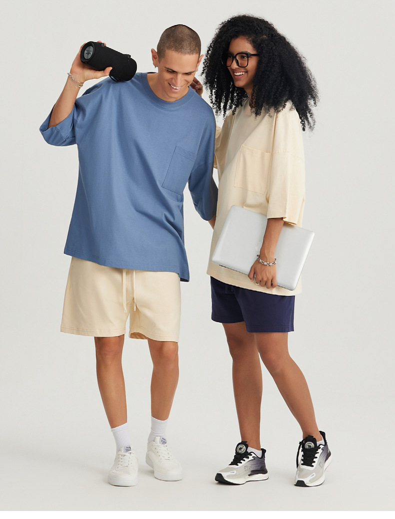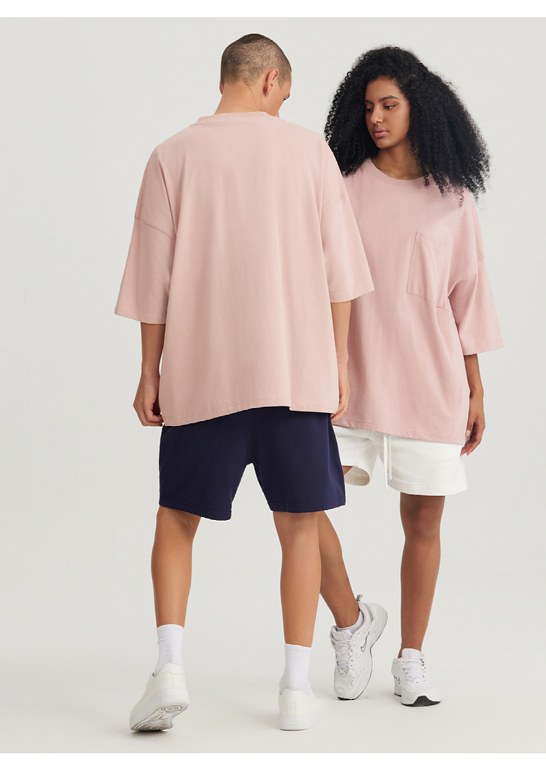 Ropa de hombre LVLV | Algodón pesado transfronterizo ancho fuera del hombro Bolsillo de manga de 5 puntos High Street Camiseta de marca de moda de comercio exterior ancho T