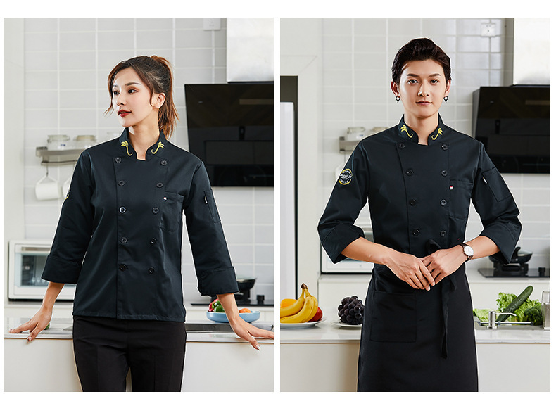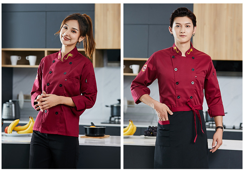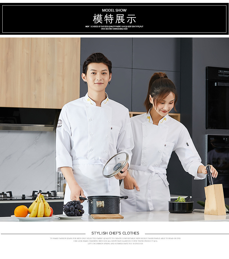 Ropa de chef de manga corta para hombres y mujeres ropa de trabajo de cocina de restaurante ropa de otoño e invierno sala de pasteles ropa de trabajo para hornear manga larga