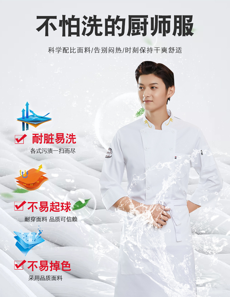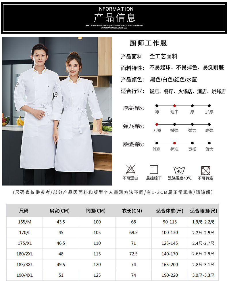 | Ingredientes del forro | Ropa de chef de manga corta para hombres y mujeres ropa de trabajo de cocina de restaurante ropa de otoño e invierno sala de pasteles ropa de trabajo para hornear manga larga |
