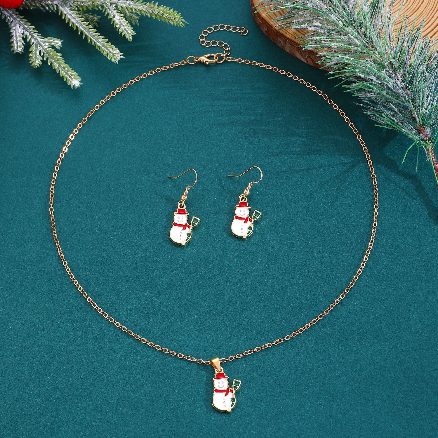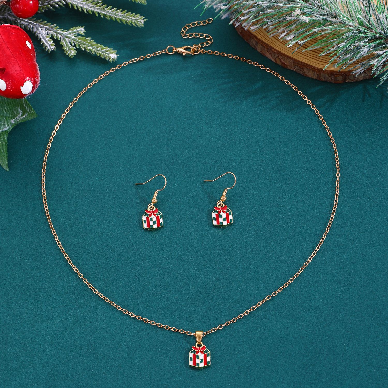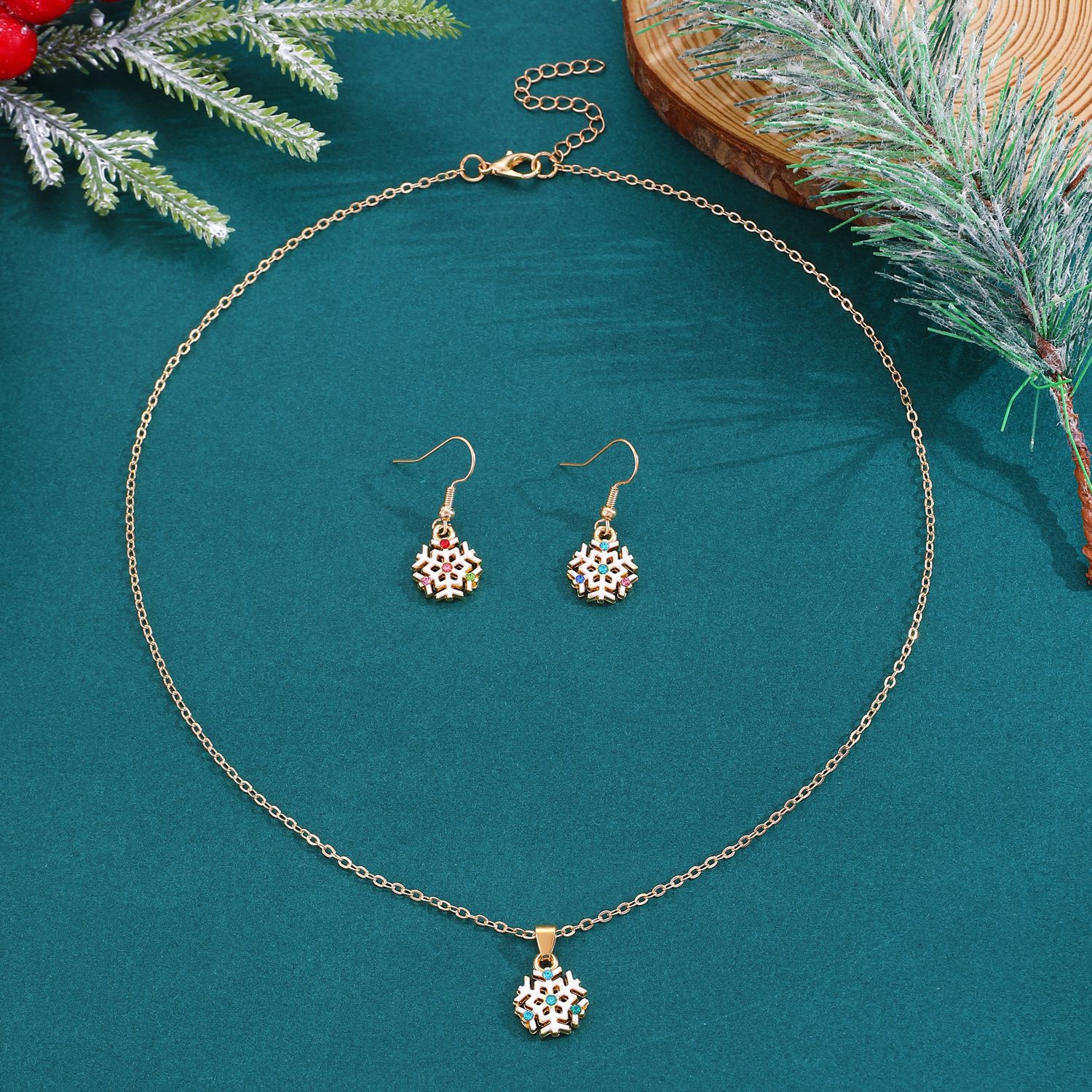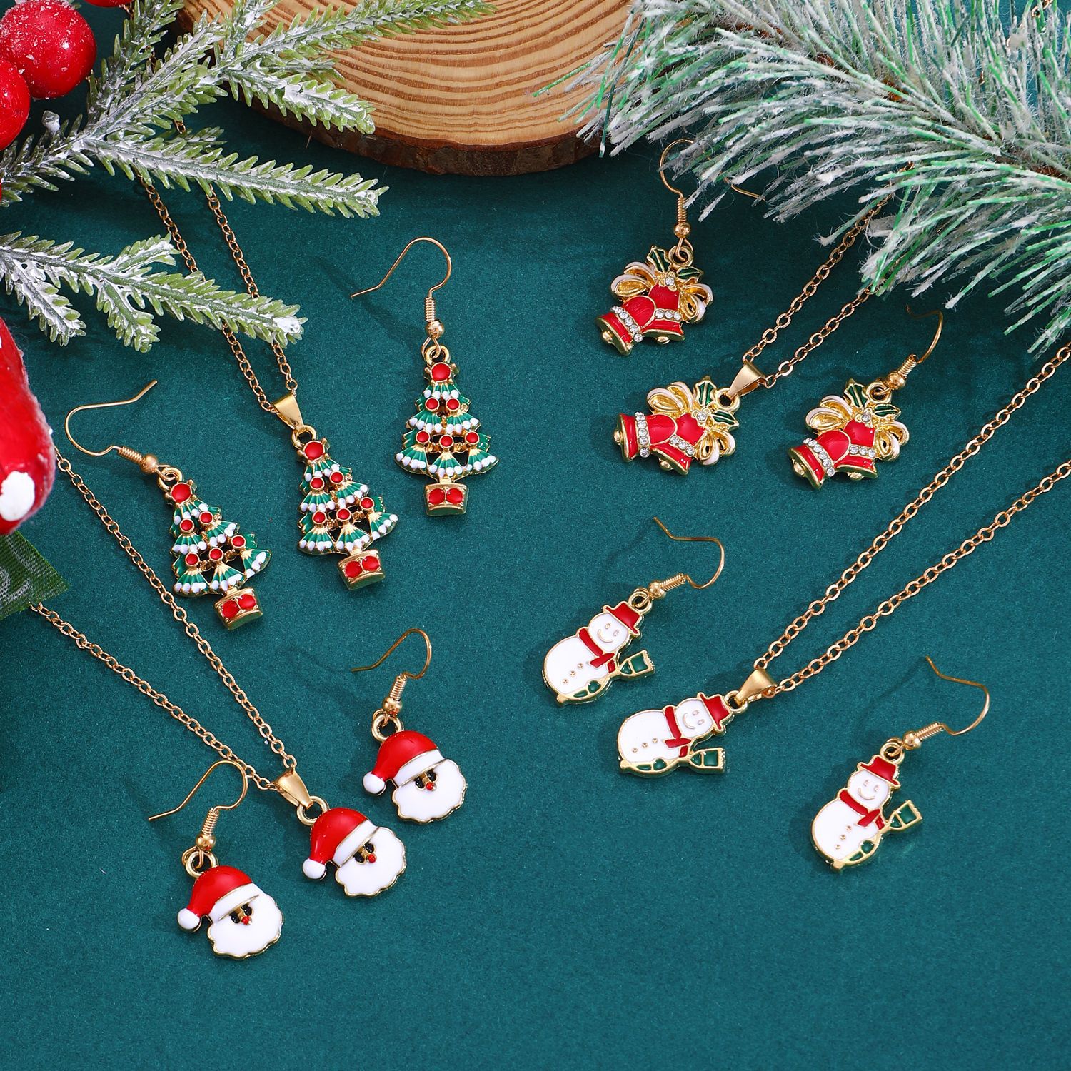 Nuevo traje de joyería de Navidad estilo ins femenino europeo y americano creativo muñeco de nieve copo de nieve collar de campana de Navidad pendientes