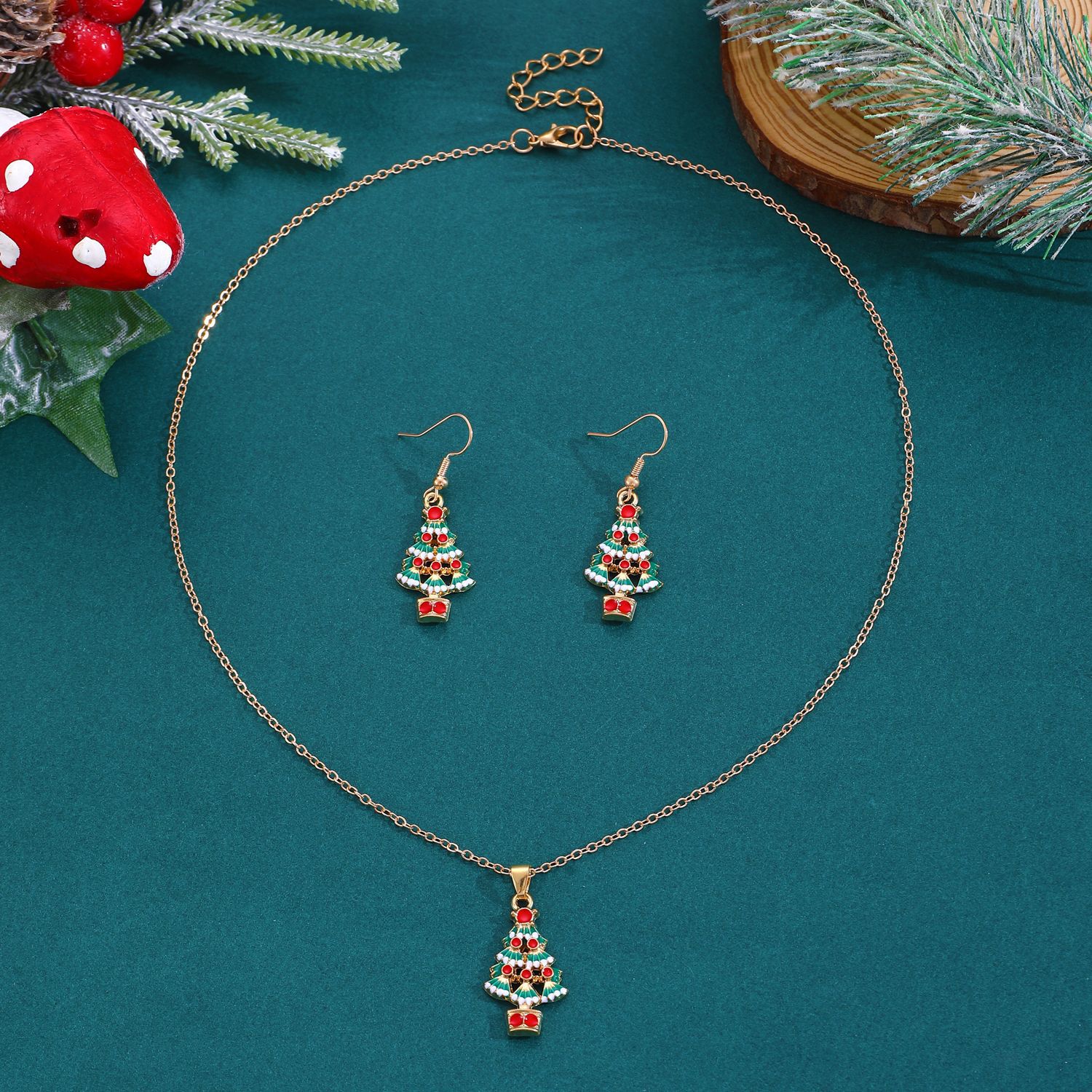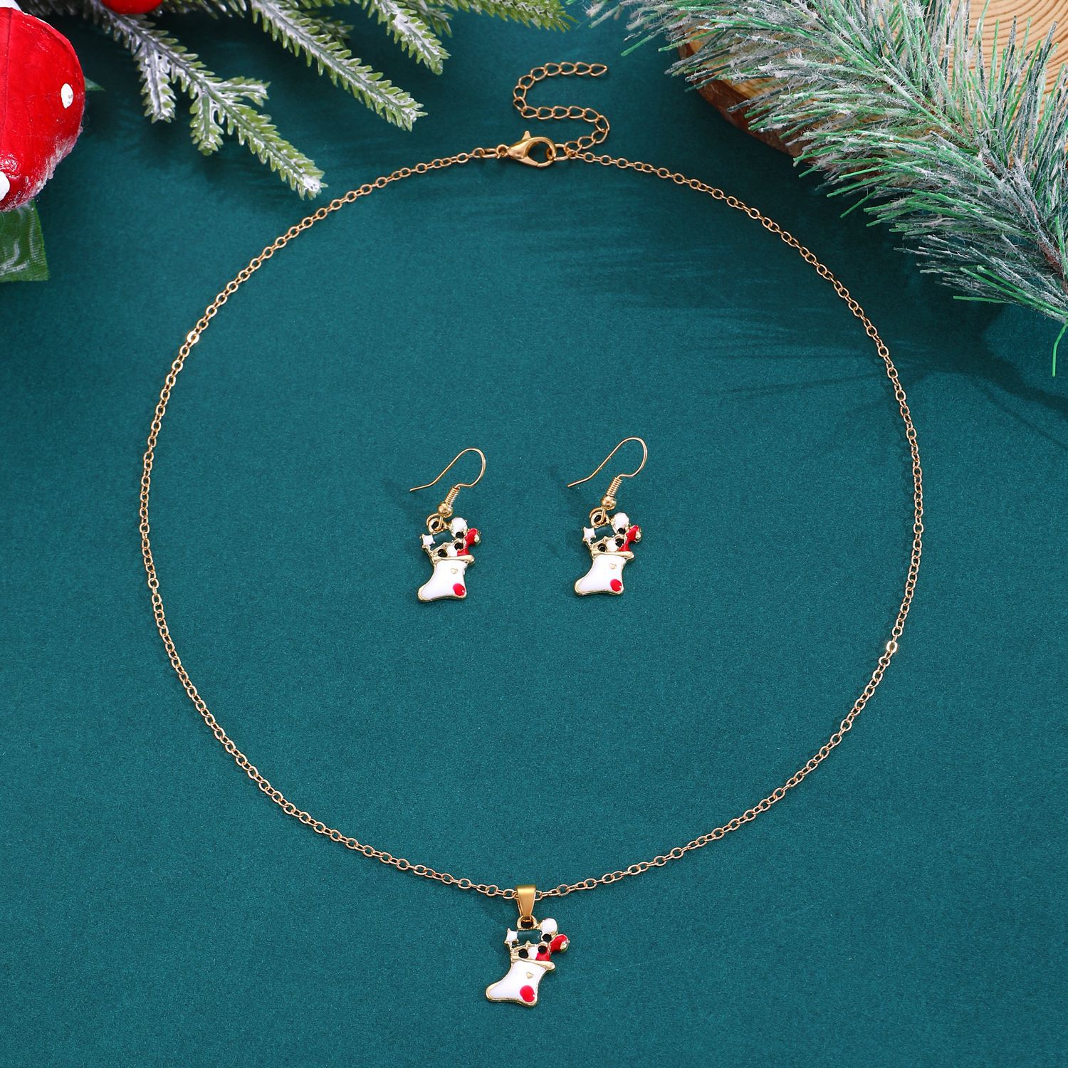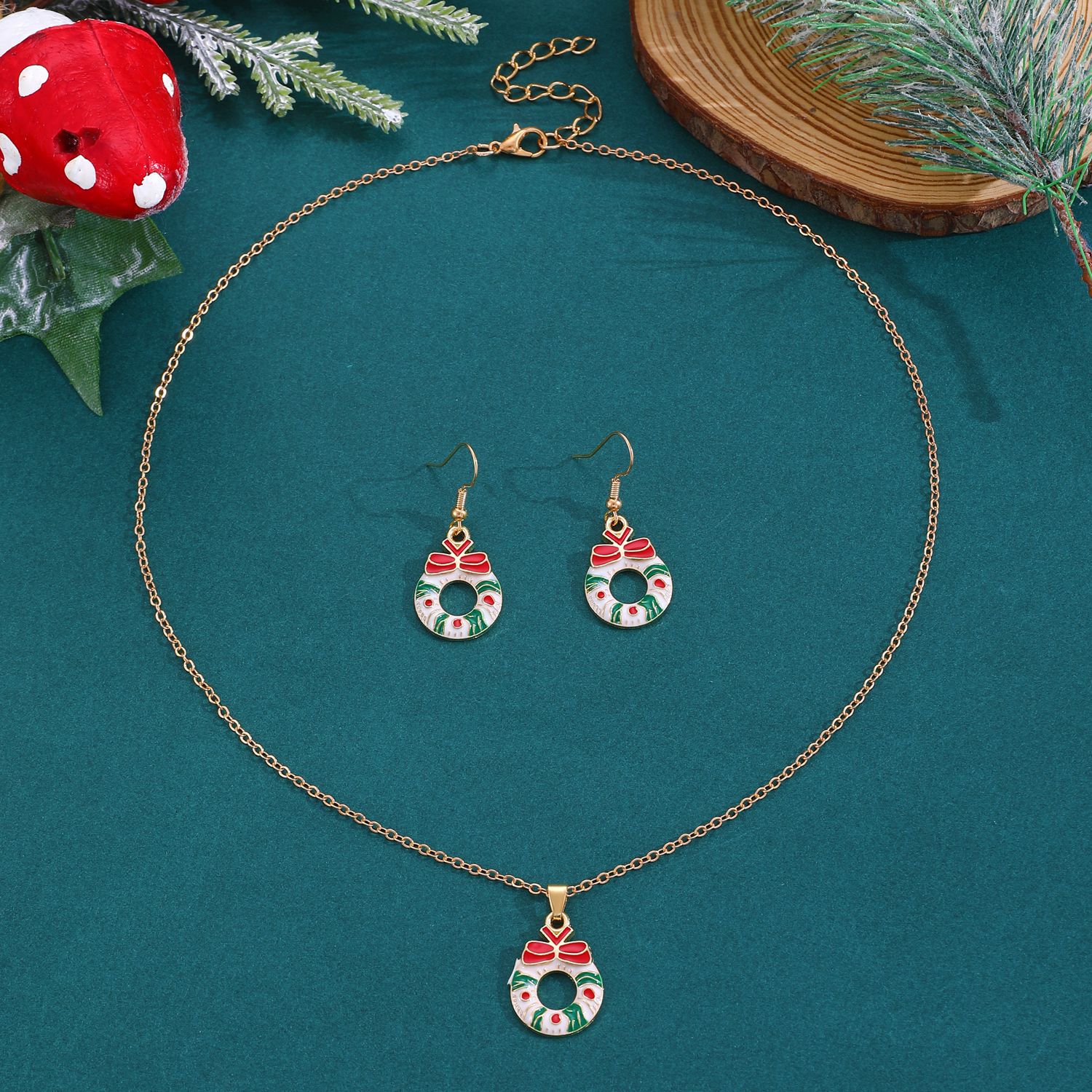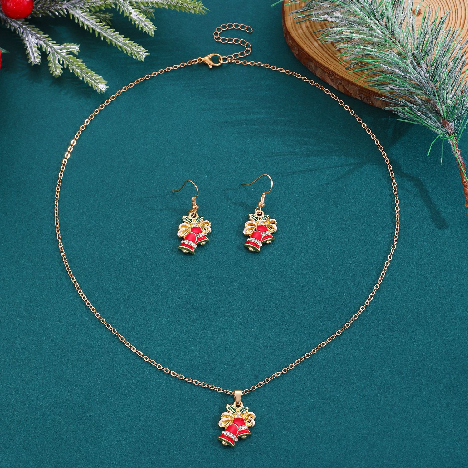Nuevo traje de joyería de Navidad estilo ins femenino europeo y americano creativo muñeco de nieve copo de nieve collar de campana de Navidad pendientes