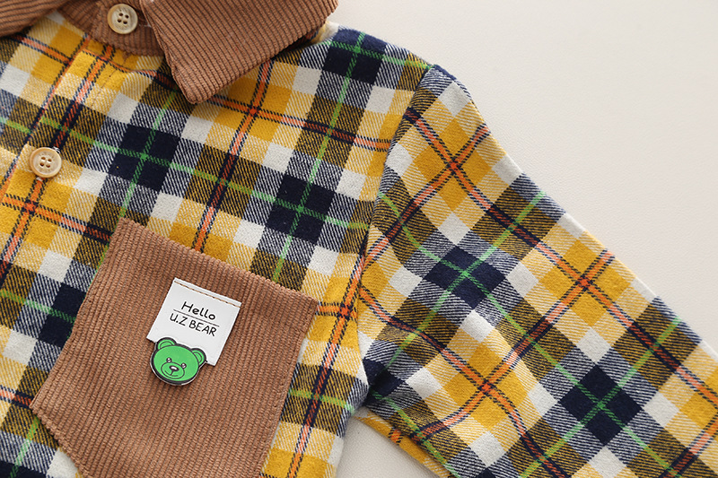 Muchachos otoño nuevo de alta calidad de doble cara de algodón puro cepillado moda fresca de moda camisa de manga larga ropa de otoño primera ropa para niños