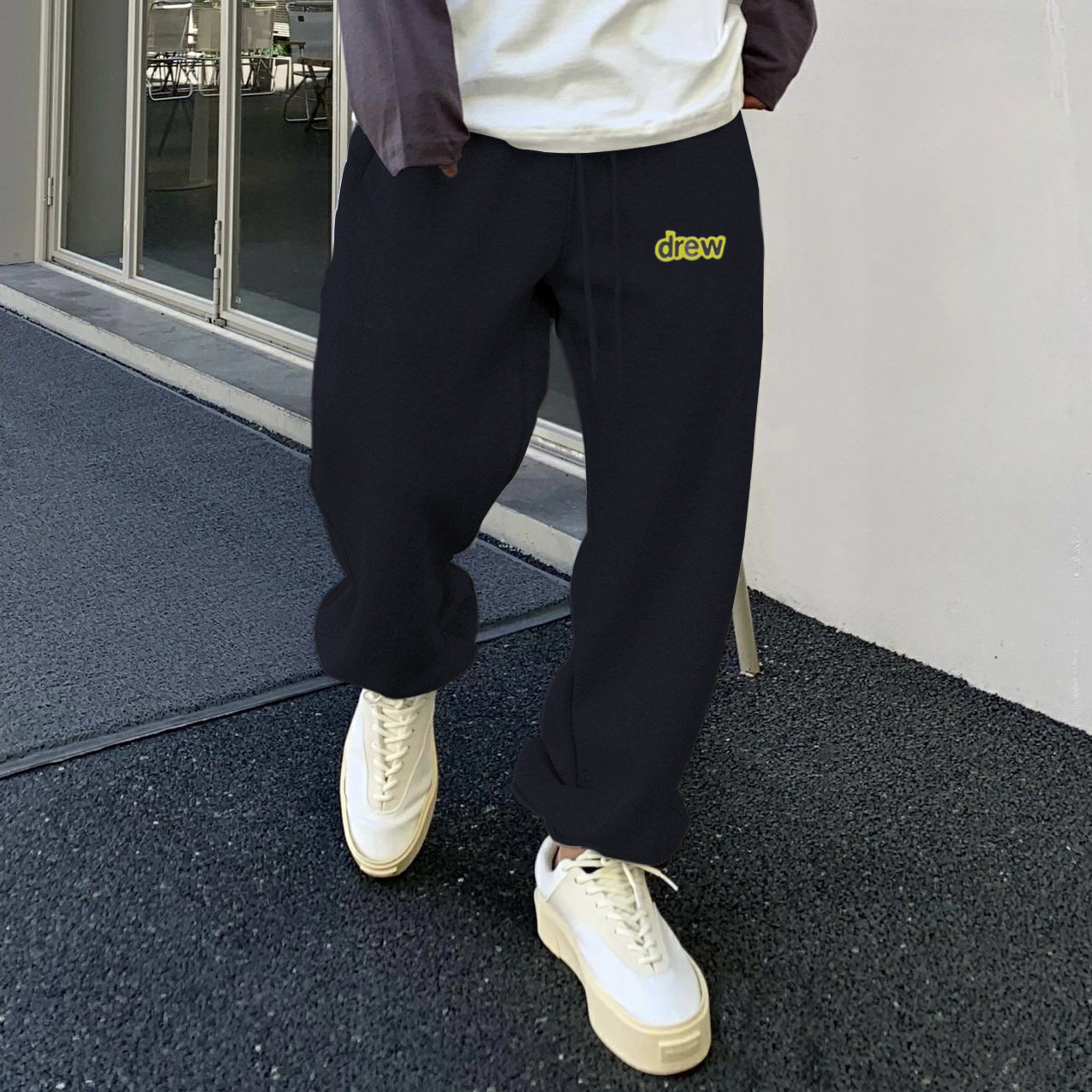 NOEASY Smiley face letter DREW nicho marca de moda Otoño e Invierno estadounidense forrado de lana suelta casual tobillo-atado pantalones largos de los hombres