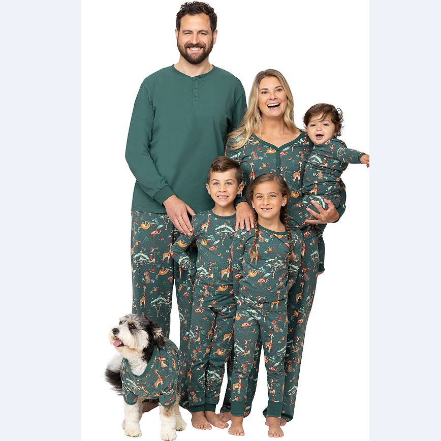 Ropa para padres e hijos para una familia de tres o cuatro modelos de primavera y otoño 2024 nuevo traje de Navidad de algodón para madre e hijo y mujer pijamas