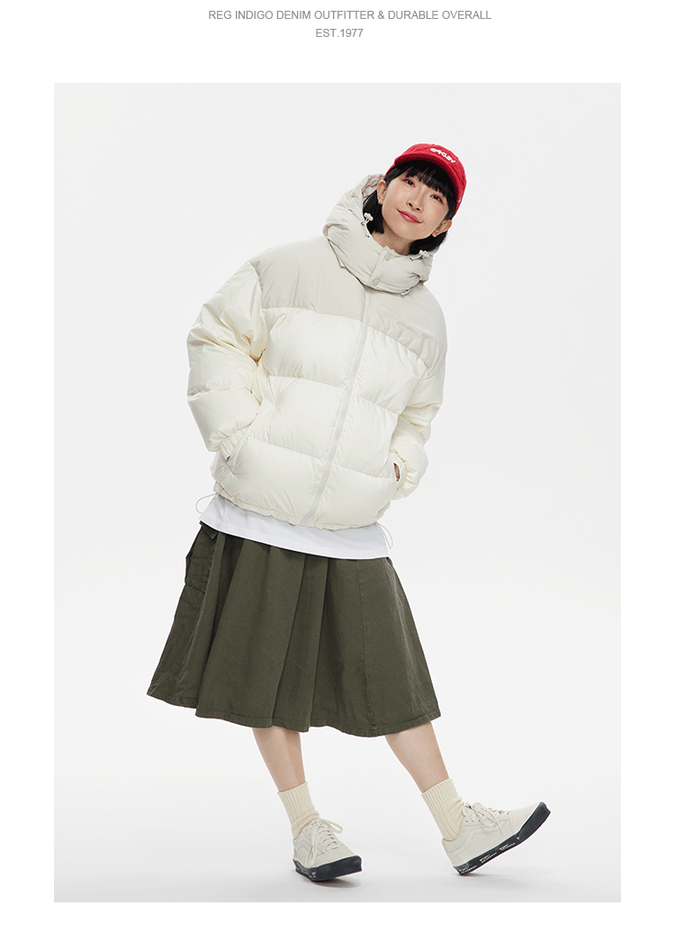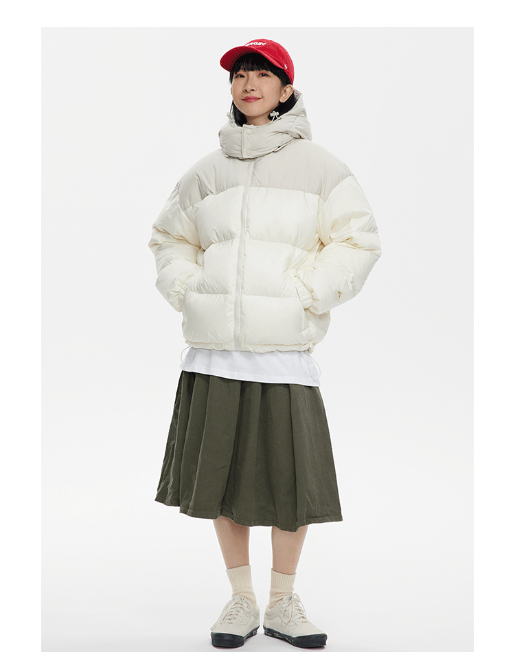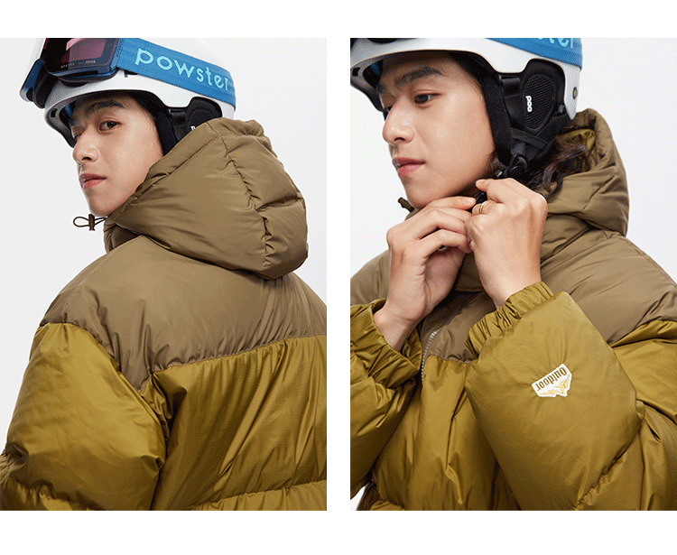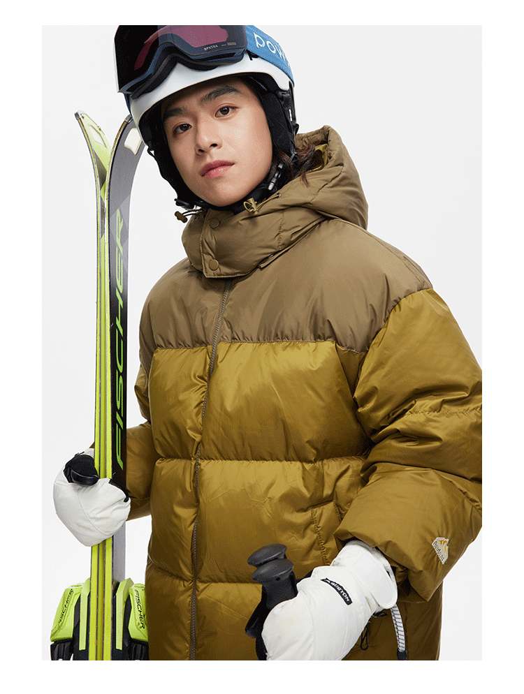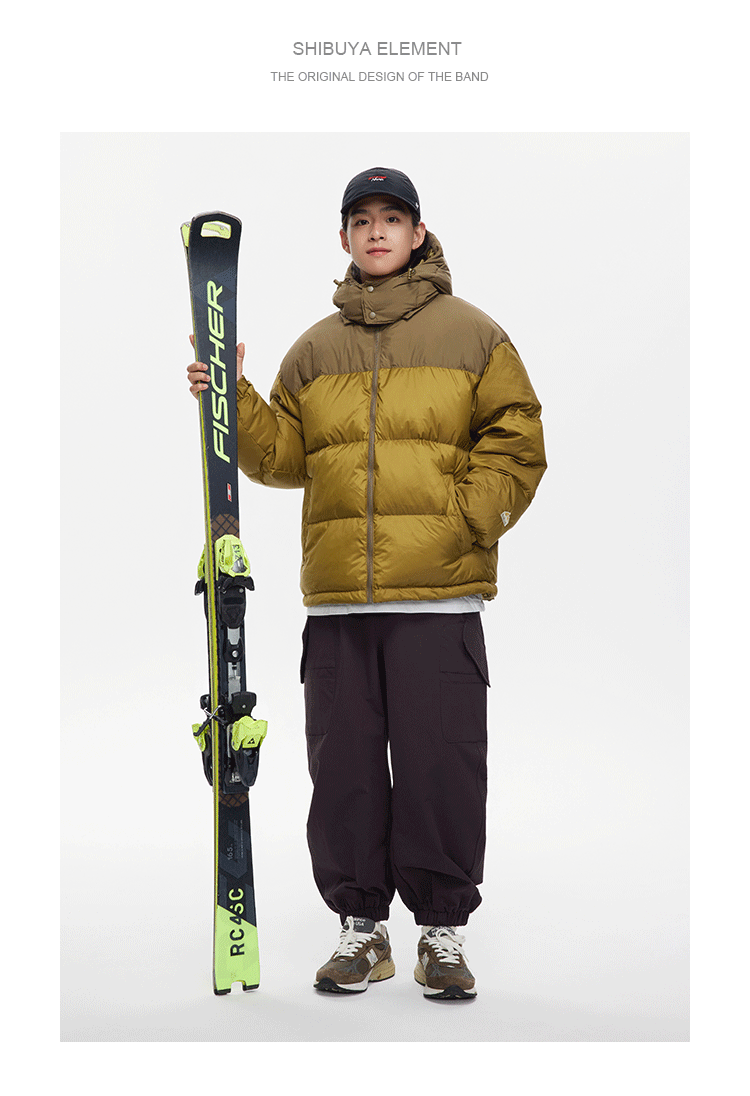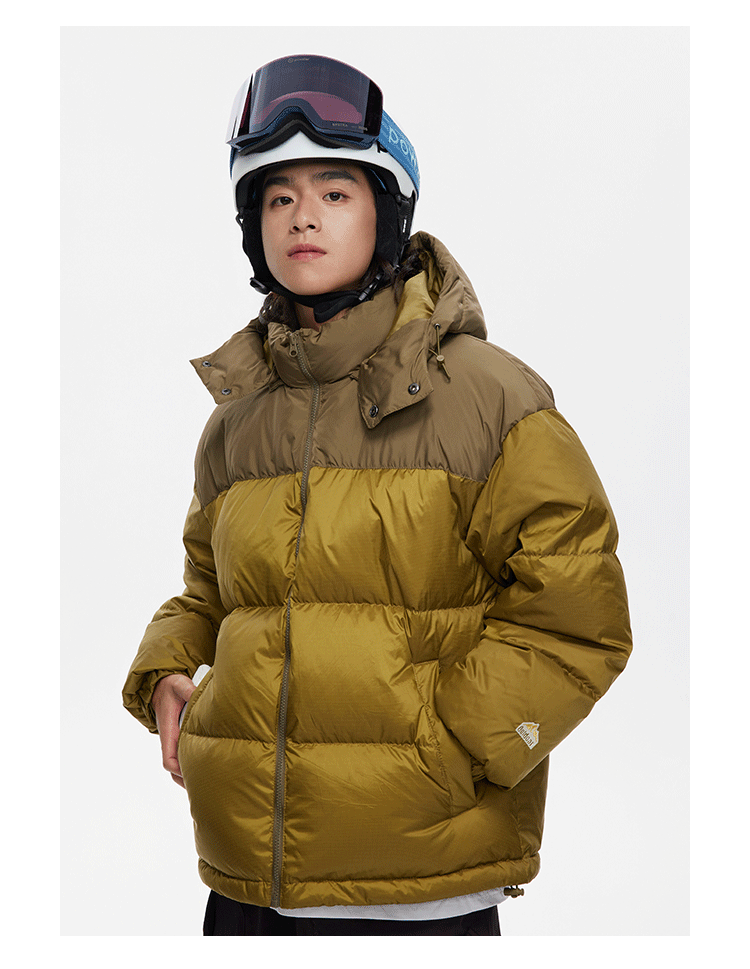 Ru Meng invierno nueva costura contraste color 90 terciopelo impermeable a prueba de viento abajo chaqueta desmontable sombrero engrosado pan esquí traje