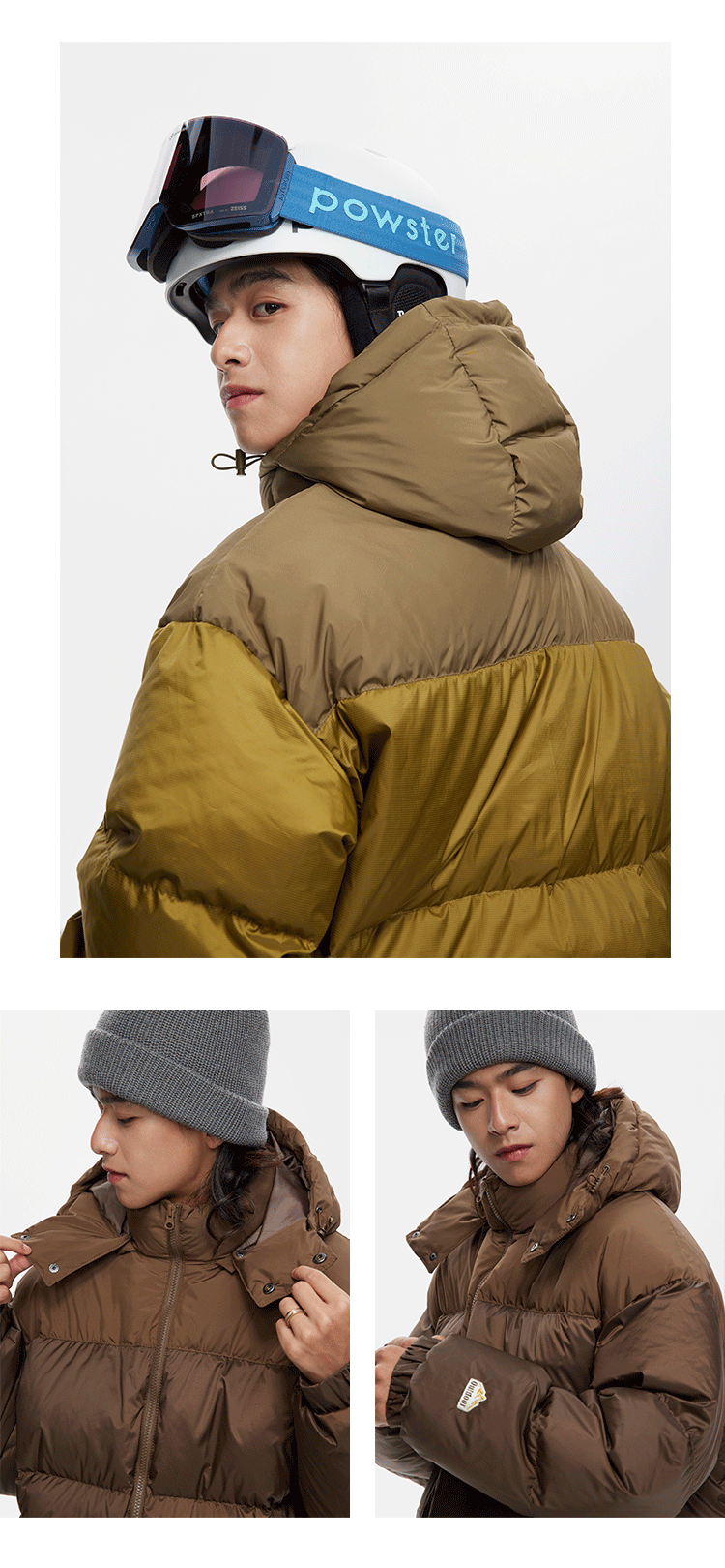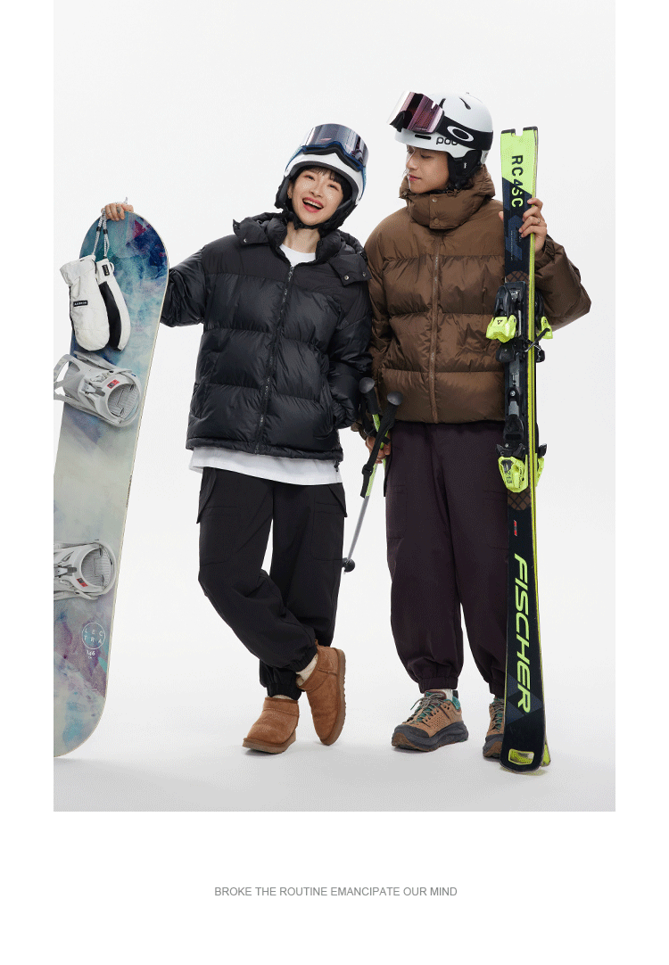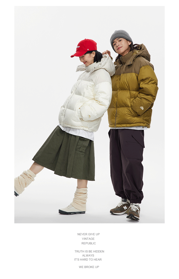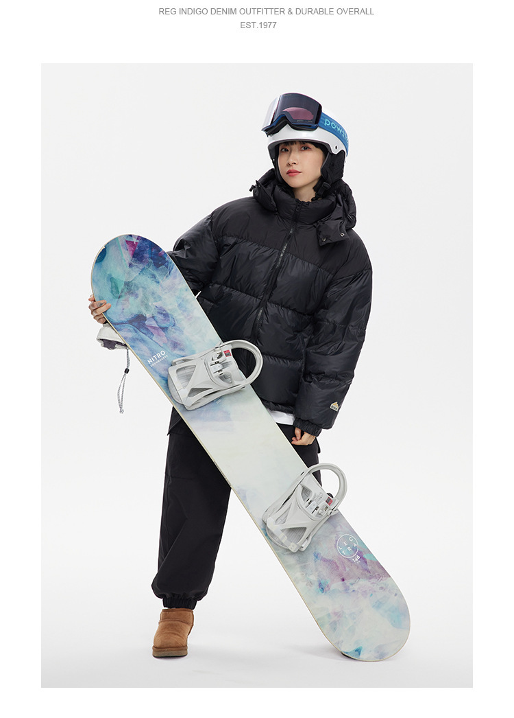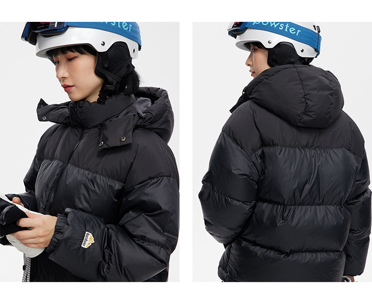 Ru Meng invierno nueva costura contraste color 90 terciopelo impermeable a prueba de viento abajo chaqueta desmontable sombrero engrosado pan esquí traje
