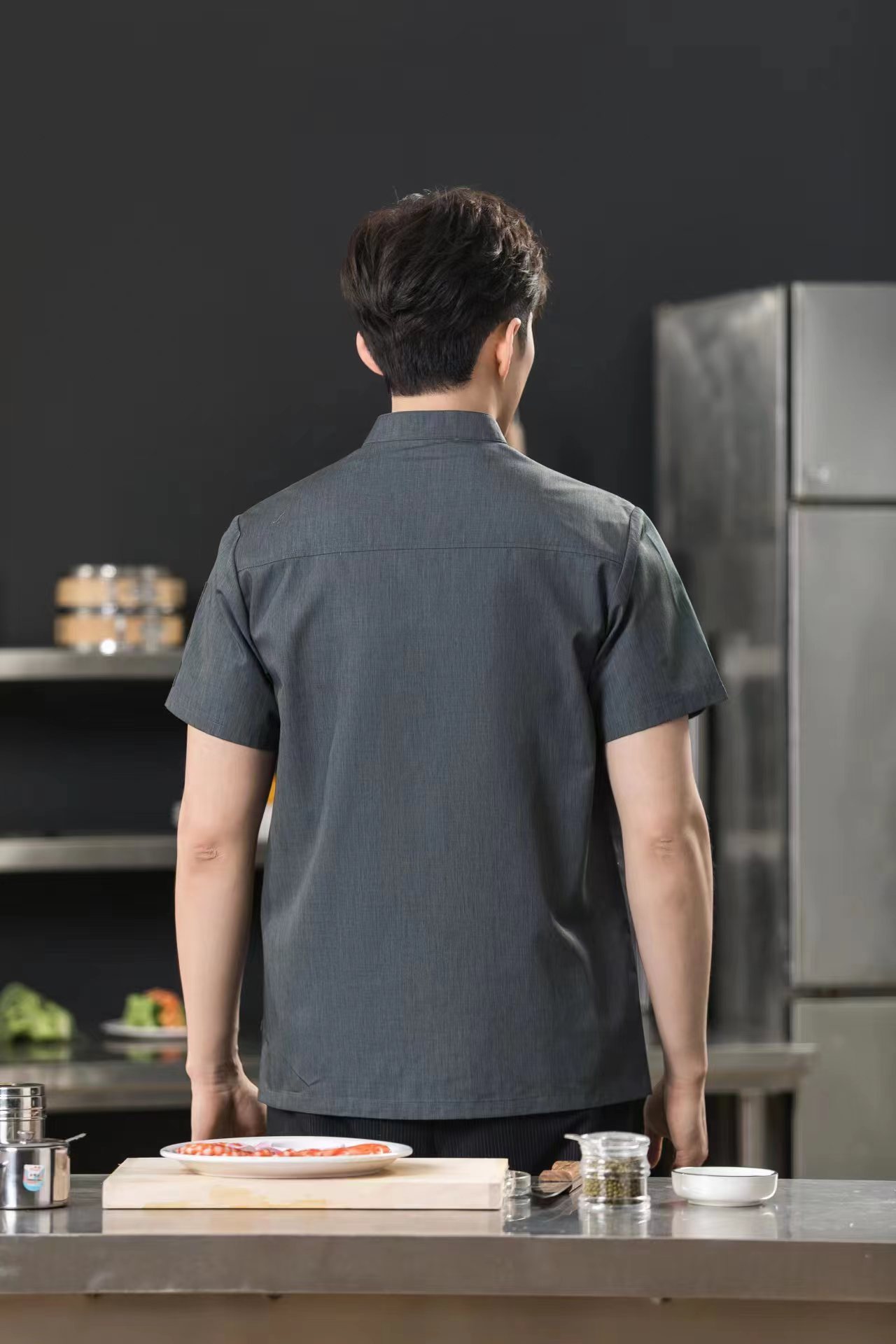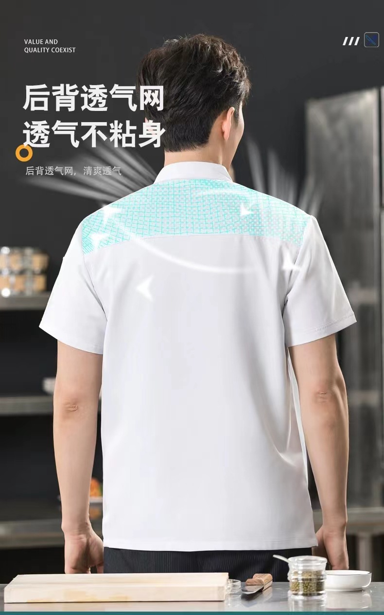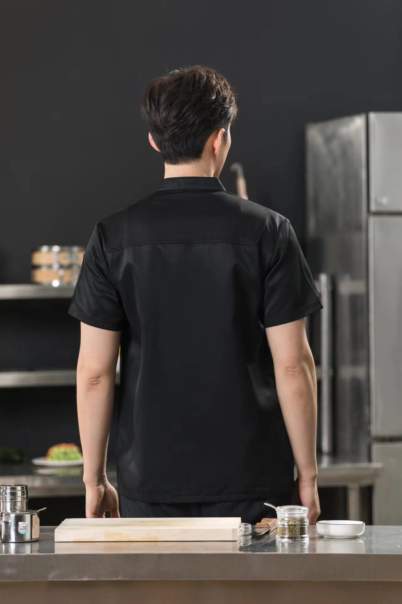 Uniforme de Chef de Manga Corta para Verano, Ropa de Trabajo para Catering, Hotel, Restaurante, Cocina, Cantina, Repostería, Transpirable, Personalizable con Impresión.