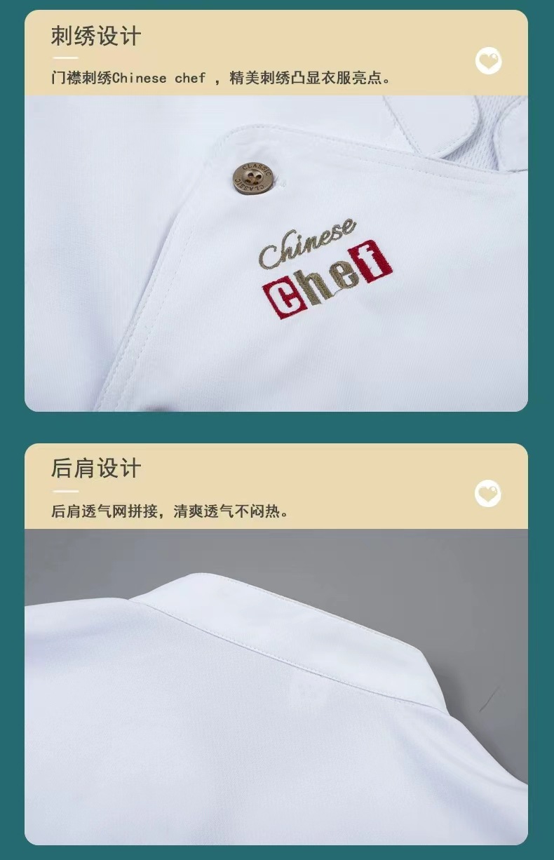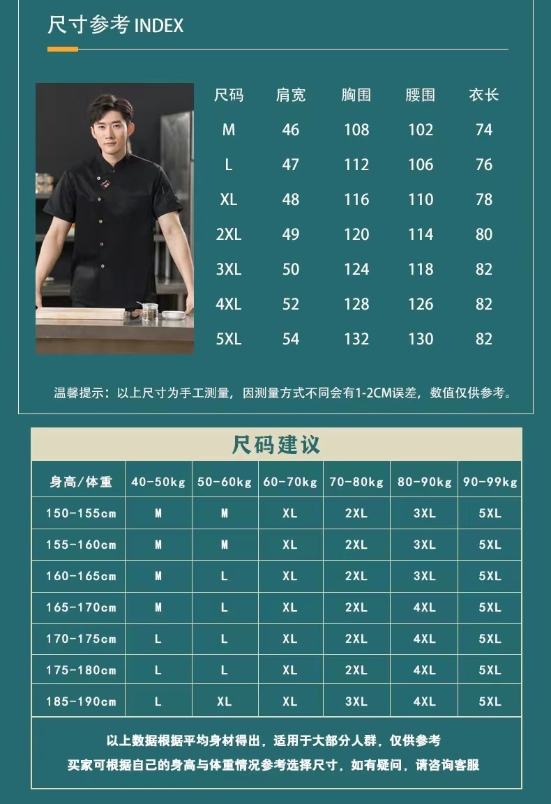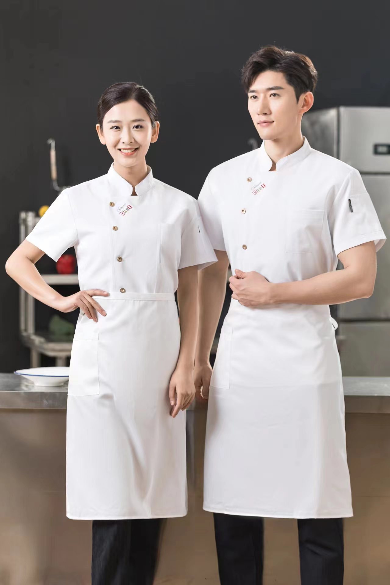 Uniforme de Chef de Manga Corta para Verano, Ropa de Trabajo para Catering, Hotel, Restaurante, Cocina, Cantina, Repostería, Transpirable, Personalizable con Impresión.