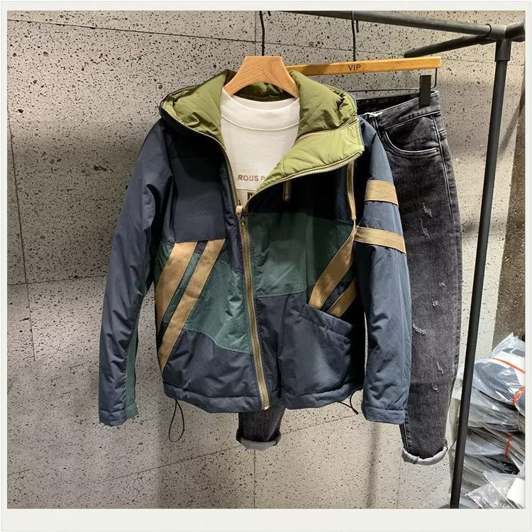 Abrigo de hombre Otoño e Invierno Nuevo estilo coreano diseño de costura cremallera oblicua Juventud con capucha chaqueta acolchada de algodón acolchado cálido