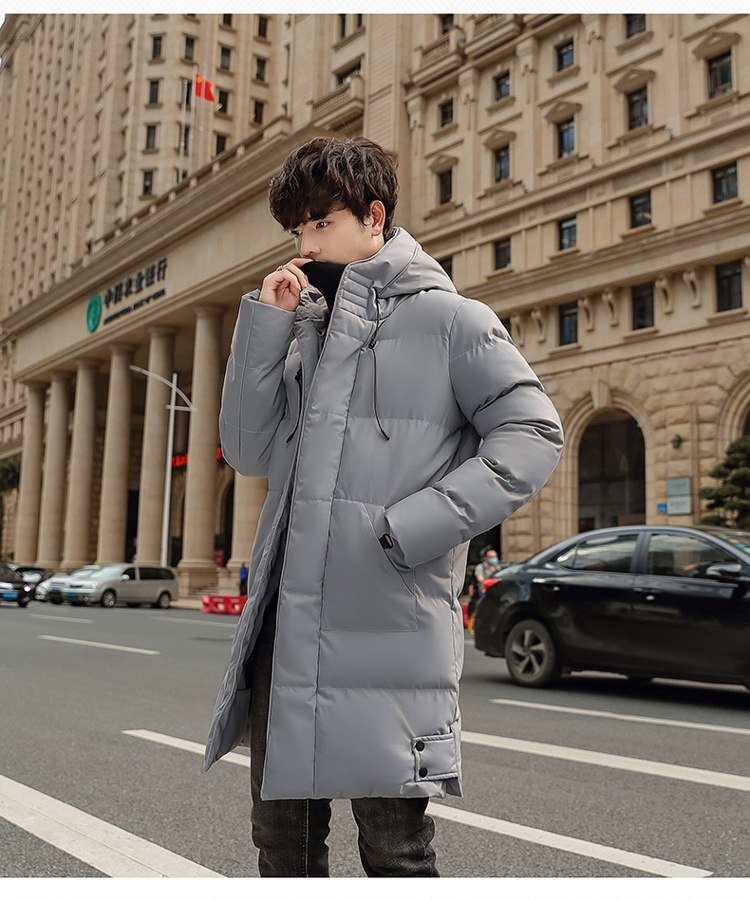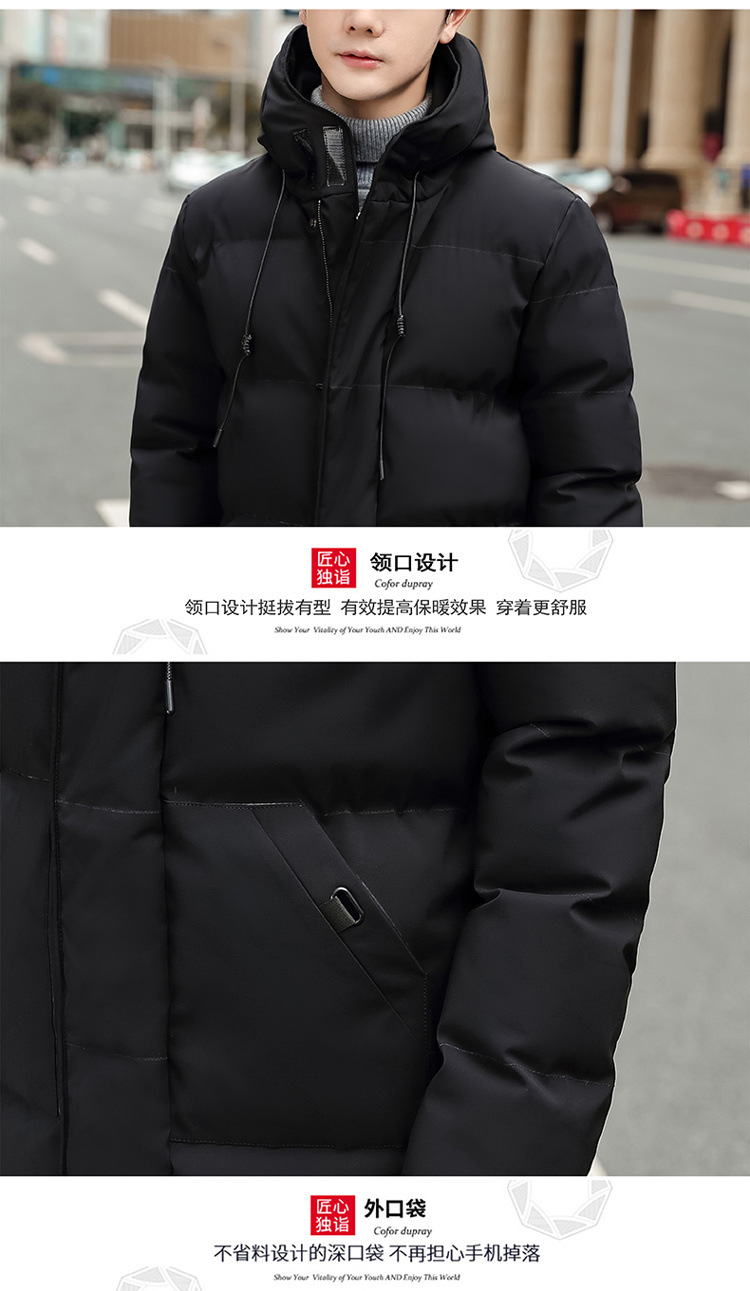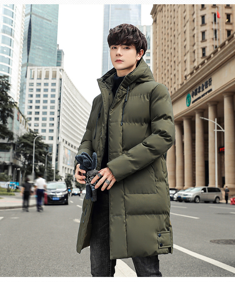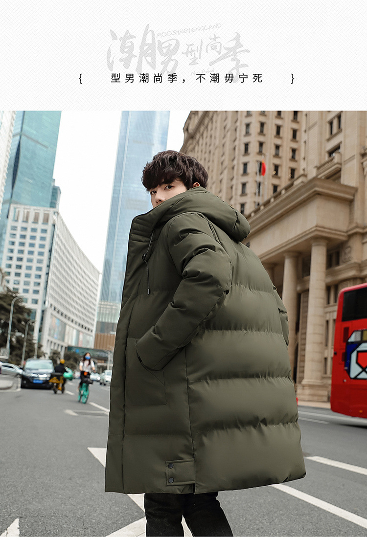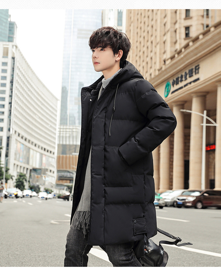 Abrigo acolchado de algodón con capucha de invierno más el tamaño estilo coreano de moda de media longitud engrosada abrigo cálido casual de los hombres de color sólido a juego