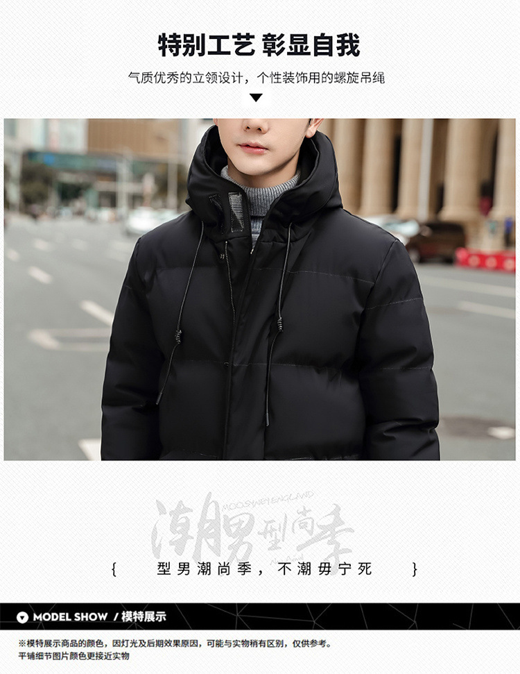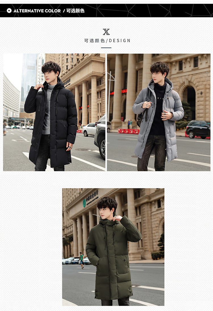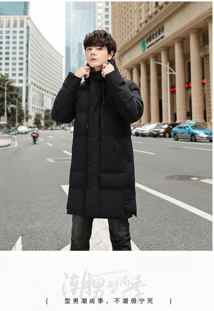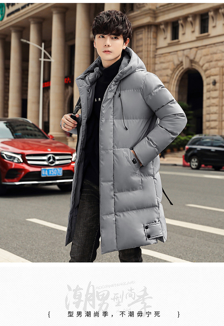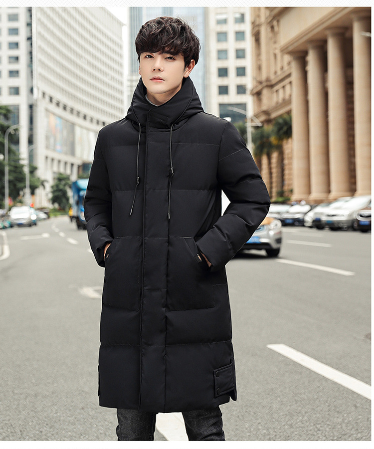Abrigo acolchado de algodón con capucha de invierno más el tamaño estilo coreano de moda de media longitud engrosada abrigo cálido casual de los hombres de color sólido a juego
