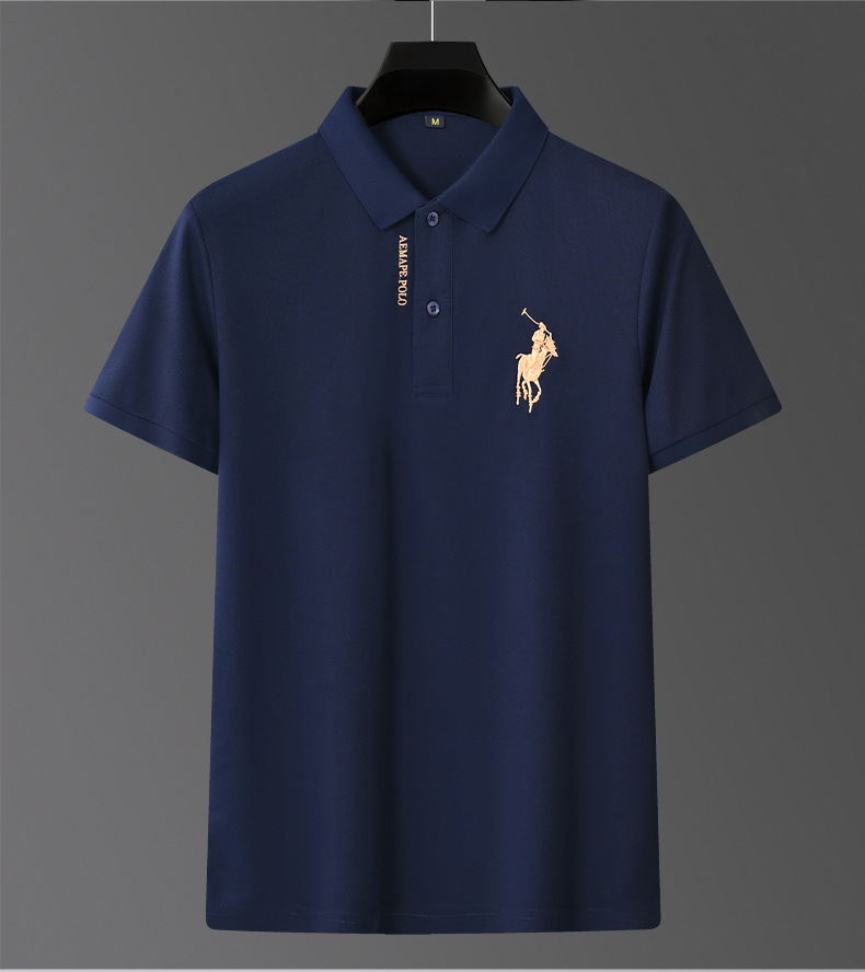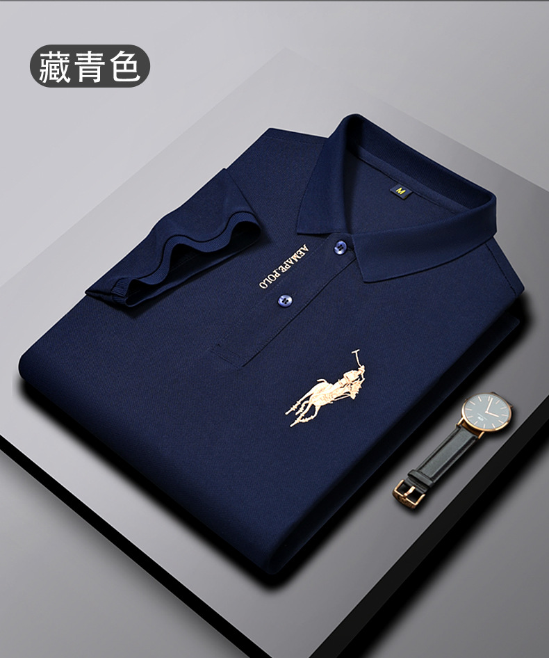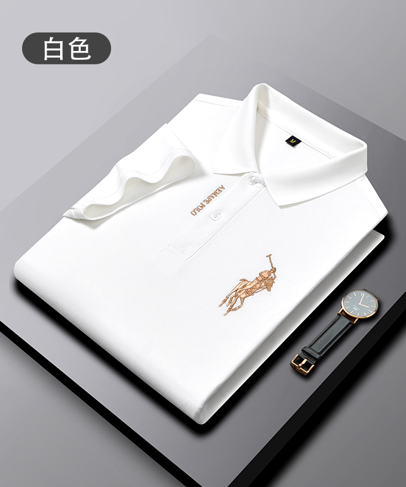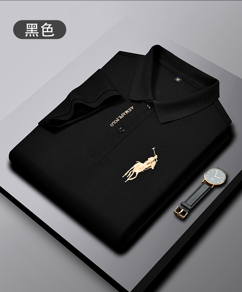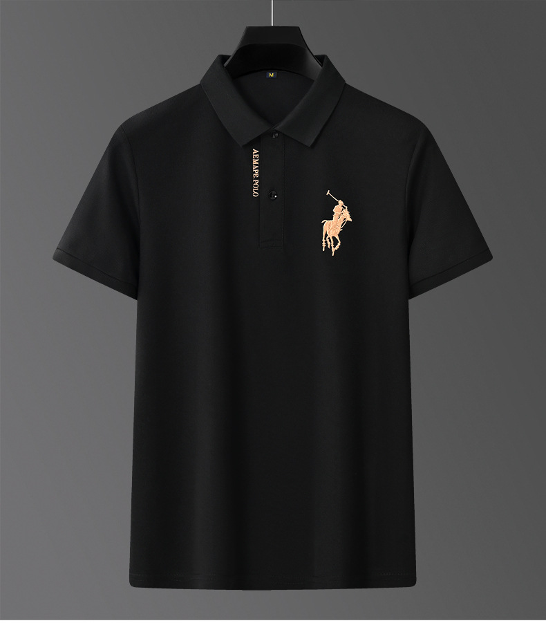 Polo bordado de negocios de alta gama Camiseta suelta de manga corta con solapa de seda de hielo para hombre