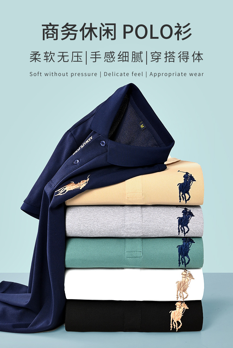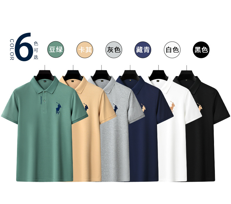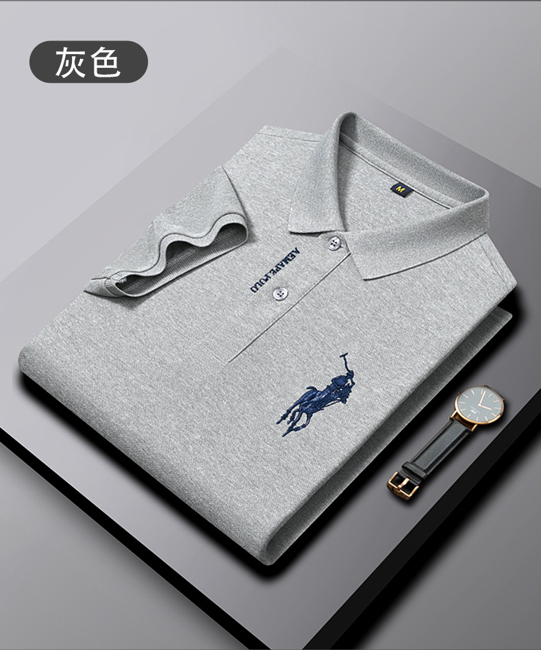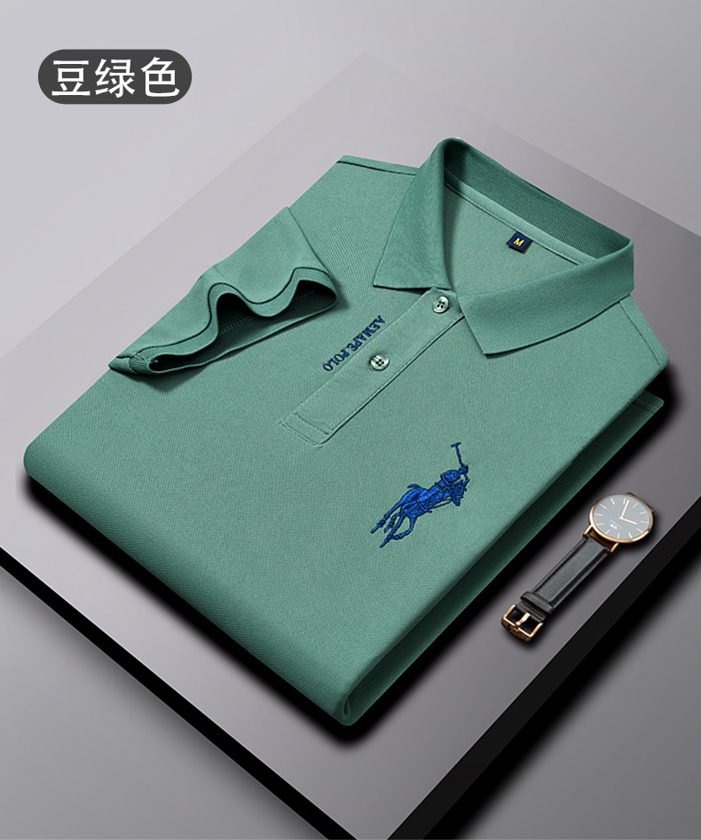 Polo bordado de negocios de alta gama Camiseta suelta de manga corta con solapa de seda de hielo para hombre