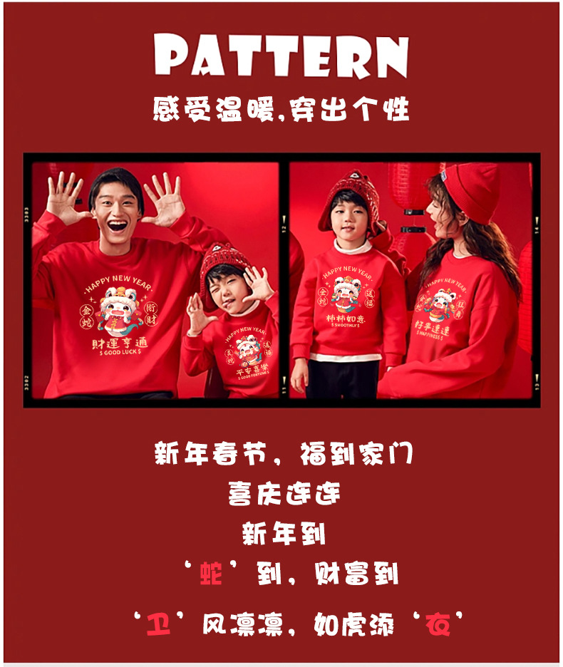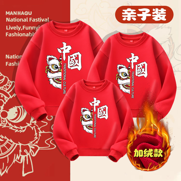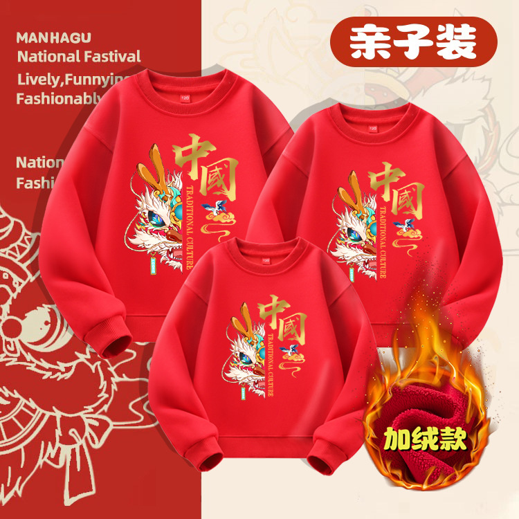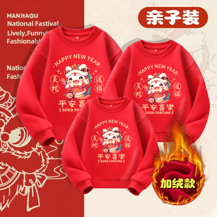 Evento del día de Año Nuevo chino Suéter rojo más terciopelo engrosamiento Año del nacimiento Celebre 2025 Año de la serpiente Año Nuevo Traje para padres e hijos Top