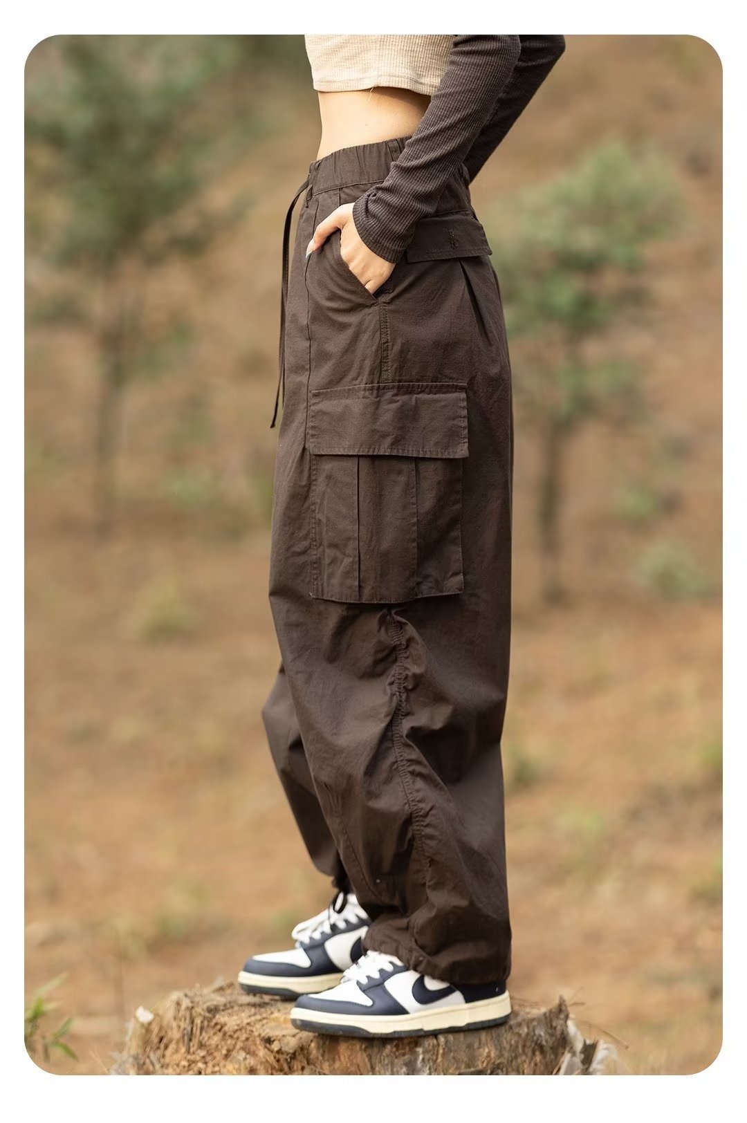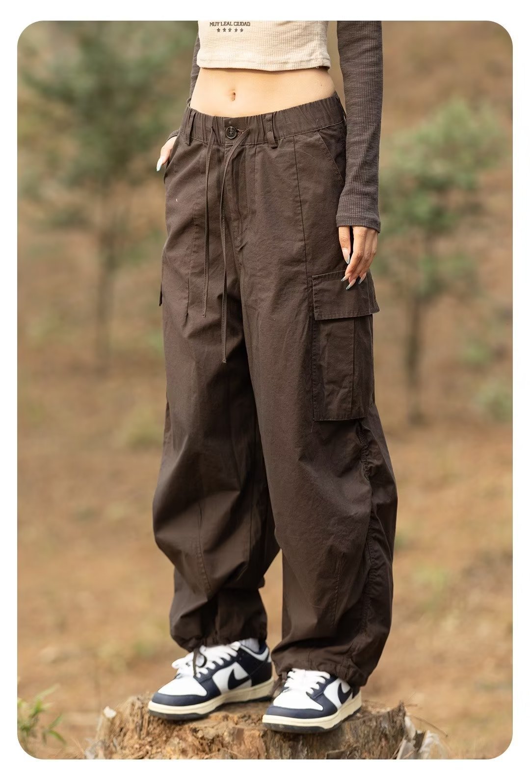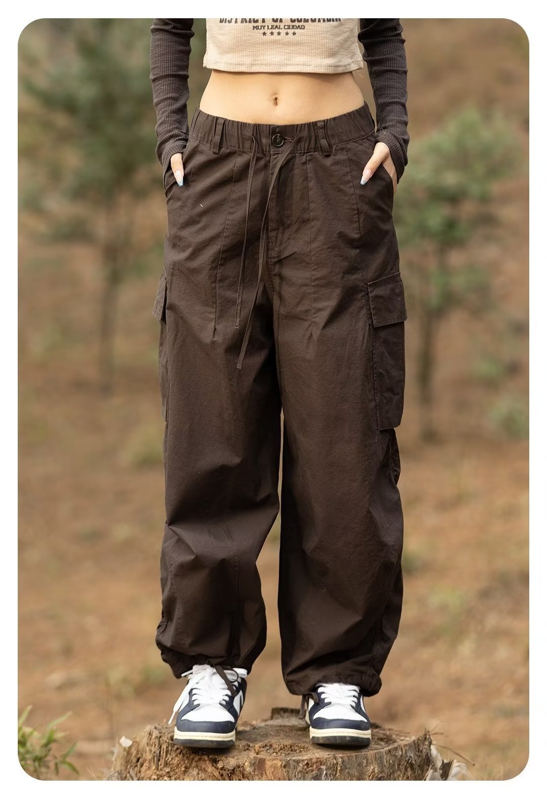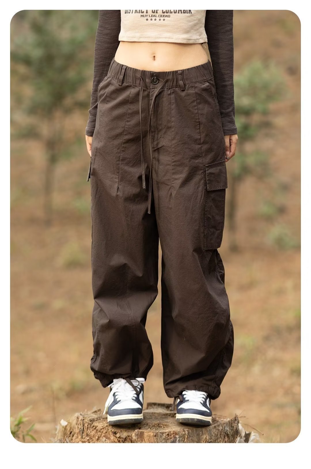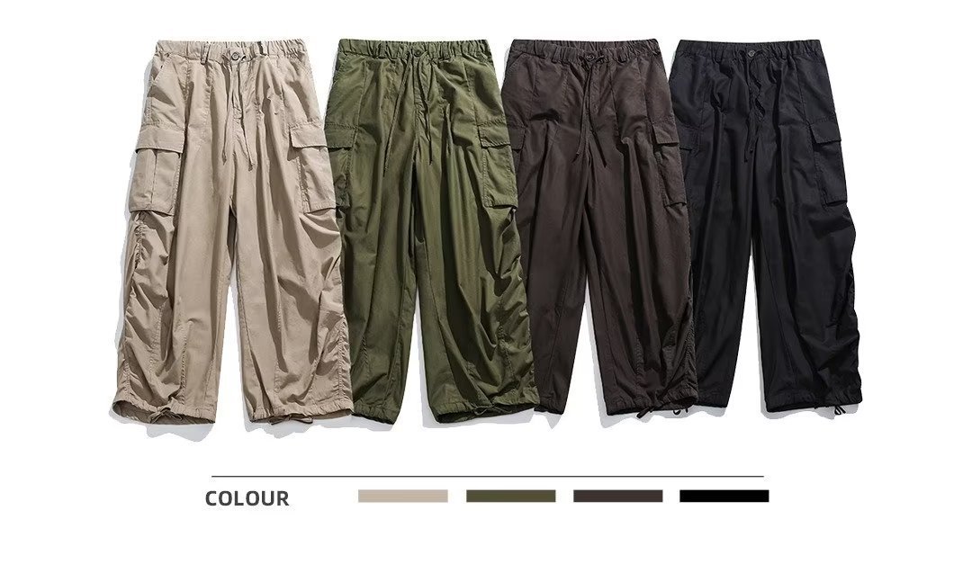 Estilo japonés americano al aire libre deportes delgados monopatín de pierna ancha los hombres y las mujeres con cordón ajustable suelta pantalones fregona