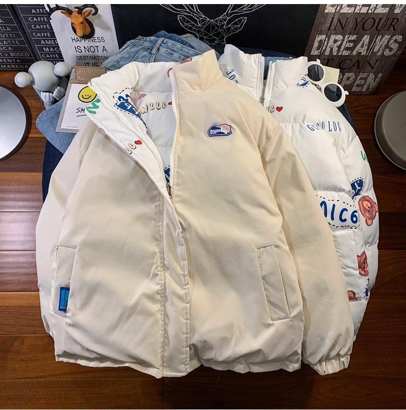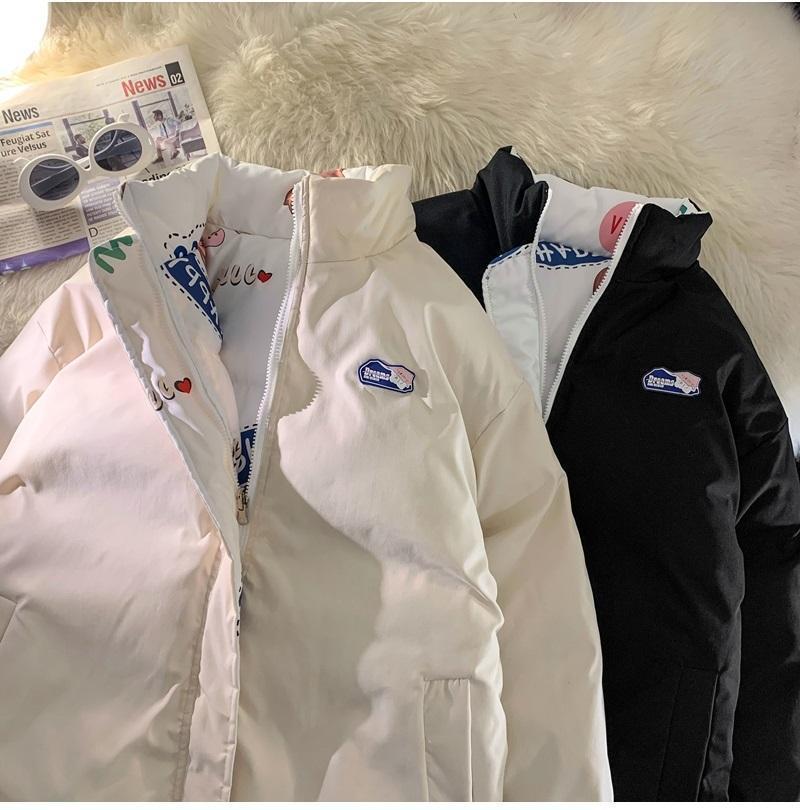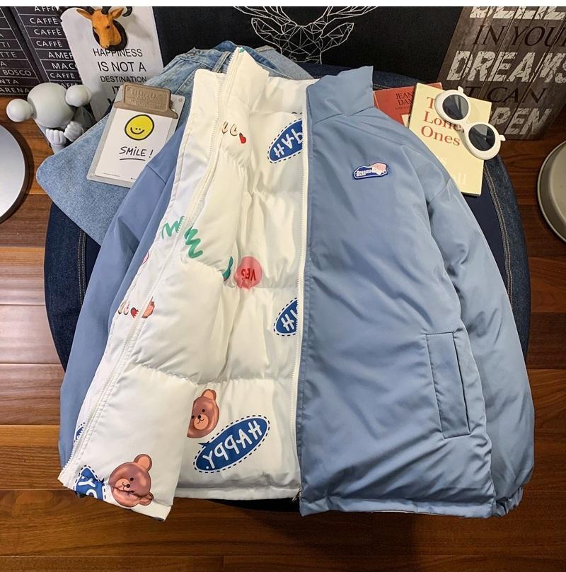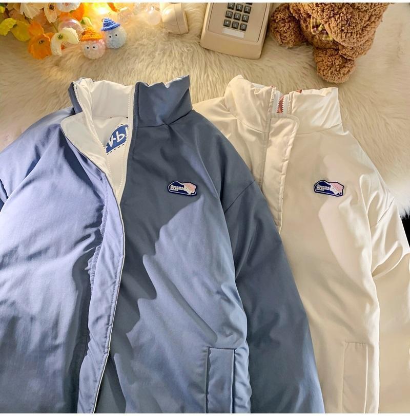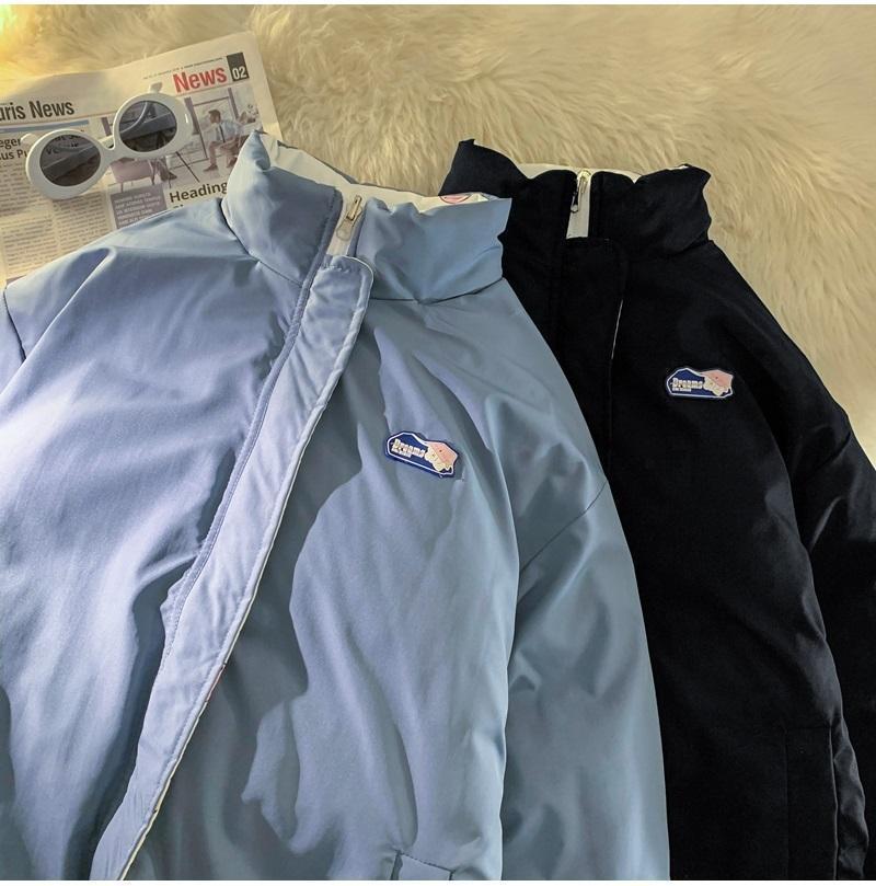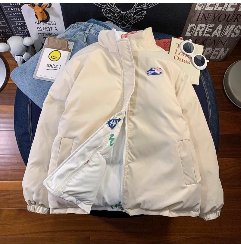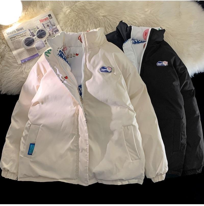 Abrigo de doble cara de invierno de los hombres de Hong Kong estilo de moda de la marca de gran tamaño de la capa de algodón-acolchado abrigo cálido engrosada pareja collar de pie abrigo de algodón acolchado