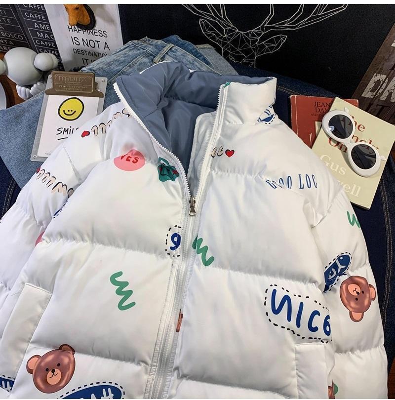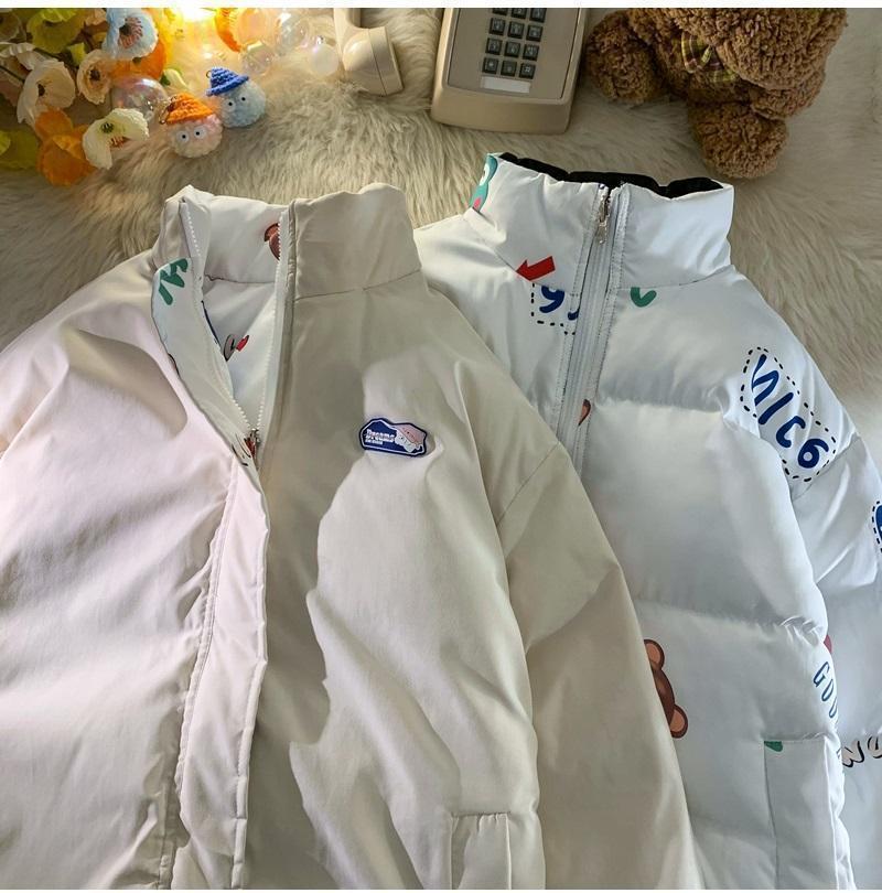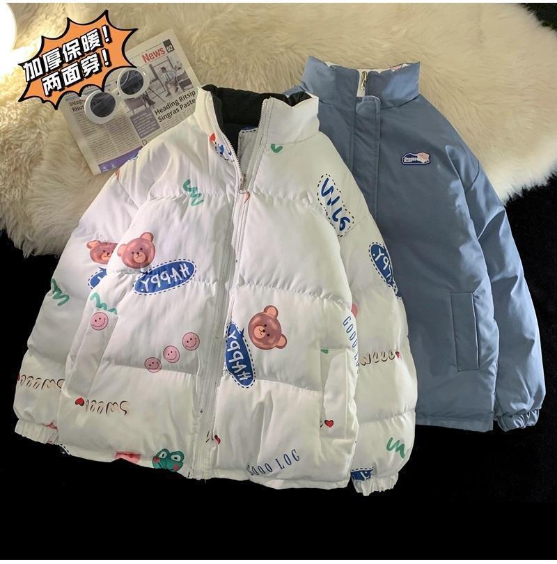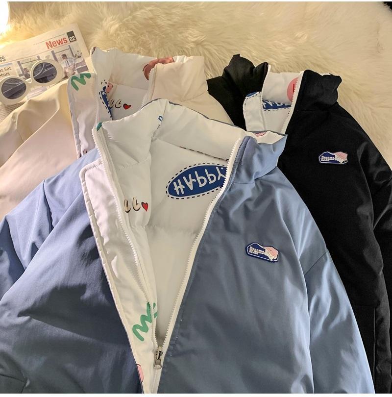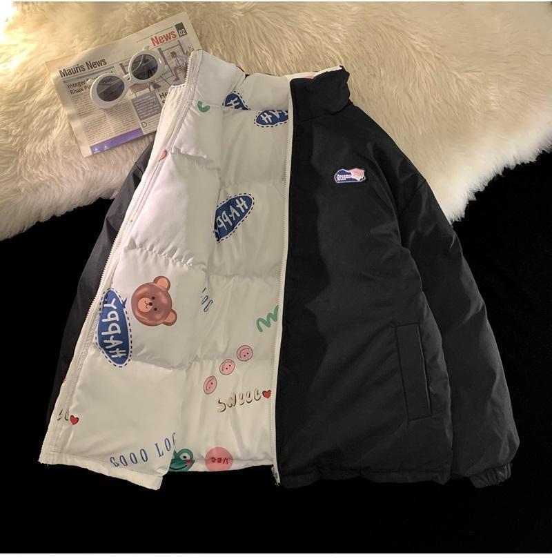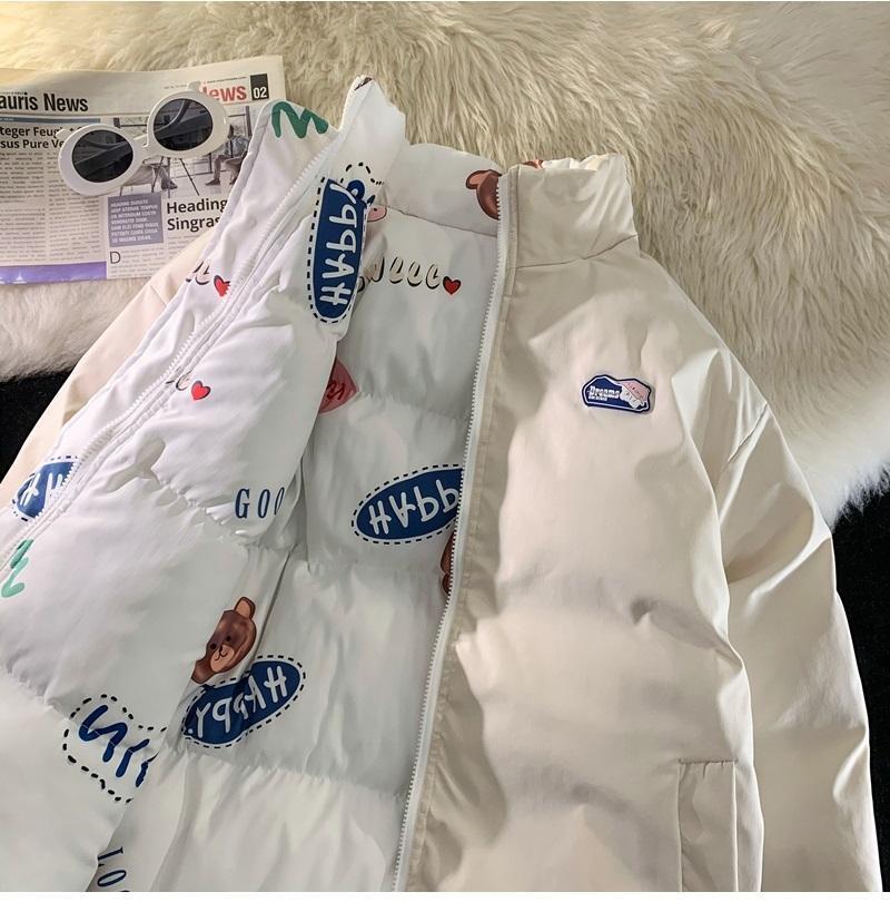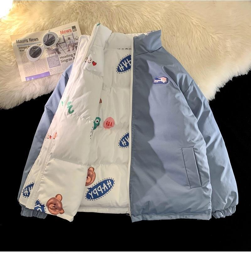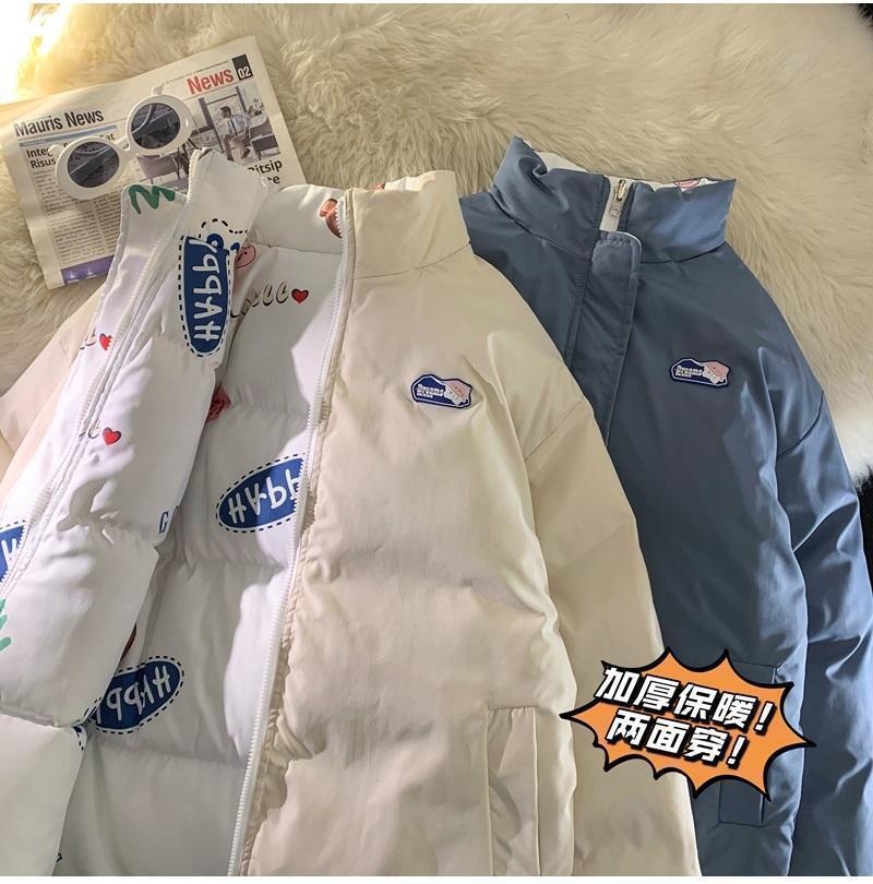 Abrigo de doble cara de invierno de los hombres de Hong Kong estilo de moda de la marca de gran tamaño de la capa de algodón-acolchado abrigo cálido engrosada pareja collar de pie abrigo de algodón acolchado