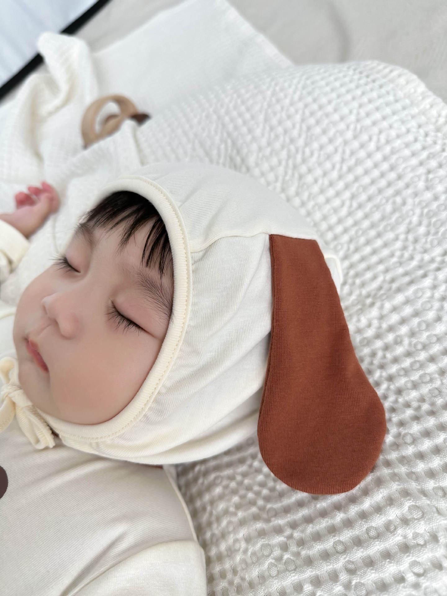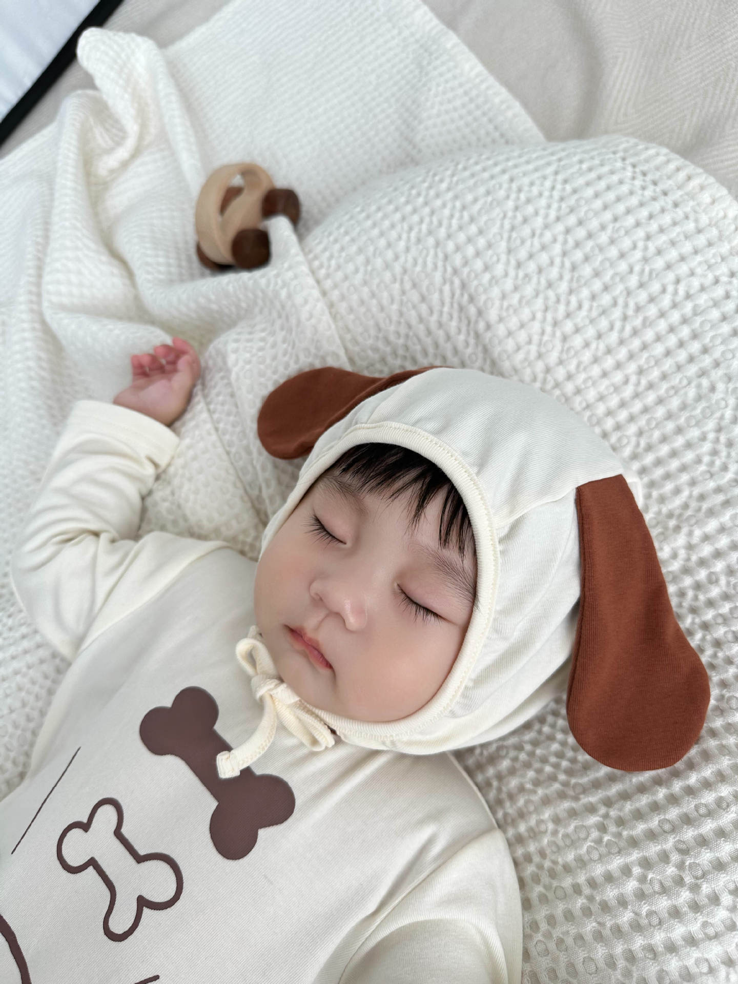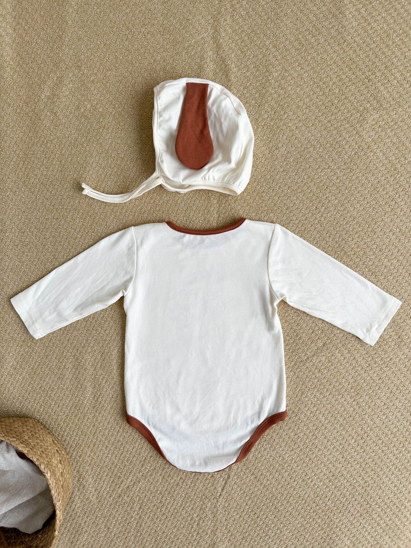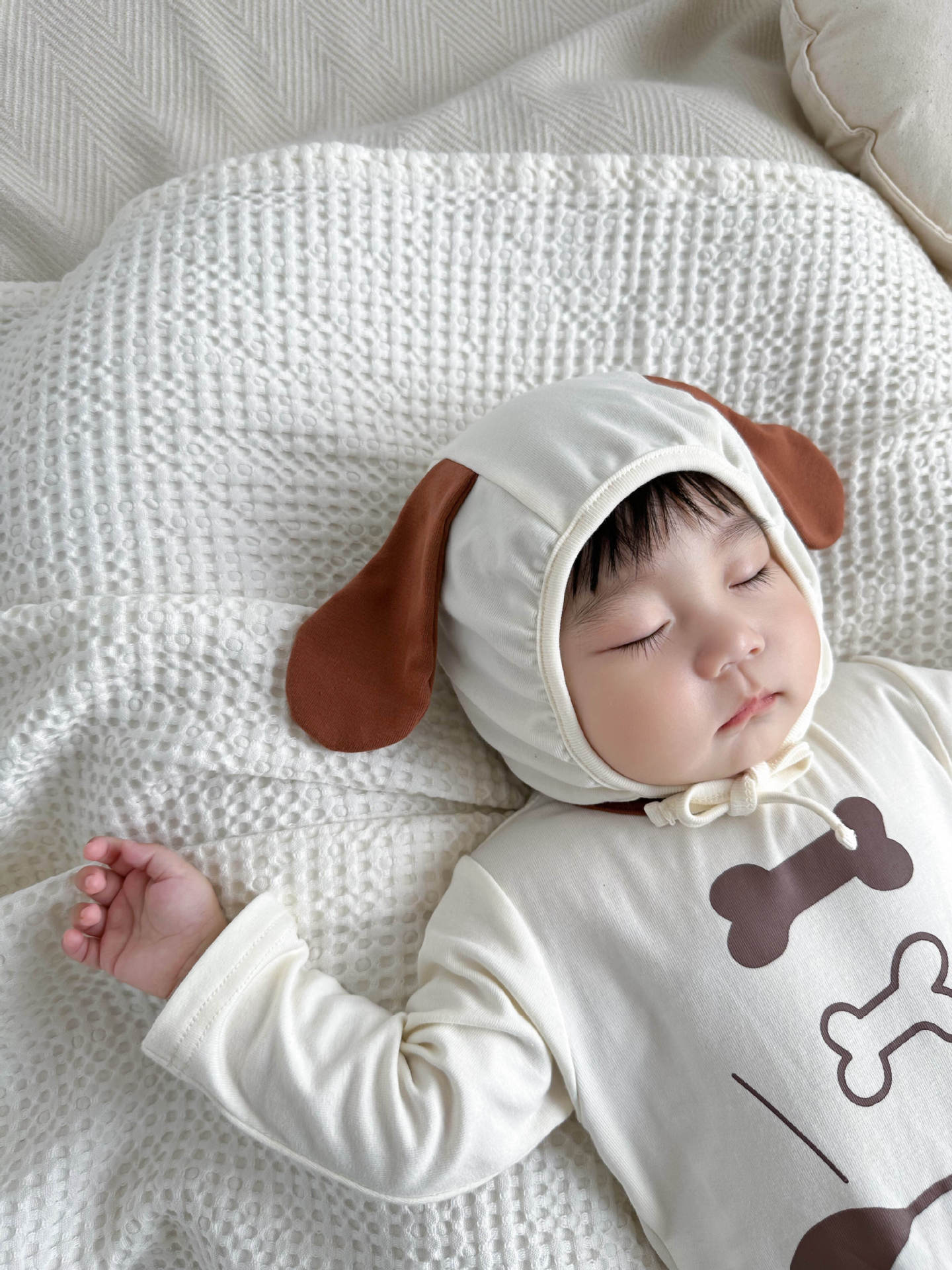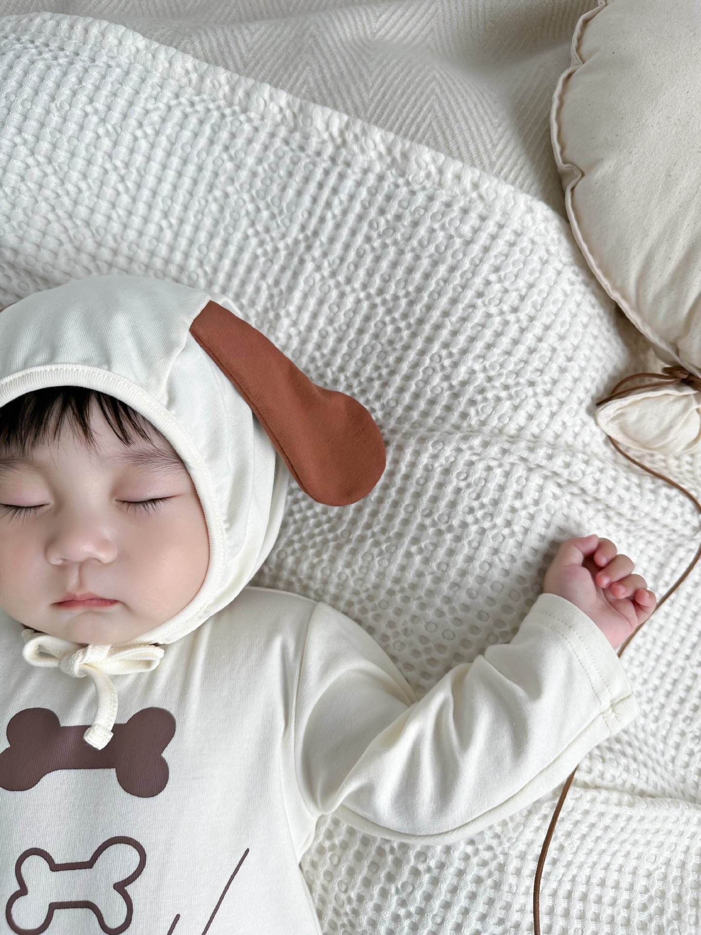 24 primavera estilo coreano bebé mono traje ins estilo cachorro impresión modelado mameluco bebé vaina con sombrero