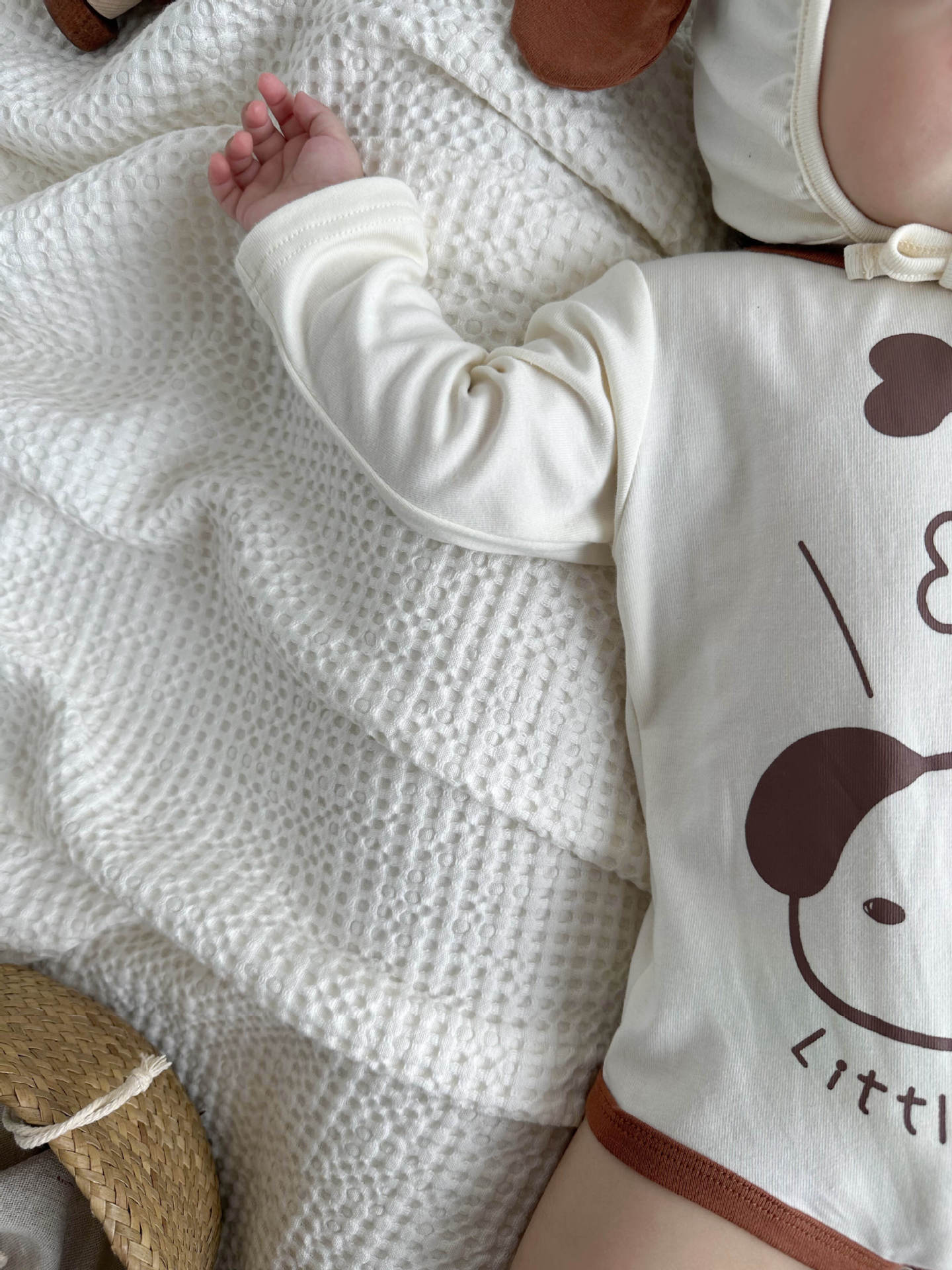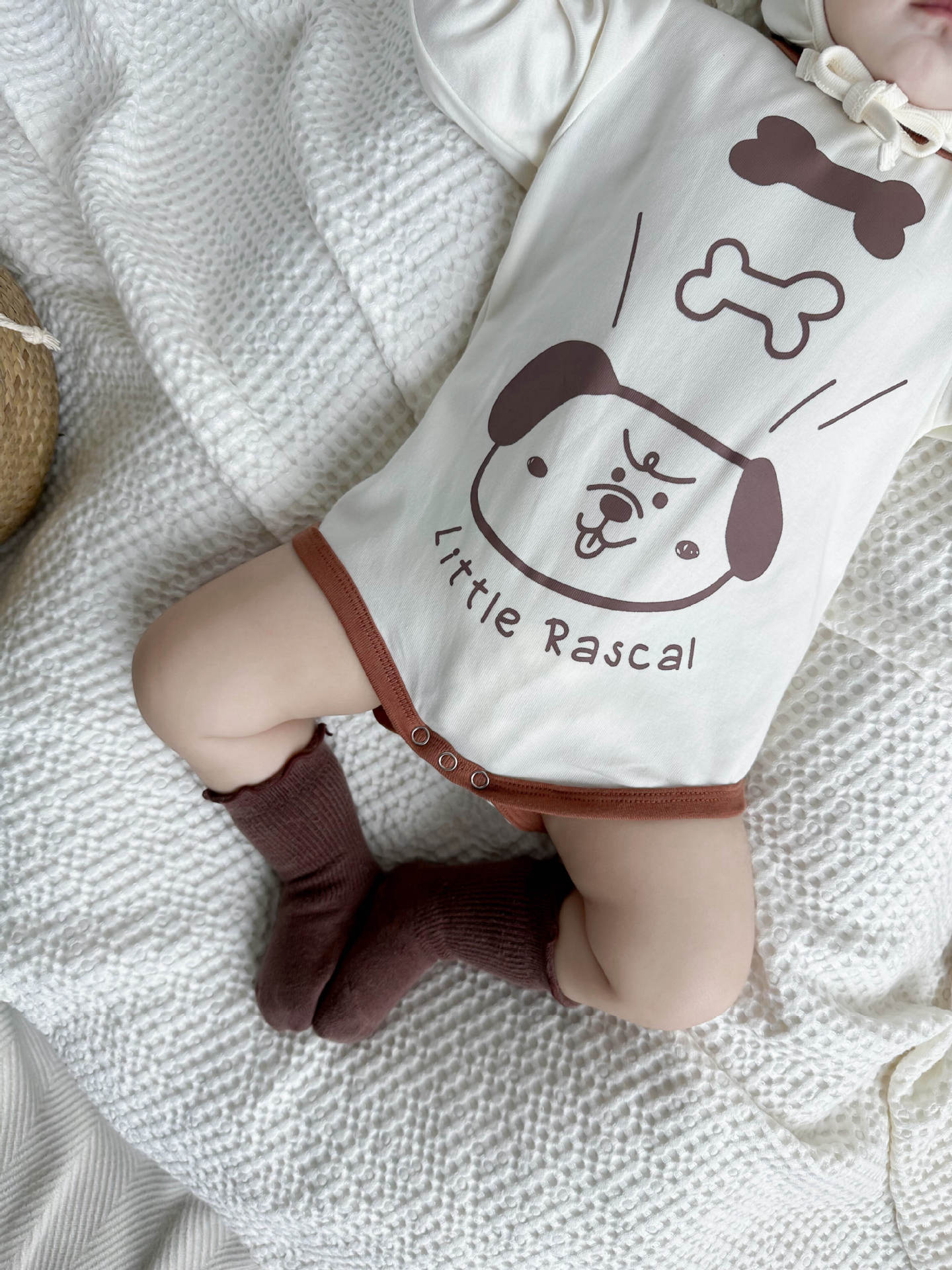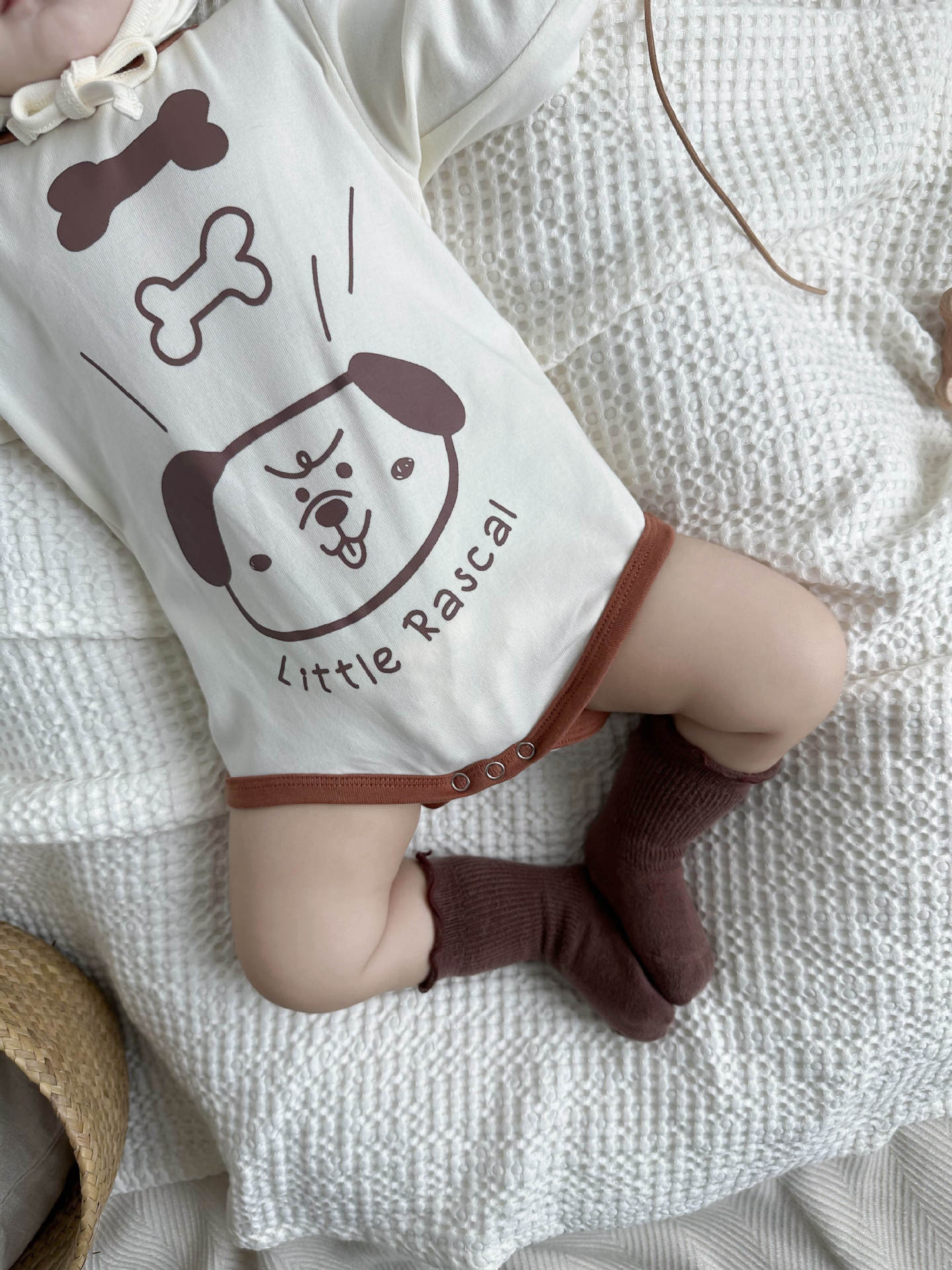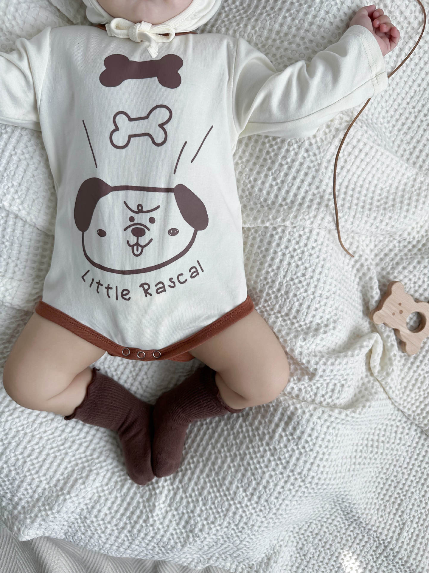 24 primavera estilo coreano bebé mono traje ins estilo cachorro impresión modelado mameluco bebé vaina con sombrero