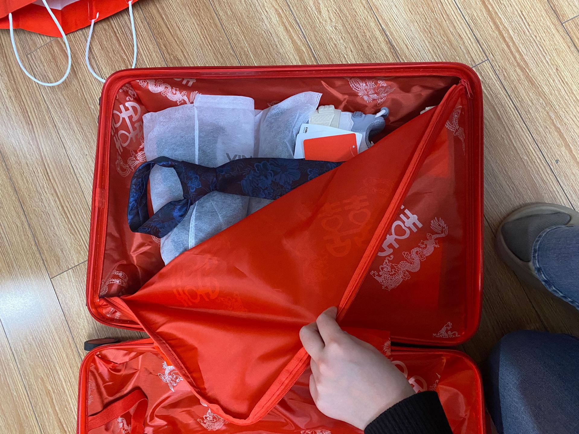 Boda rojo equipaje rojo boda dote equipaje caja de la carretilla mujer cuero caso novia dote boda maleta