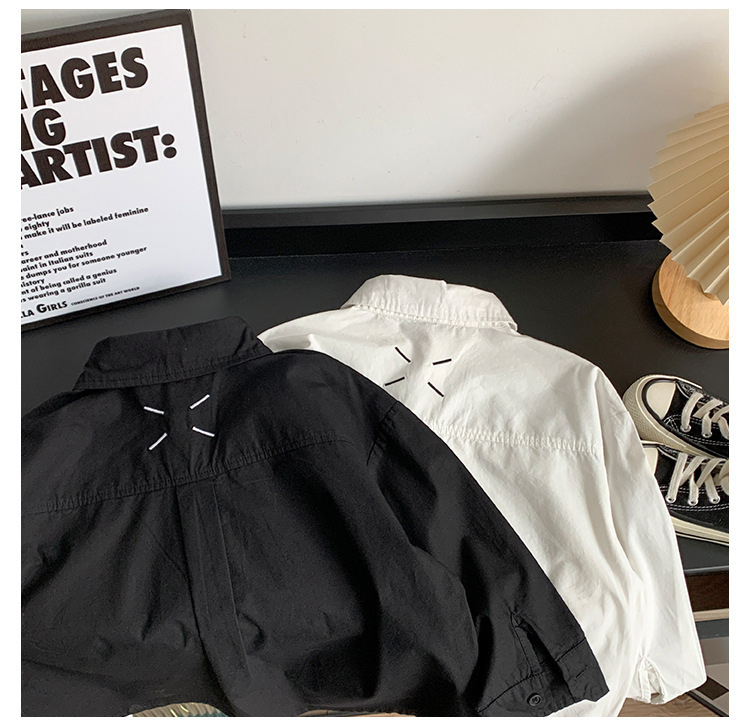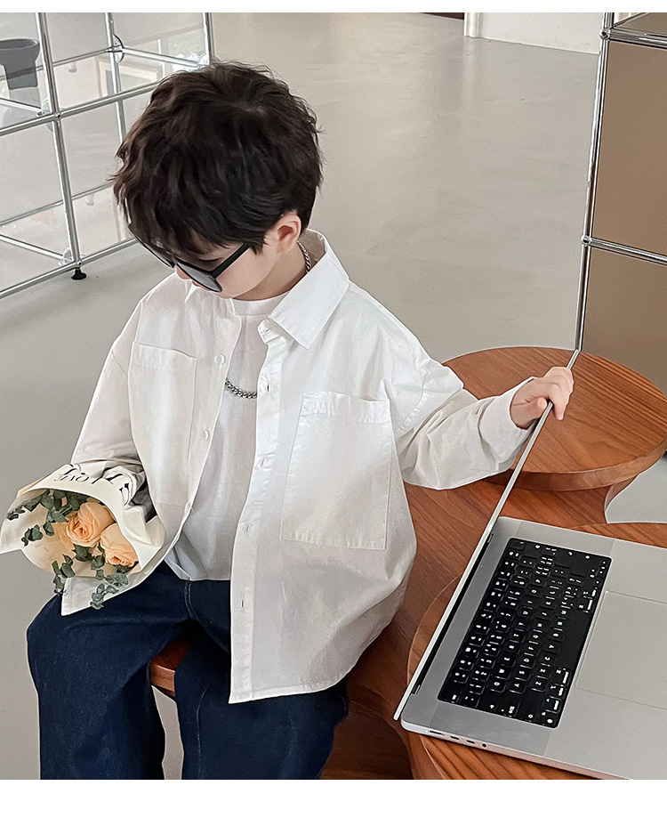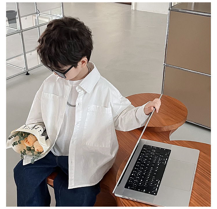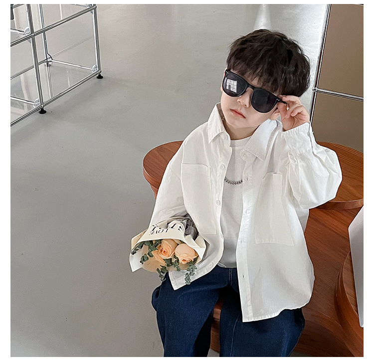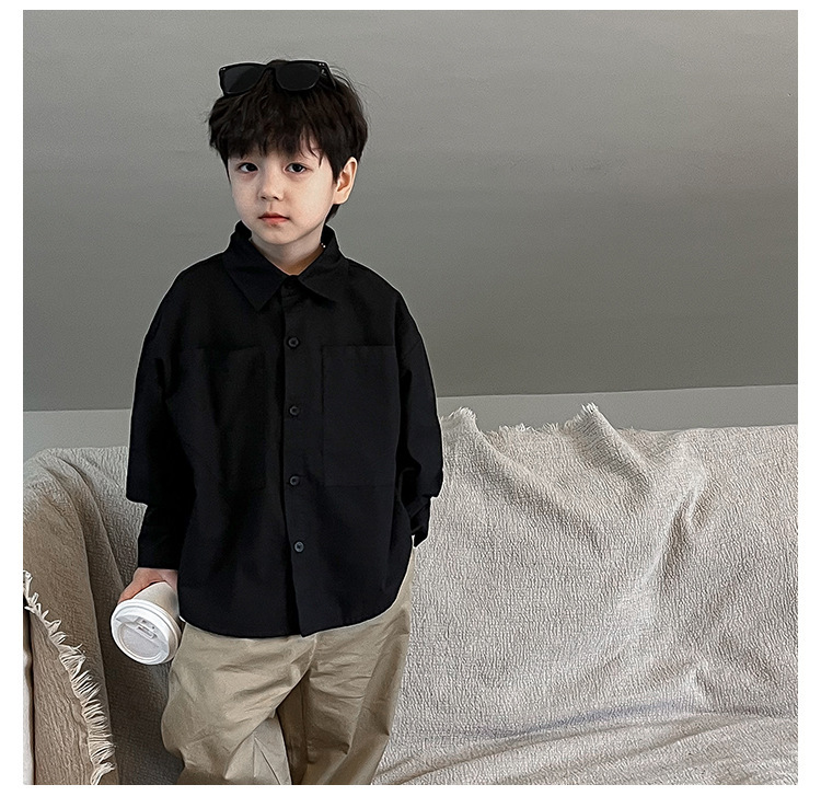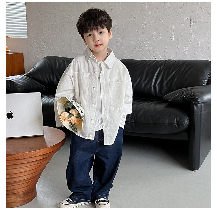 Camisa para niños 2023 niños otoño fresco nuevo estilo coreano color sólido bebé abrigo estilo occidental bordado camisa de solapa para niños