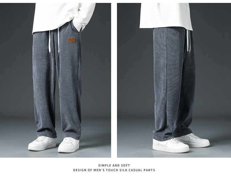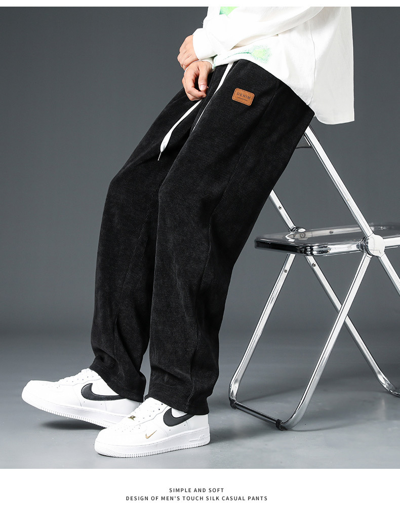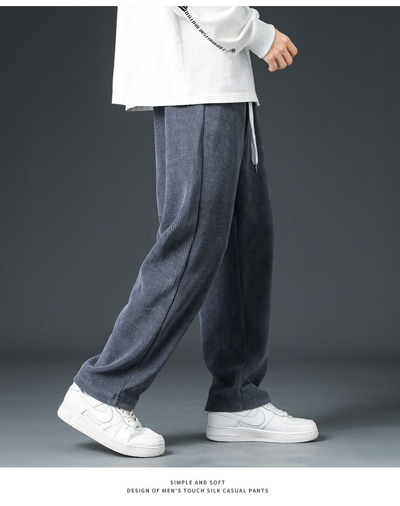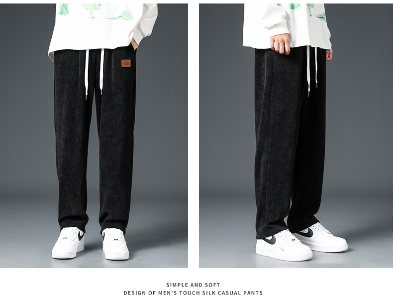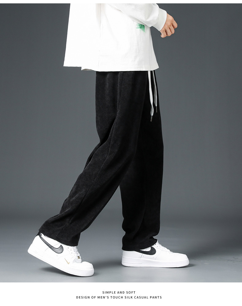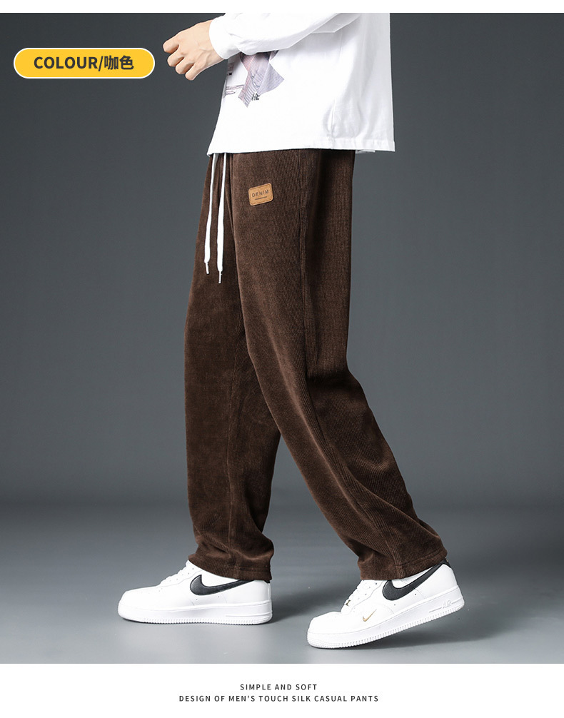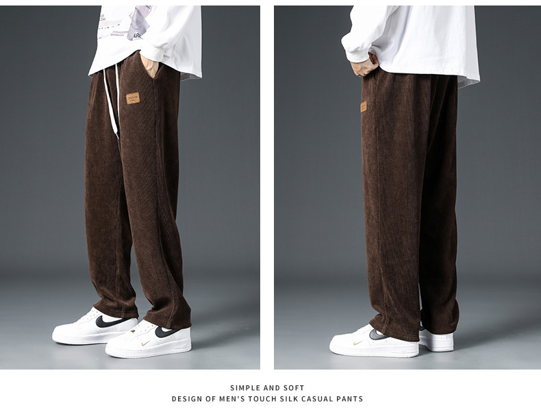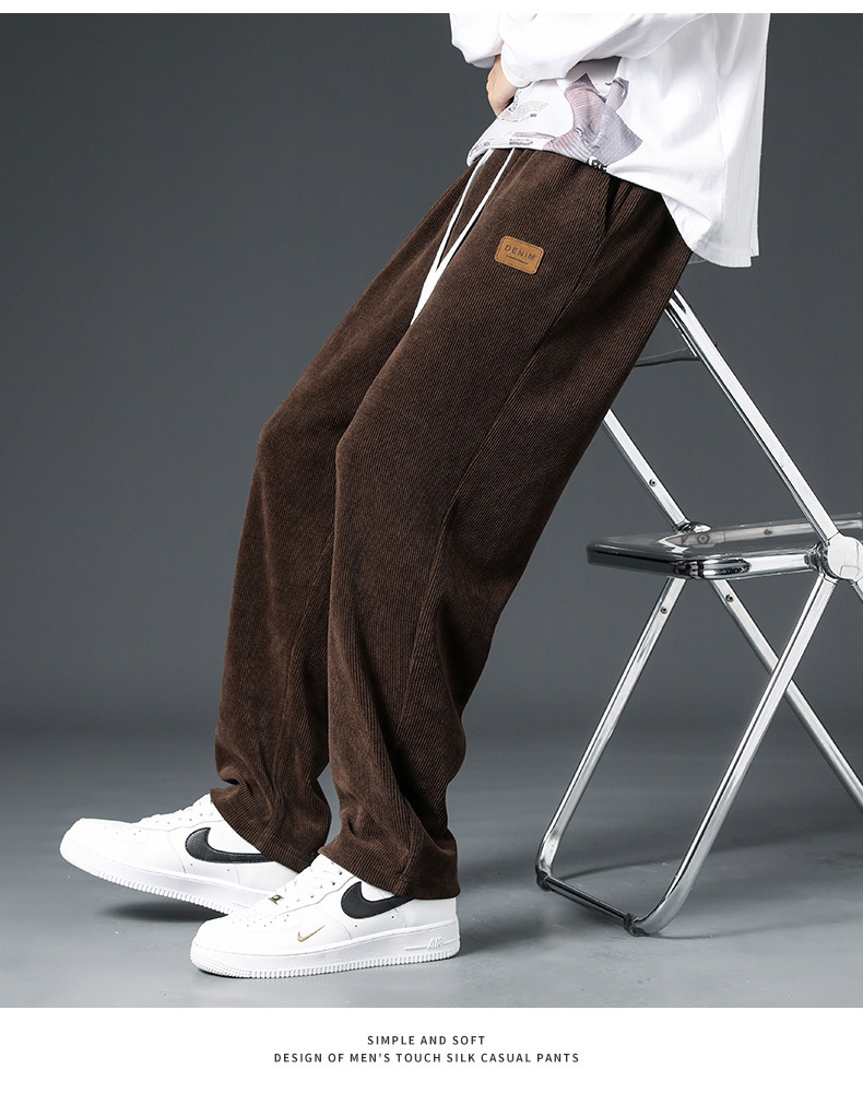 Pana engrosada pantalones forrados de lana de otoño e invierno marca de moda de los hombres sueltos rectos de pierna ancha pantalones casuales de los hombres de invierno