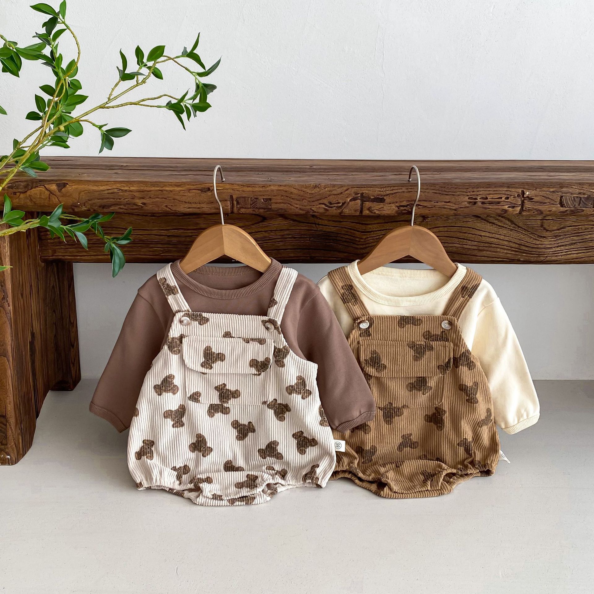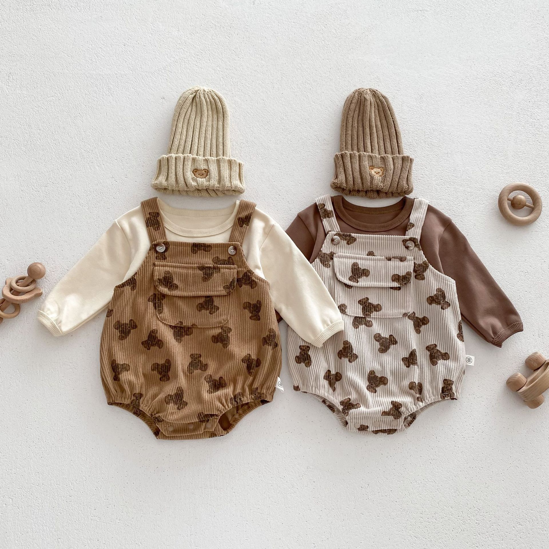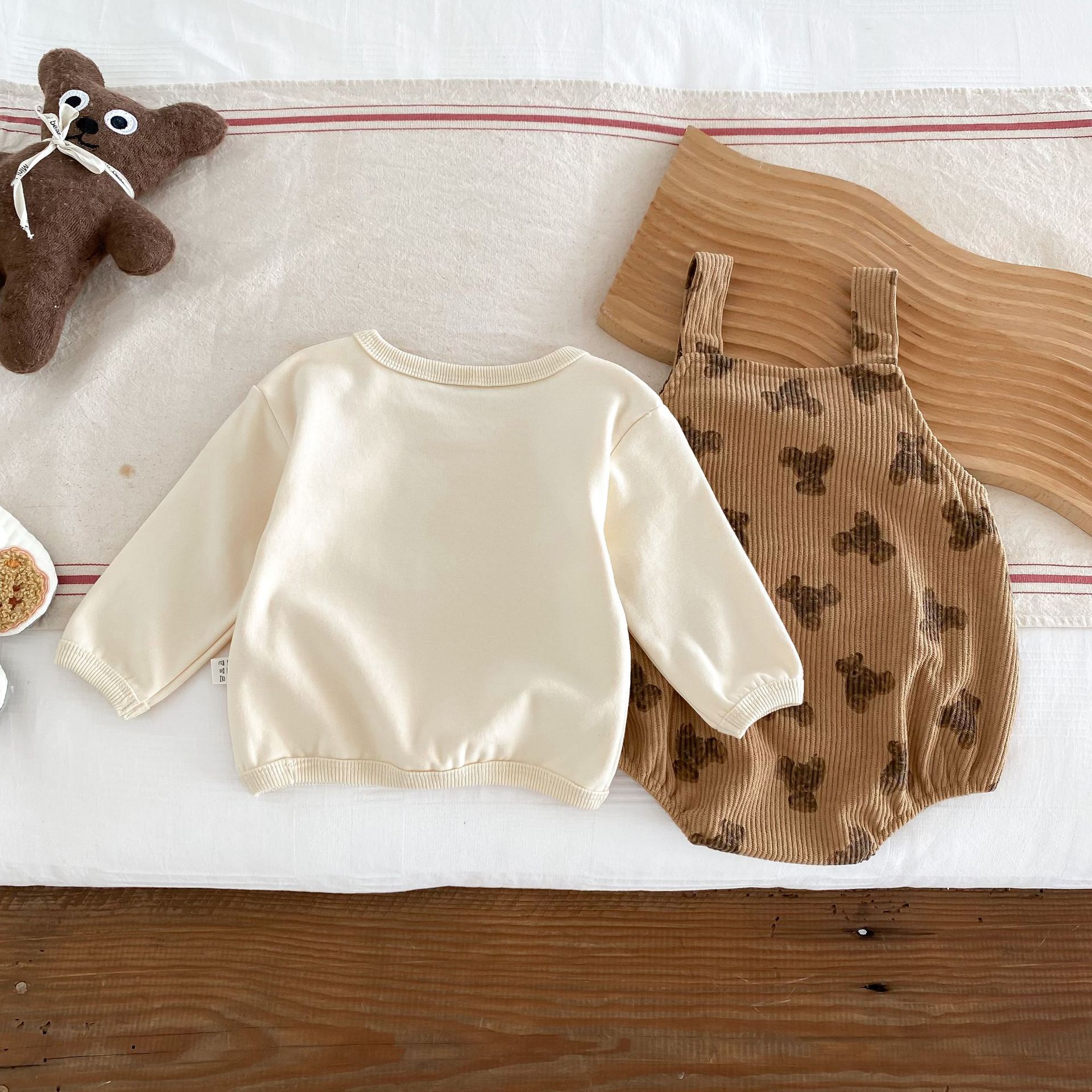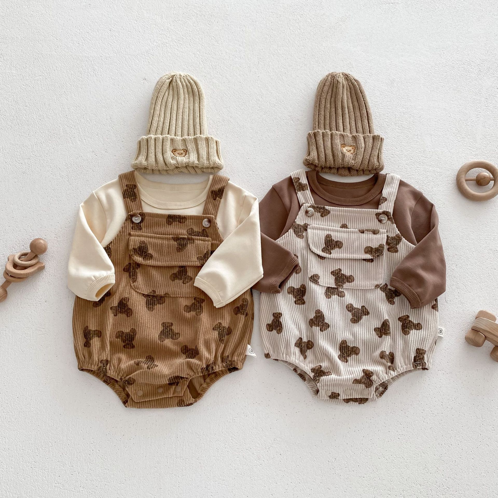 INS estilo coreano bebé PANA correa de pana traje de una pieza bebé lindo oso vaina manga larga Camiseta conjunto de dos piezas