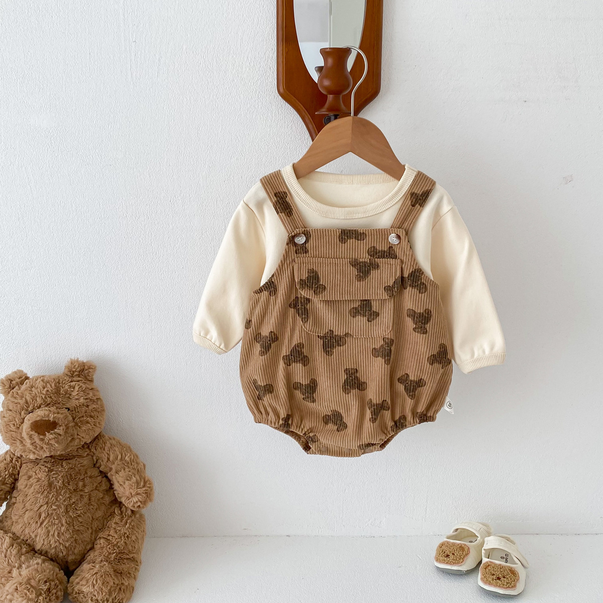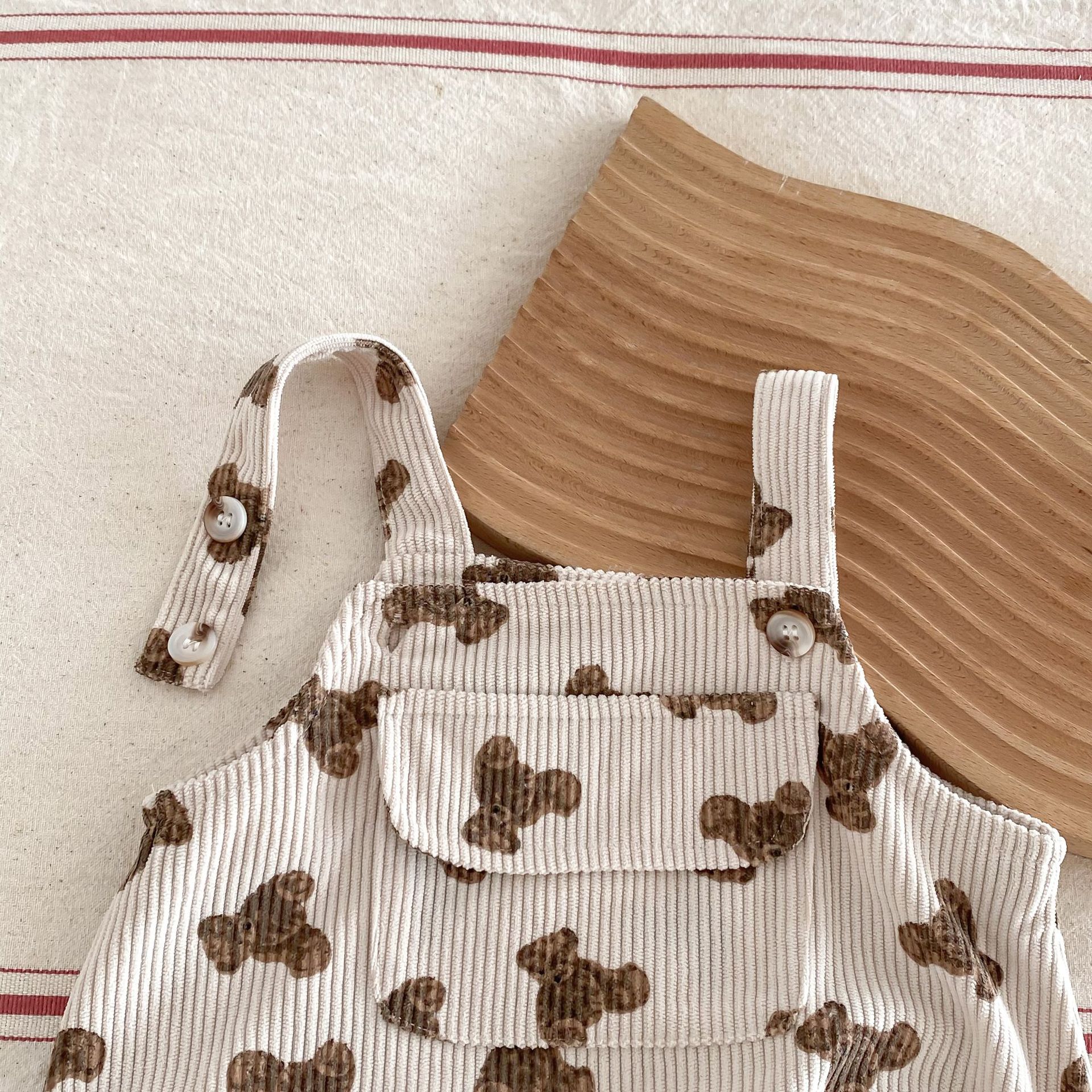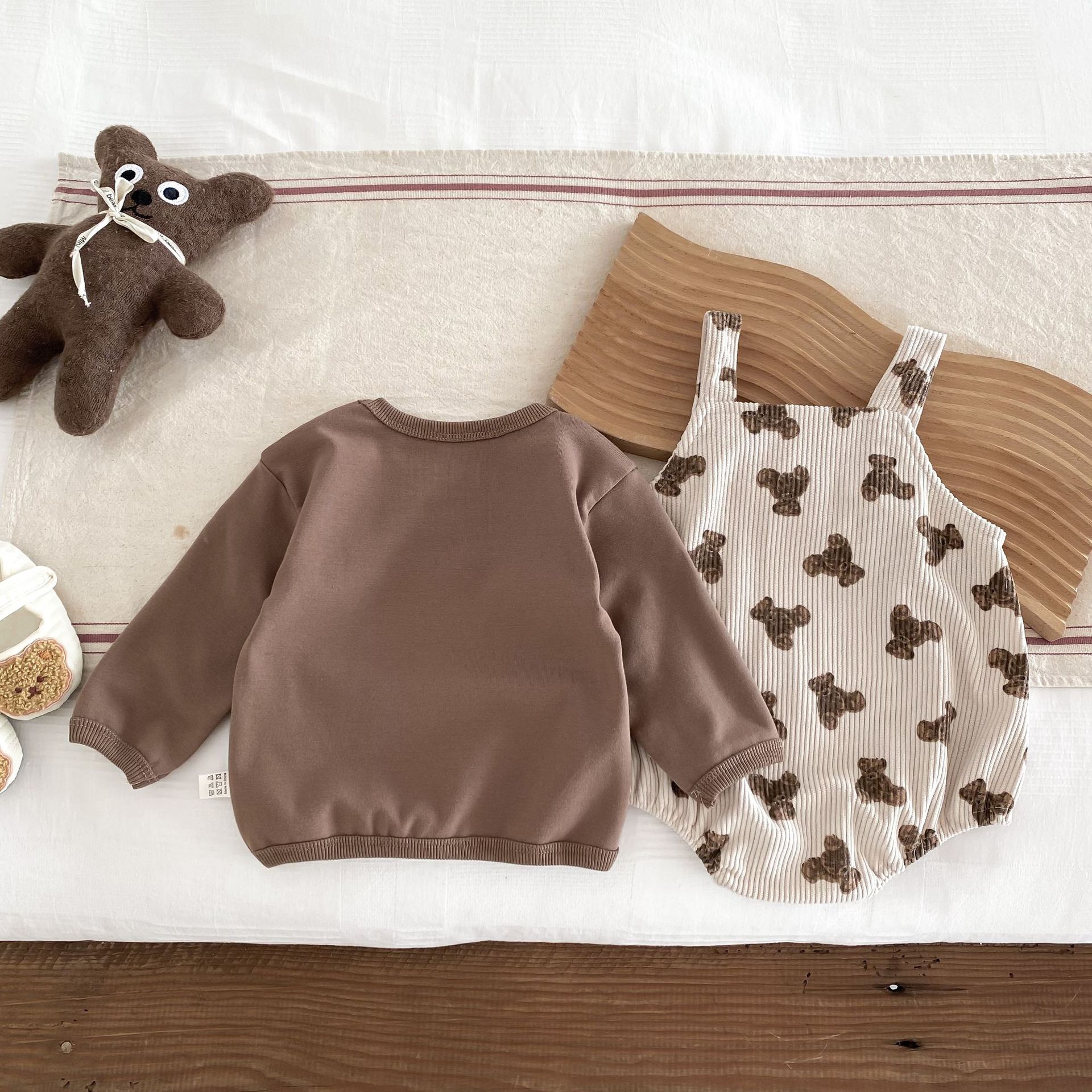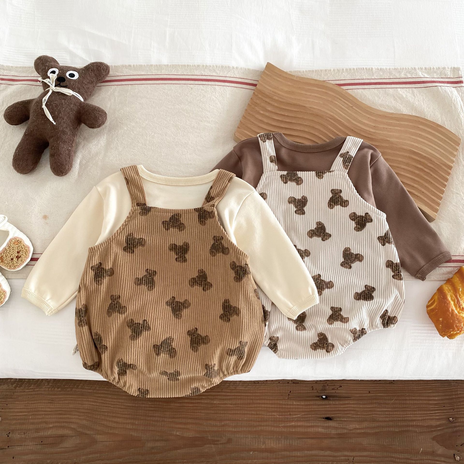 INS estilo coreano bebé PANA correa de pana traje de una pieza bebé lindo oso vaina manga larga Camiseta conjunto de dos piezas