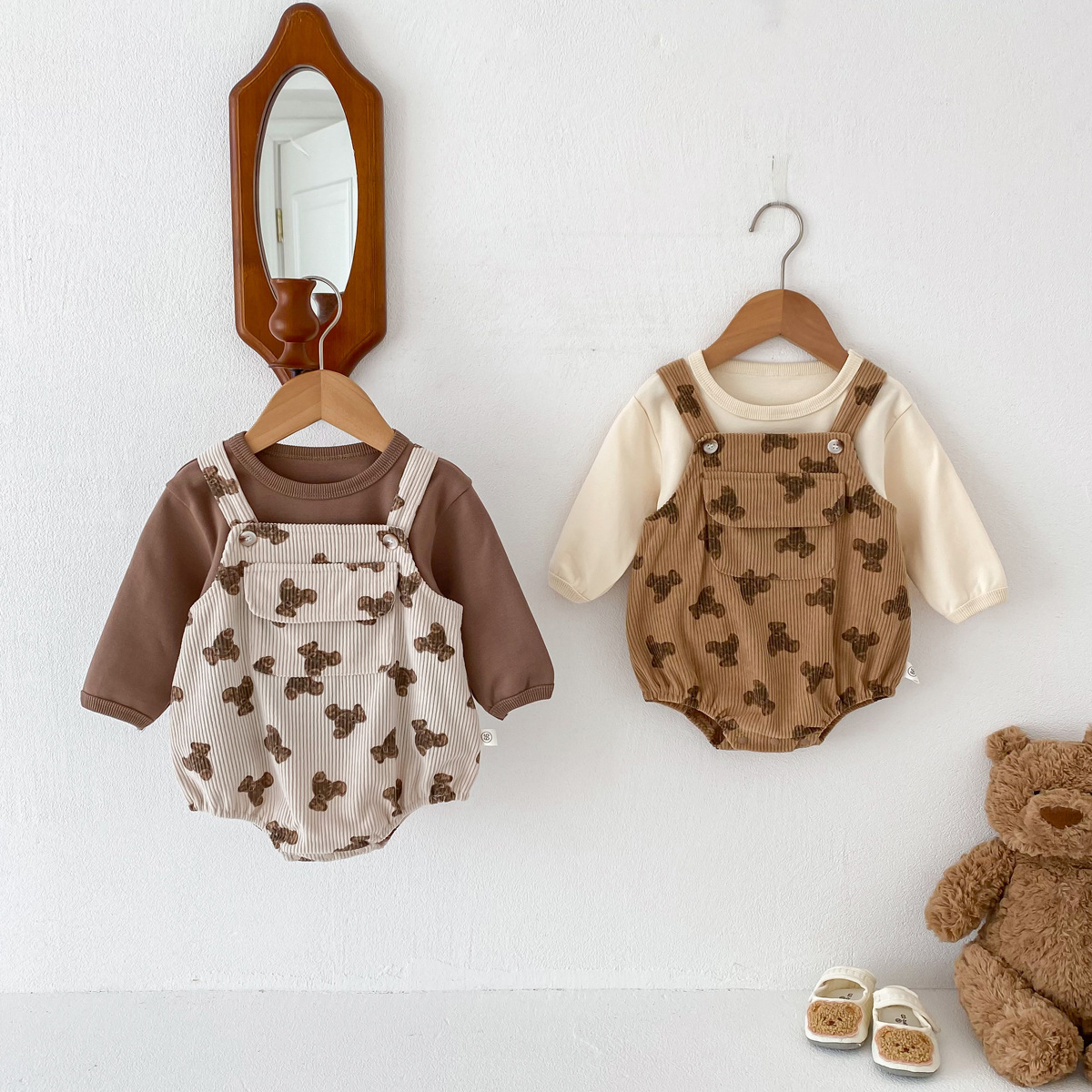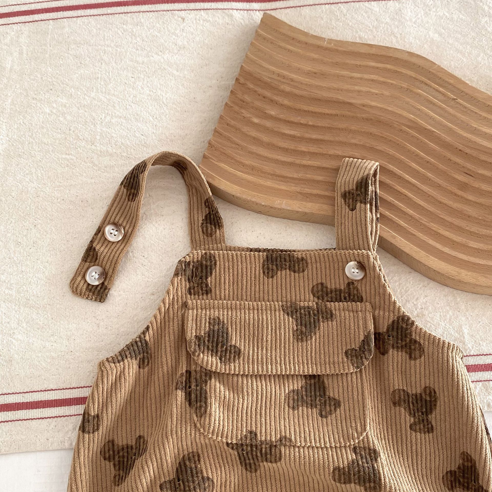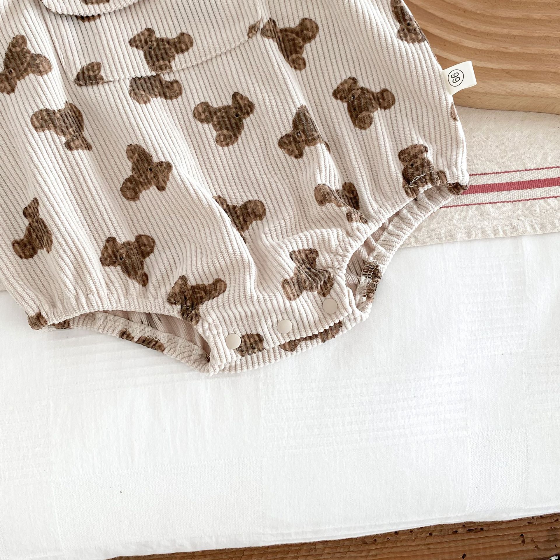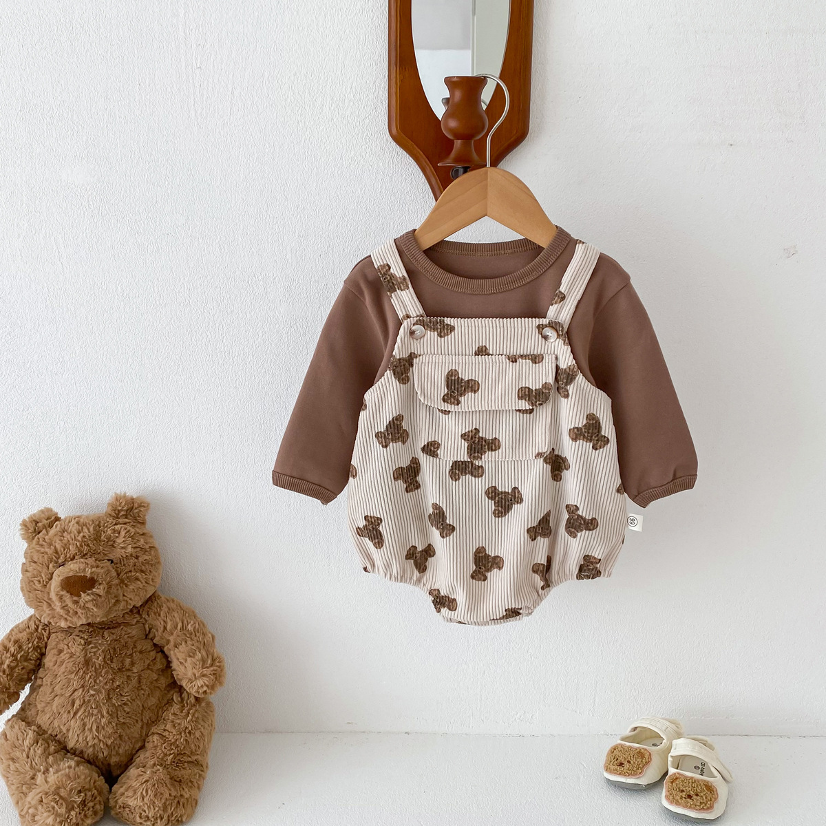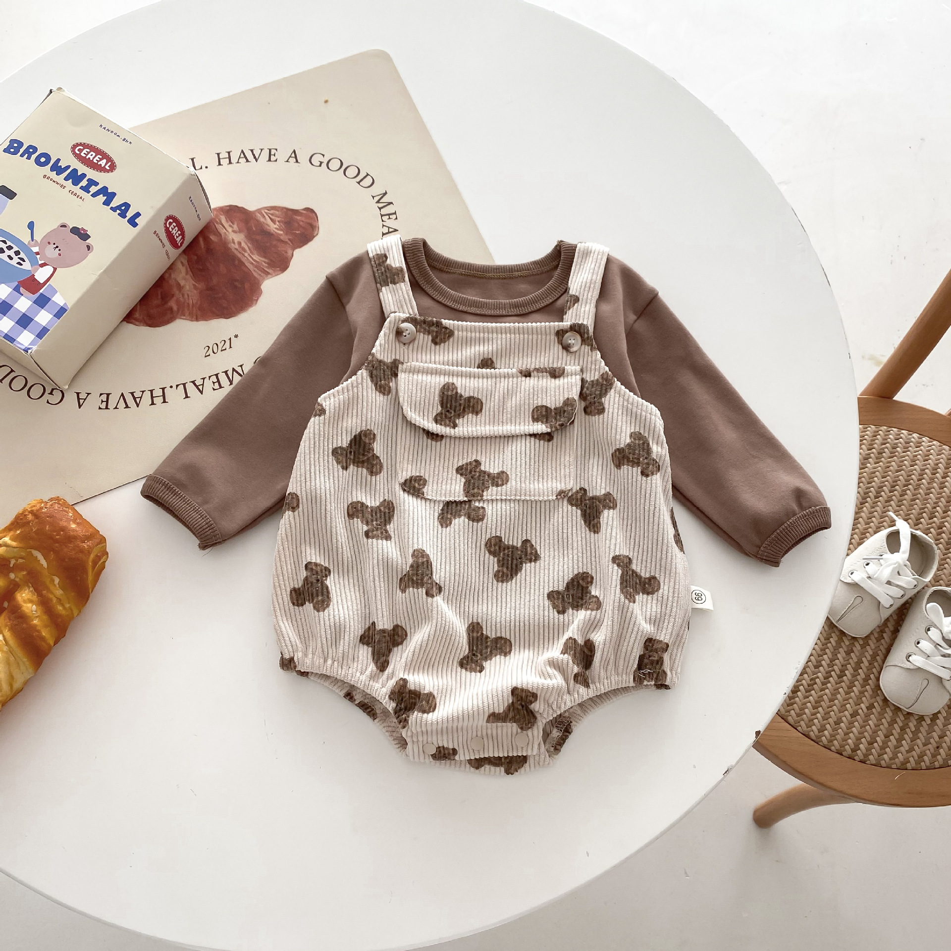 INS estilo coreano bebé PANA correa de pana traje de una pieza bebé lindo oso vaina manga larga Camiseta conjunto de dos piezas