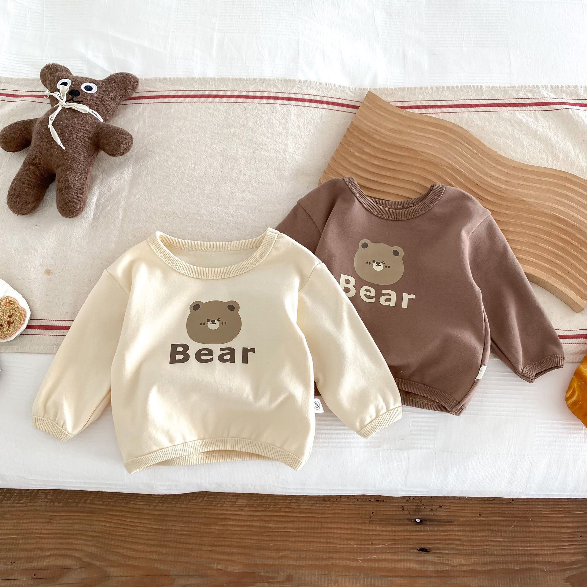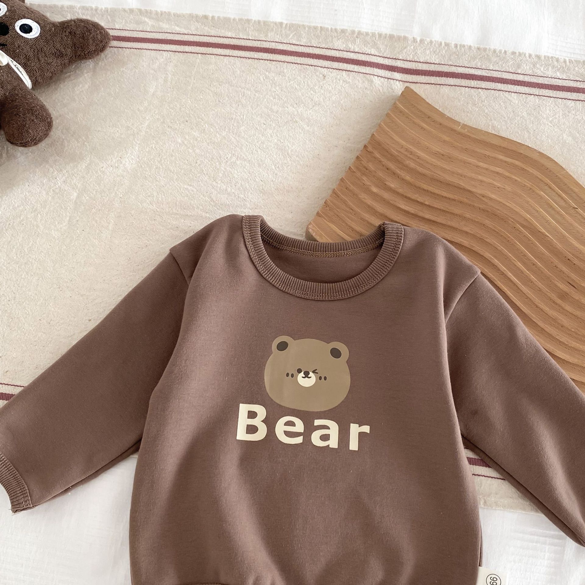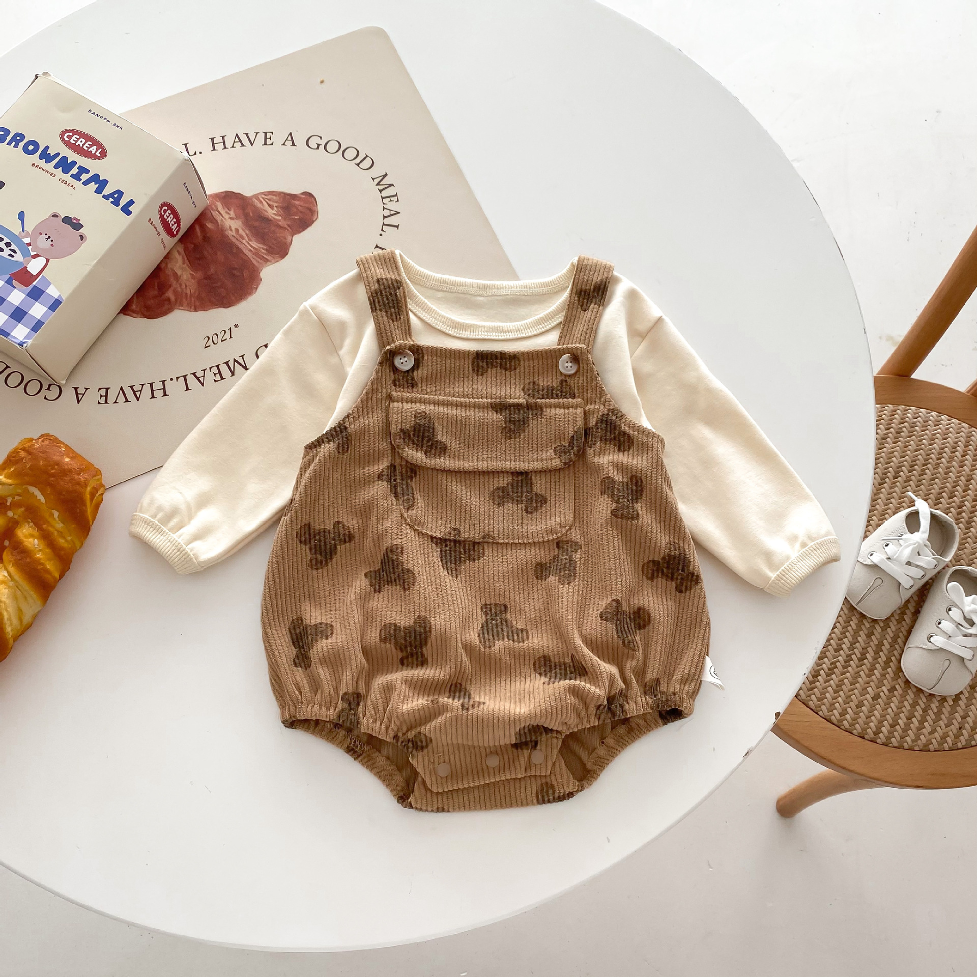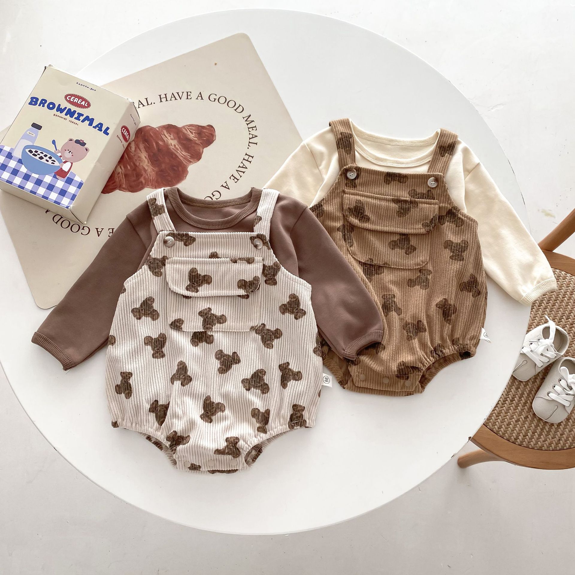 INS estilo coreano bebé PANA correa de pana traje de una pieza bebé lindo oso vaina manga larga Camiseta conjunto de dos piezas