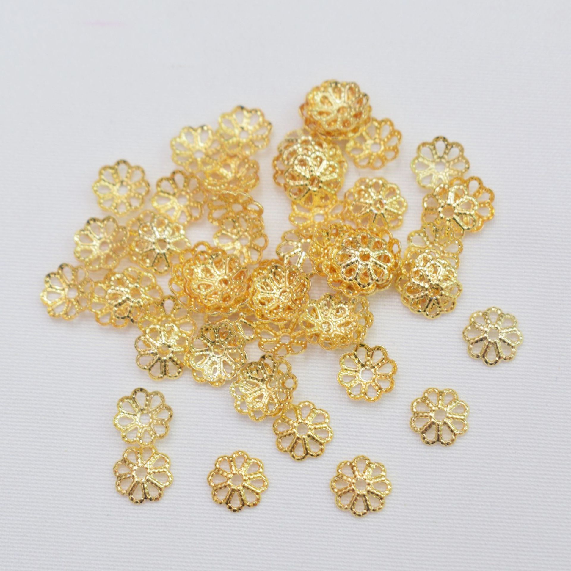 18K oro envuelto color preservando flor titular hueco flor sombrero perlas accesorios diy pulsera hecha a mano material de cuentas espaciador al por mayor