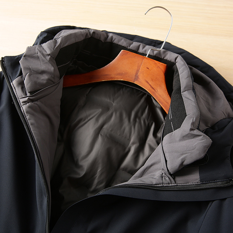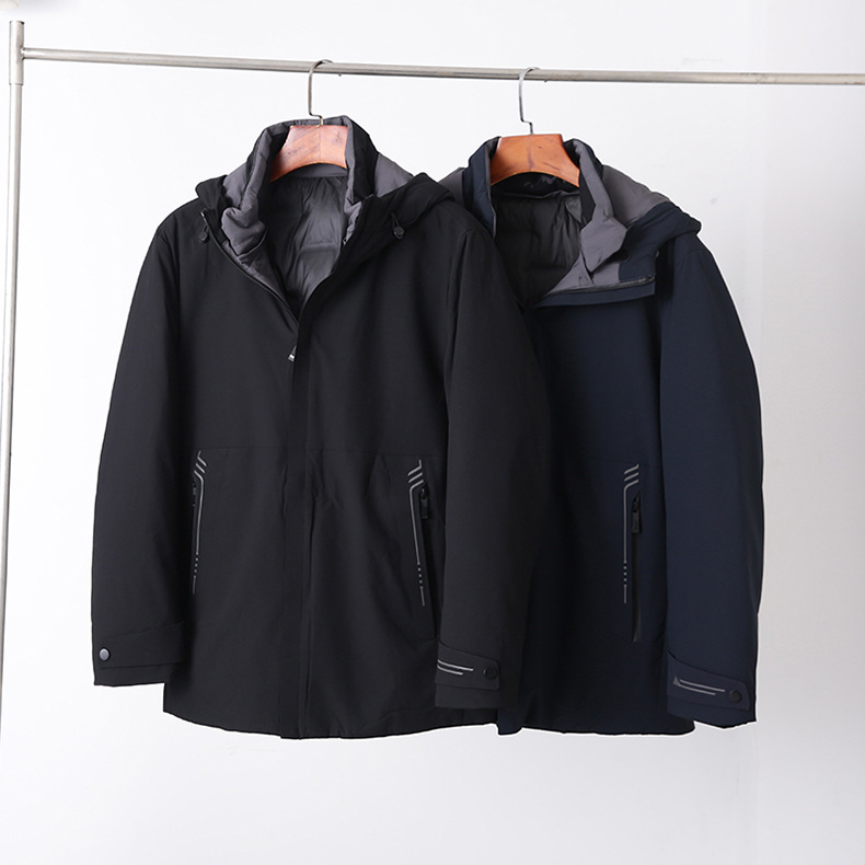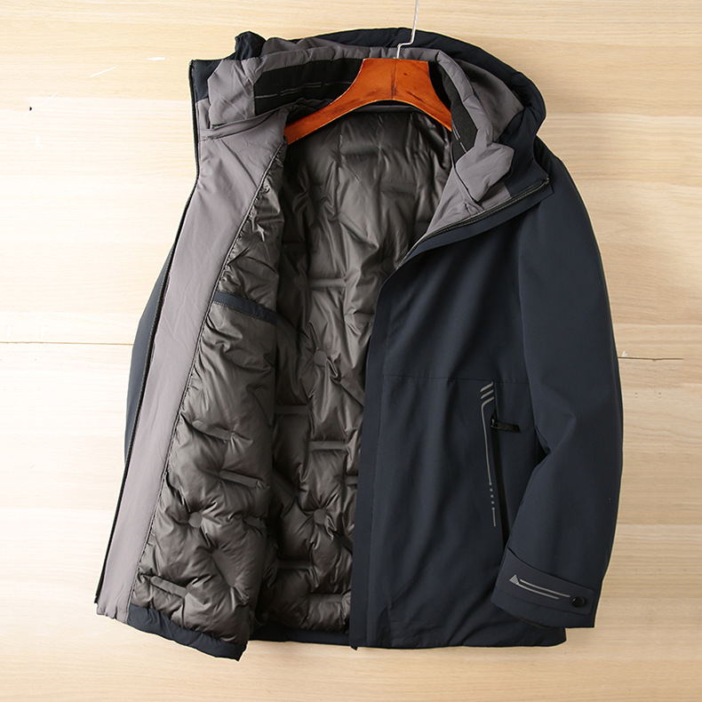 Blanco ganso abajo chaqueta de los hombres a prueba de viento cálido cuello desmontable 90 terciopelo tres-prueba tela abrigo de invierno Y8865