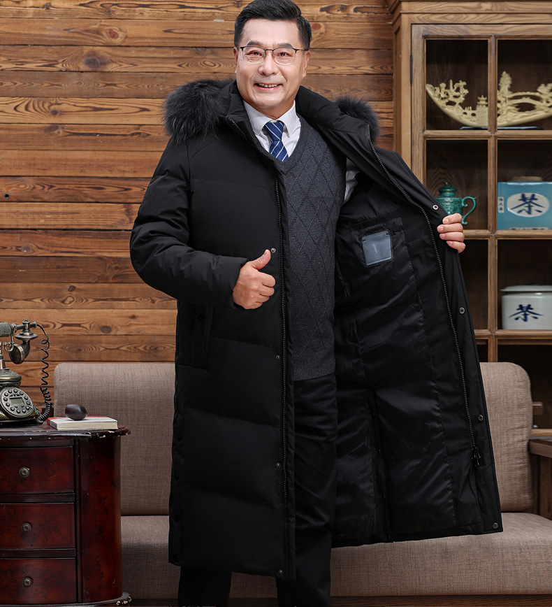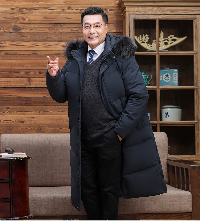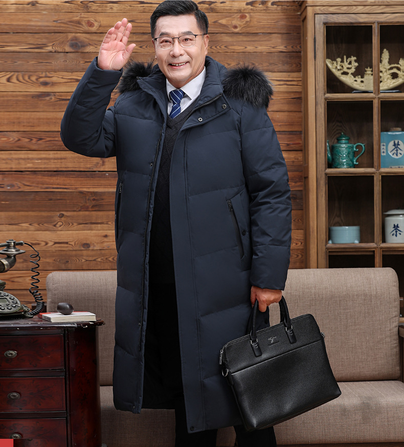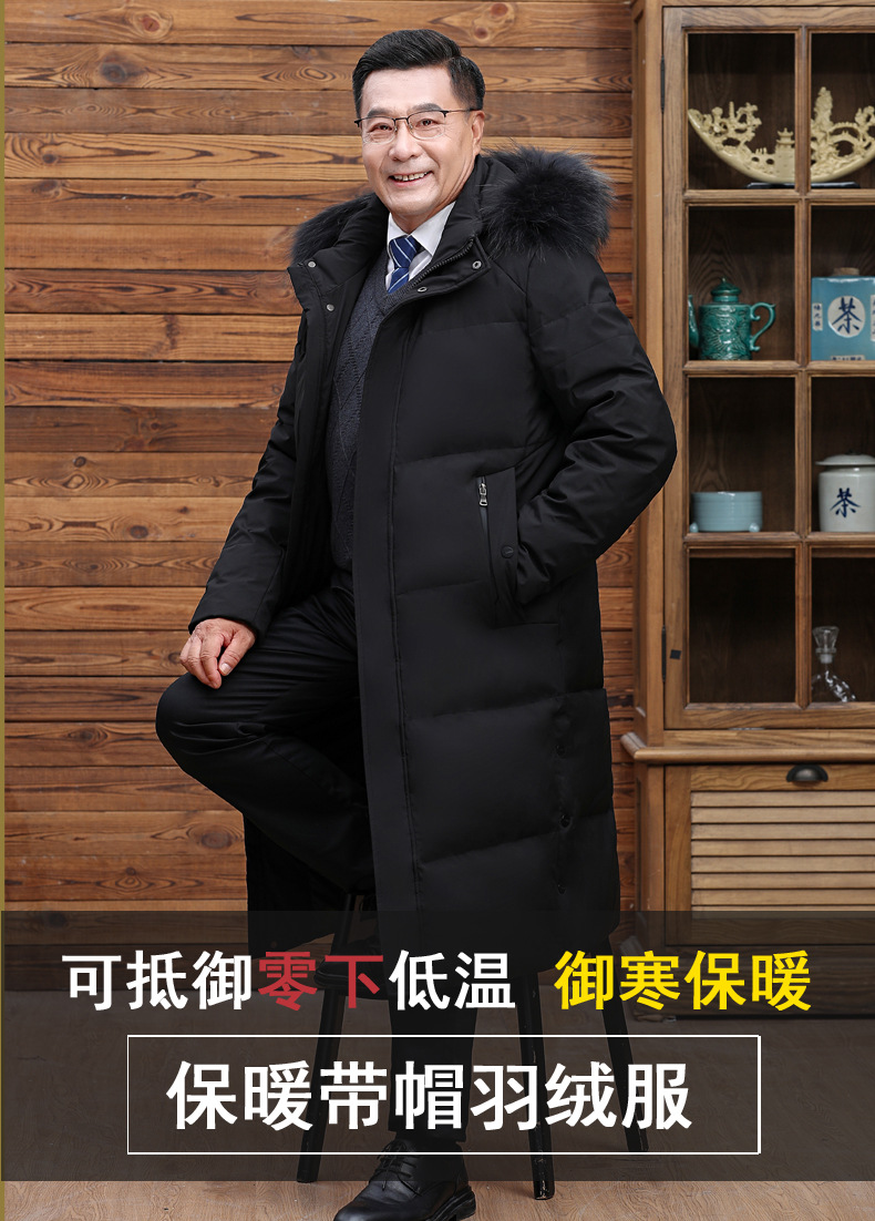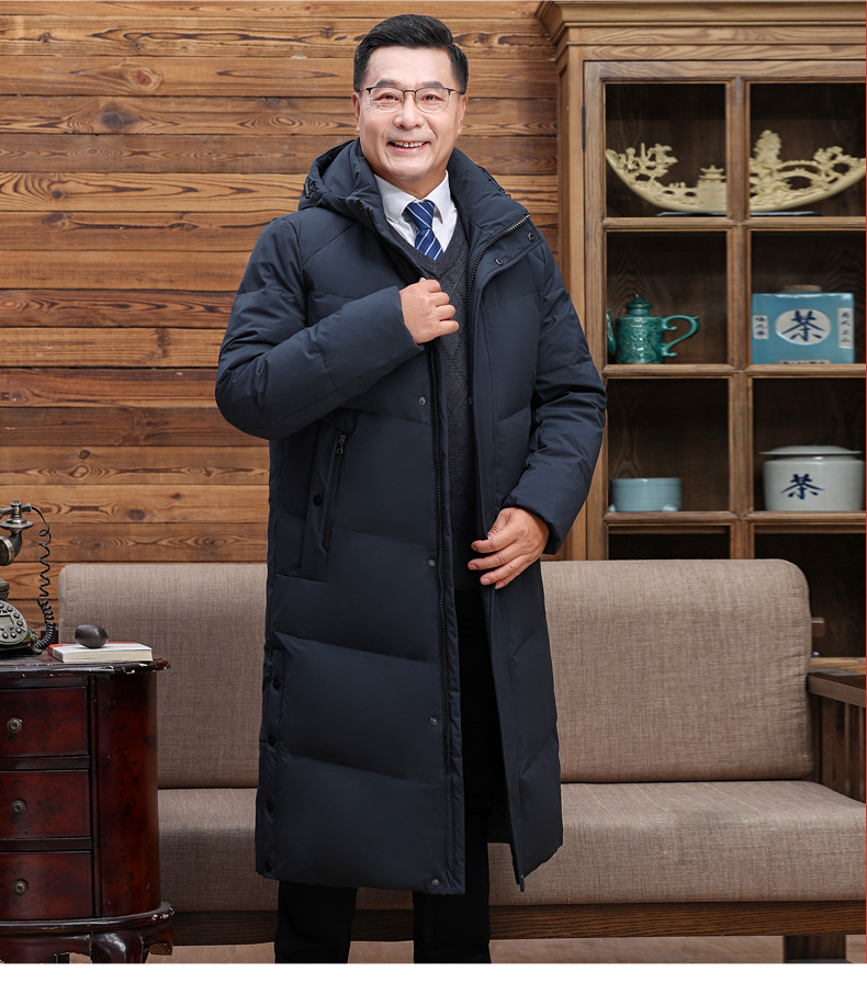 Abajo chaqueta de los hombres 2023 Invierno nuevo medio-longitud con capucha cálido de mediana edad y anciano papá pato blanco abajo chaqueta