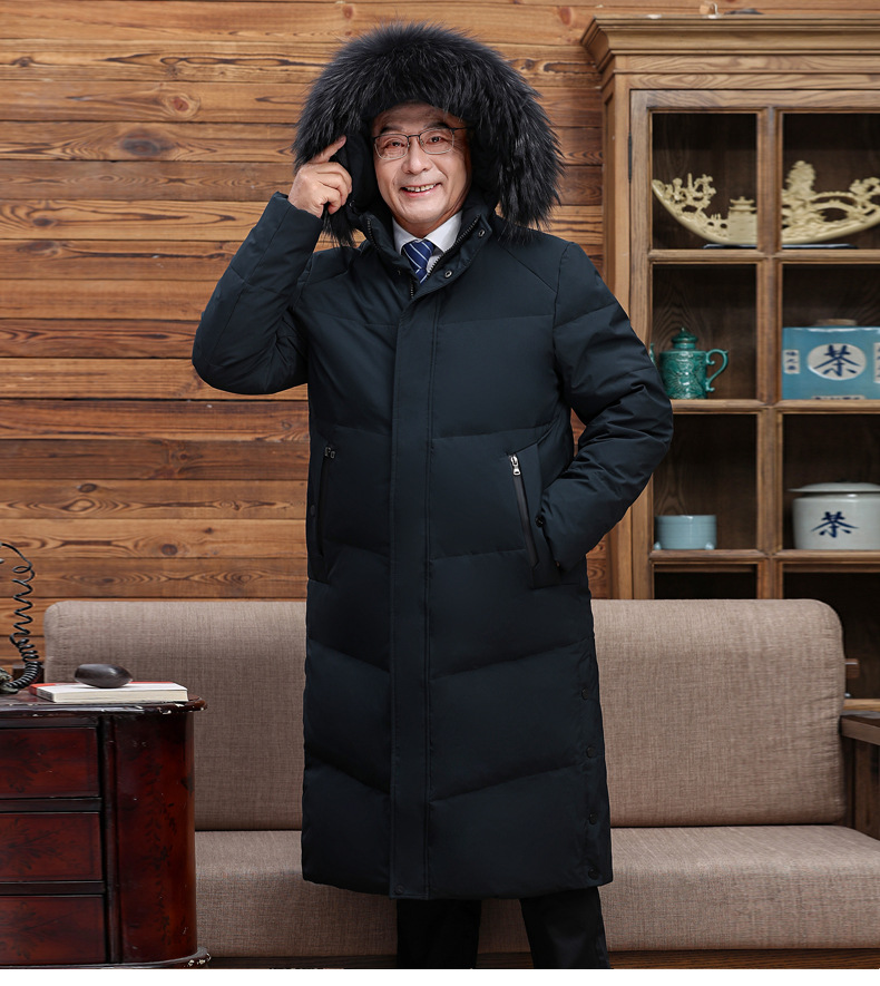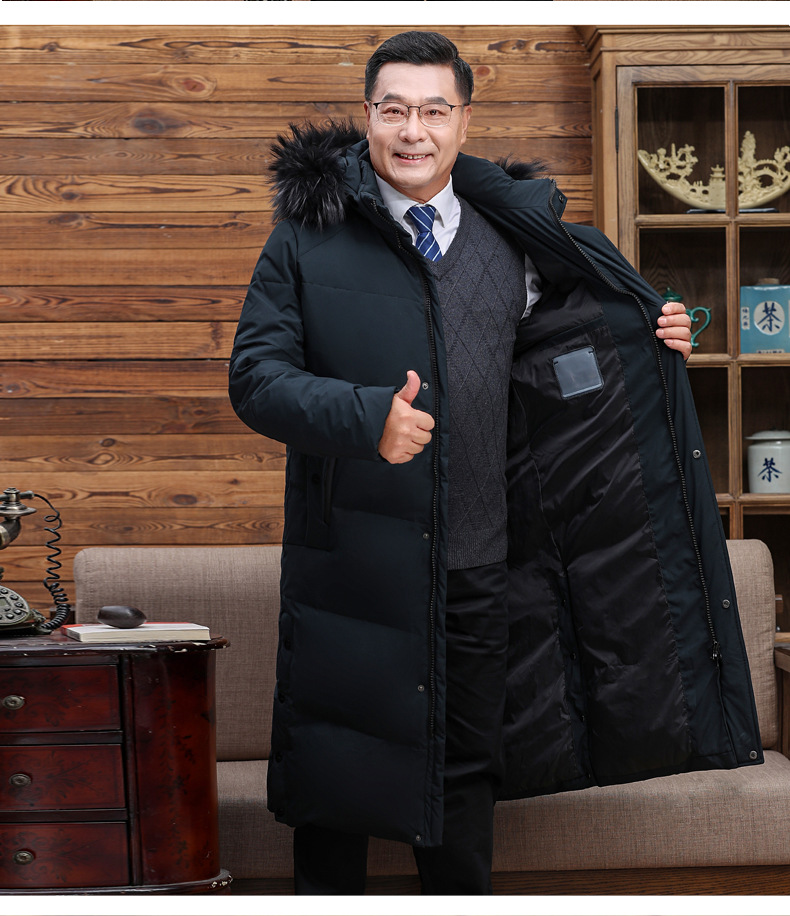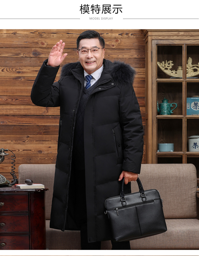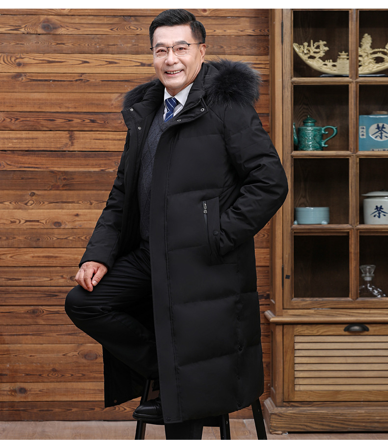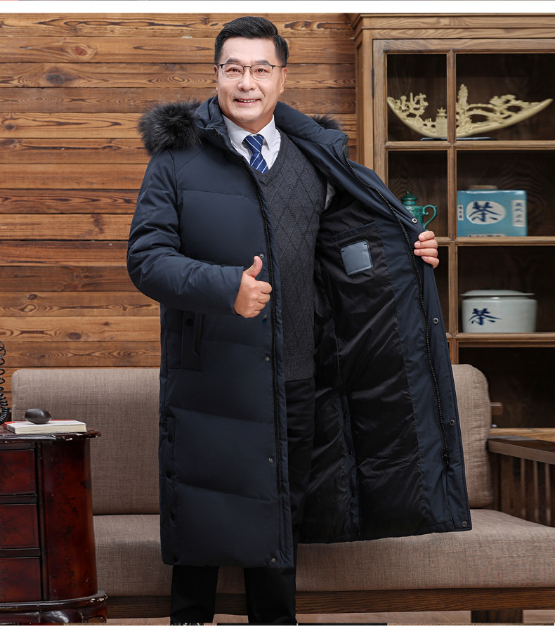 Abajo chaqueta de los hombres 2023 Invierno nuevo medio-longitud con capucha cálido de mediana edad y anciano papá pato blanco abajo chaqueta