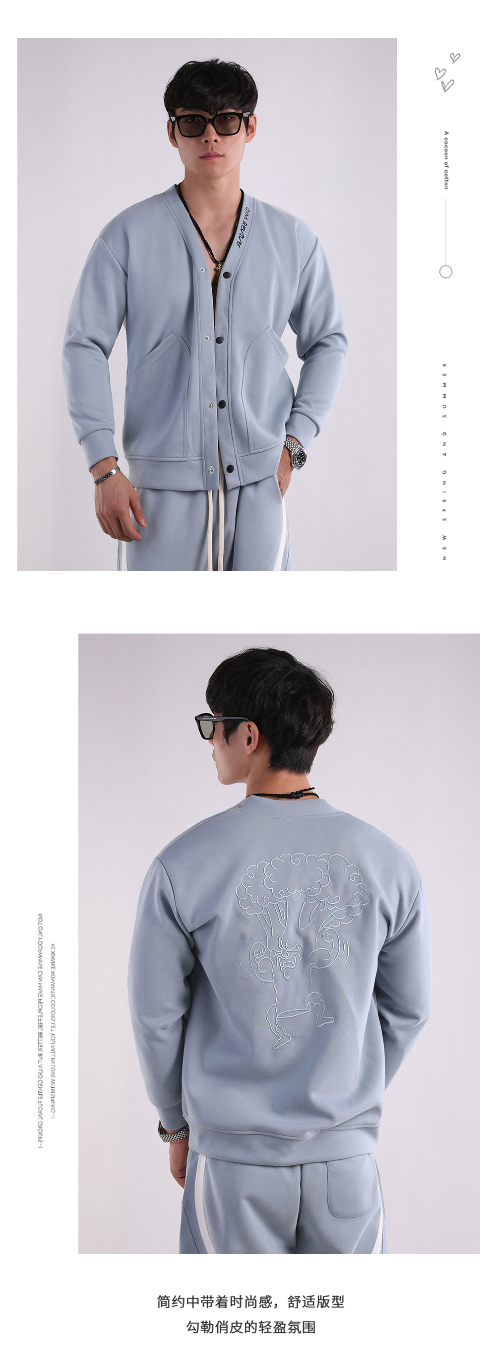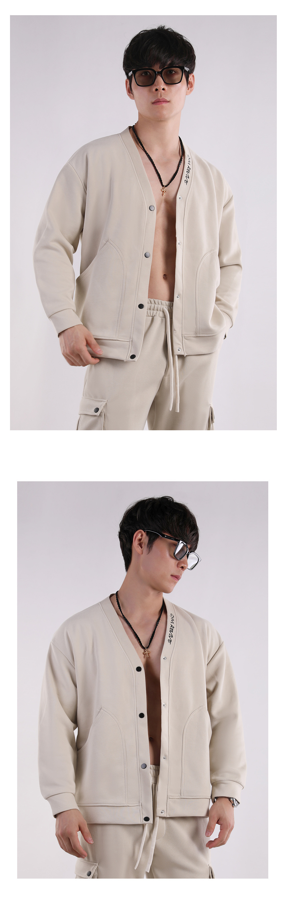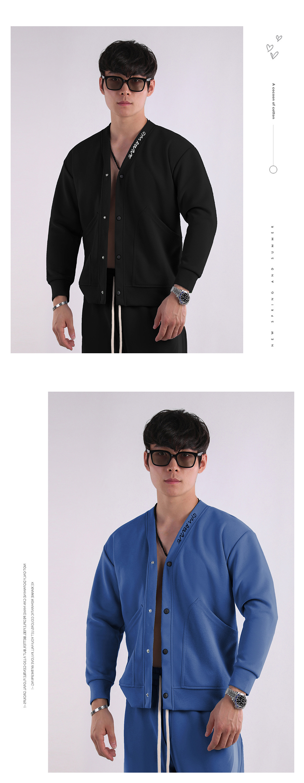 Engrosada primavera y otoño chaqueta de manga larga de los hombres simple cardigan traje casual más tamaño pantalones al aire libre con cuello en V nueva moda