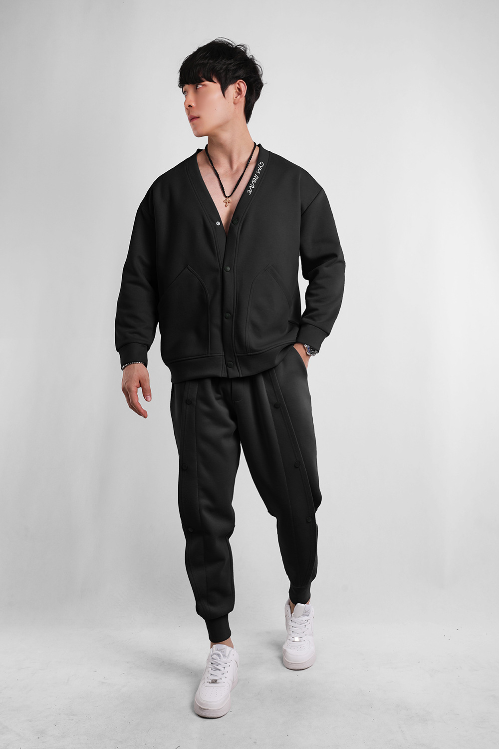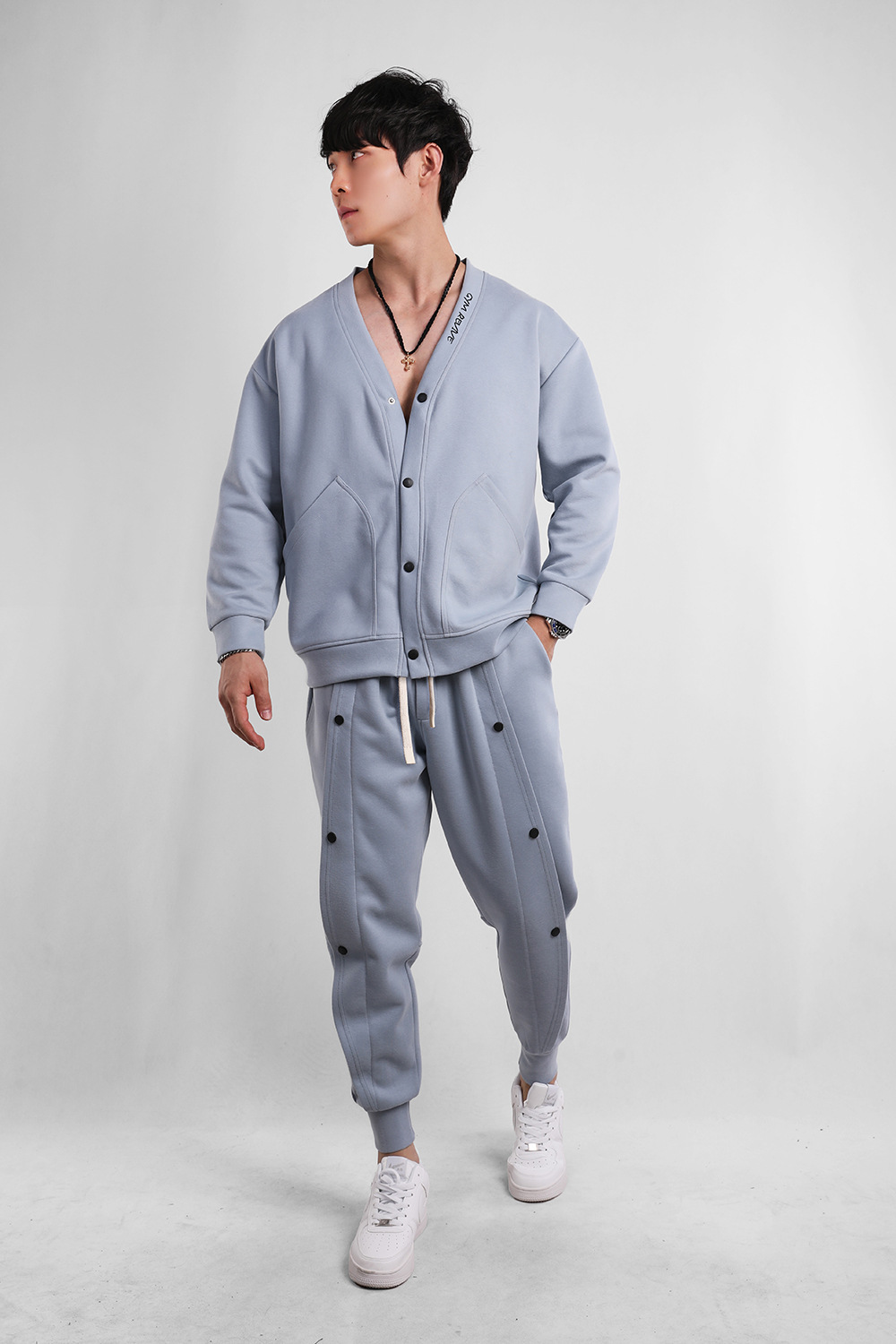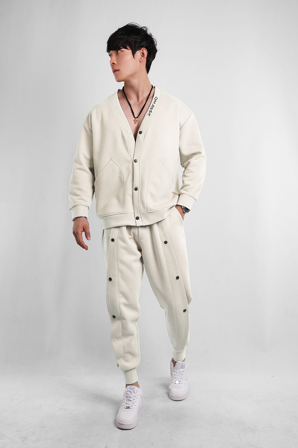 Engrosada primavera y otoño chaqueta de manga larga de los hombres simple cardigan traje casual más tamaño pantalones al aire libre con cuello en V nueva moda
