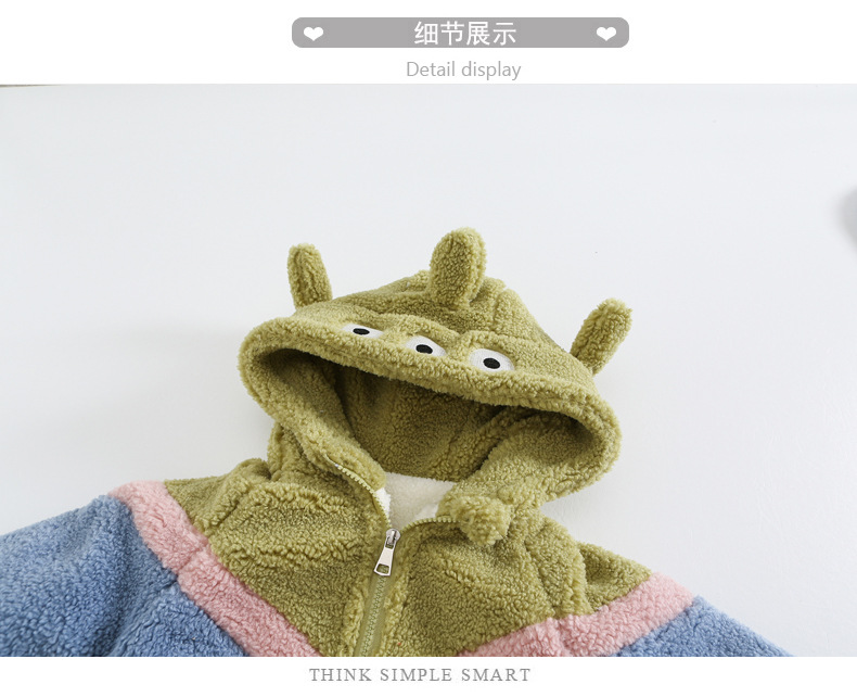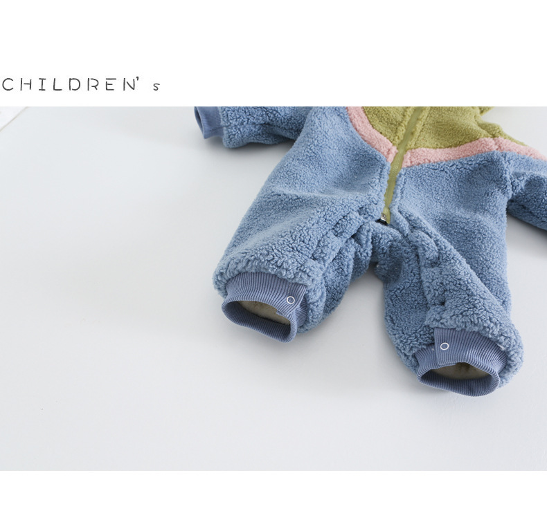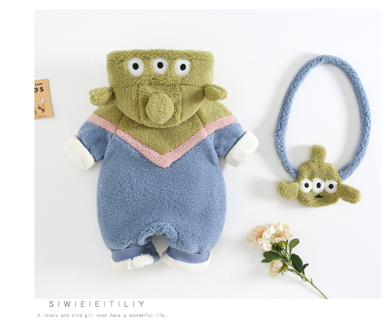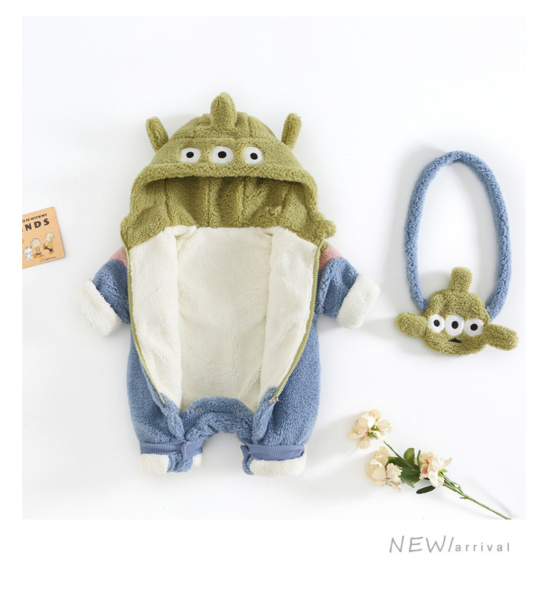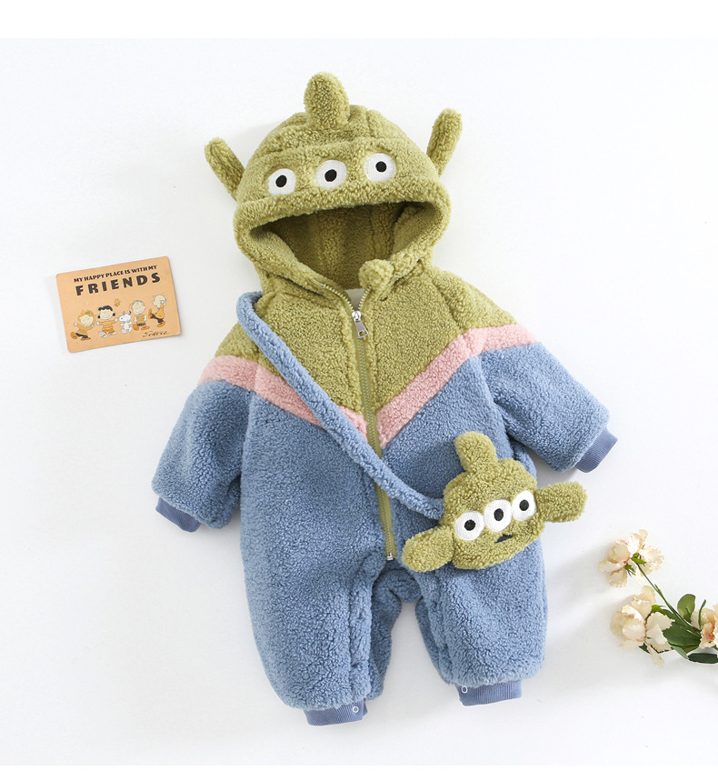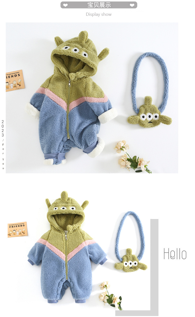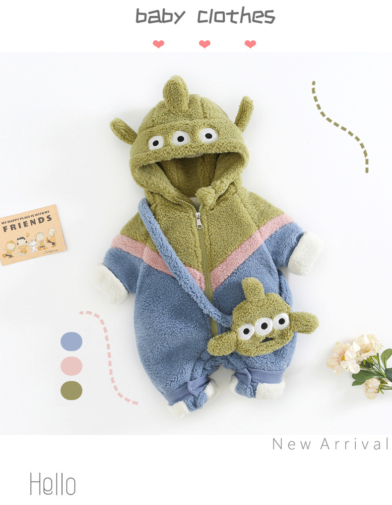 Lane Xiaobao Otoño e Invierno forrado de lana engrosada ropa de bebé 0-1 años de edad ropa de salida dibujos animados lindo mono bolsa gratis