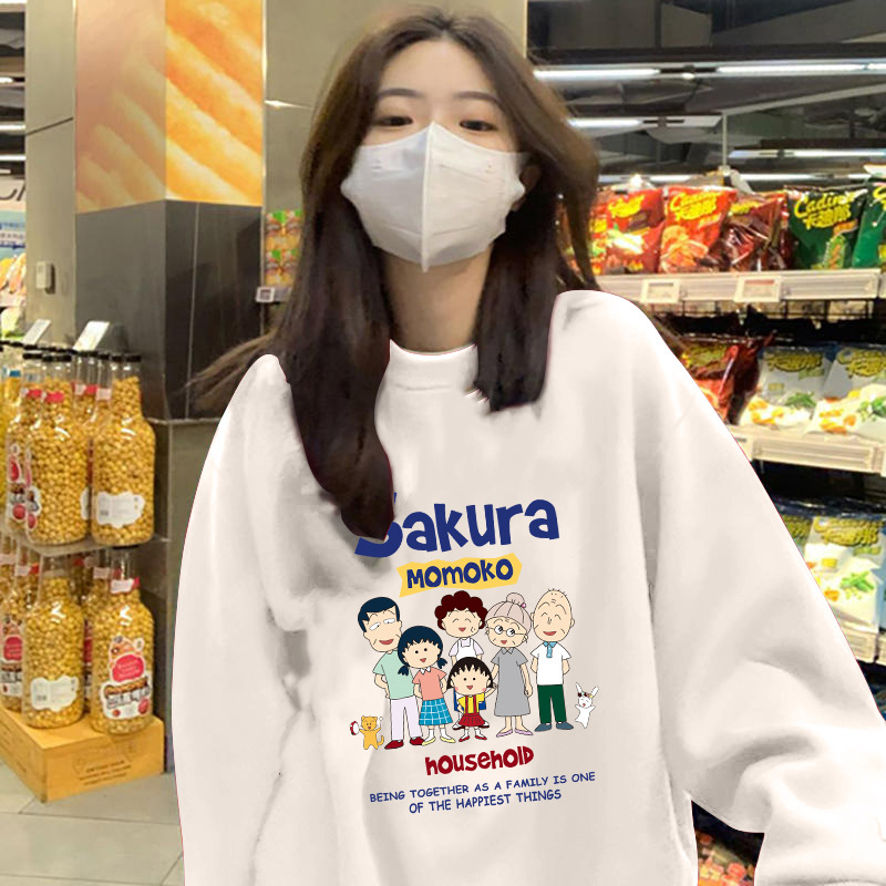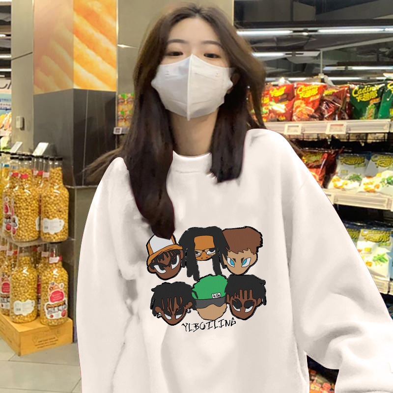A principios de otoño estilo de hong kong snoopy suéter de cuello redondo camiseta de manga larga de pareja de mujer delgada camiseta de color sólido camiseta de moda