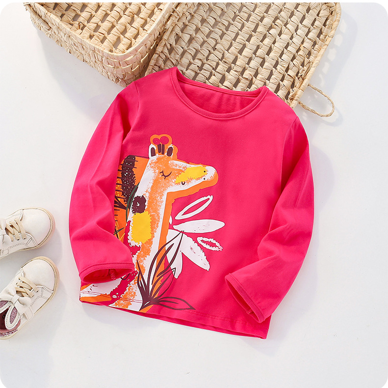 Forestkingdom ropa para niños al por mayor 2023 nueva camiseta de manga larga para niñas de dibujos animados patrón de estilo occidental camisa de fondo
