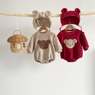 Estilo coreano bebé Otoño e Invierno nuevo hombre y mujer bebé estilo occidental muñeco de nieve de una pieza mameluco recién nacido forrado de lana con capucha mameluco