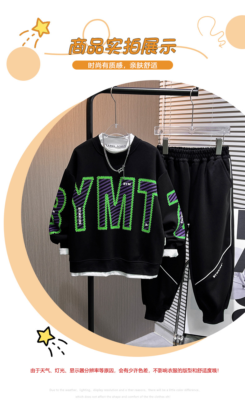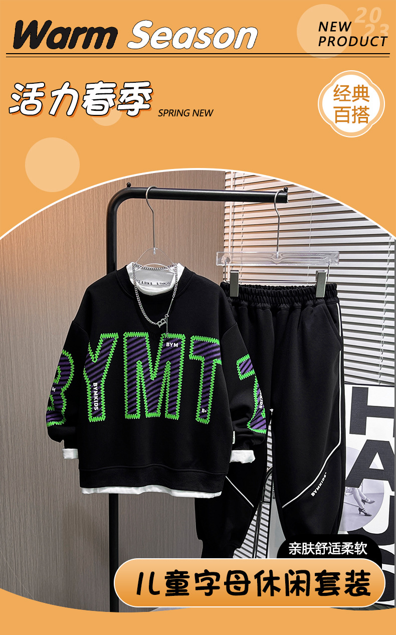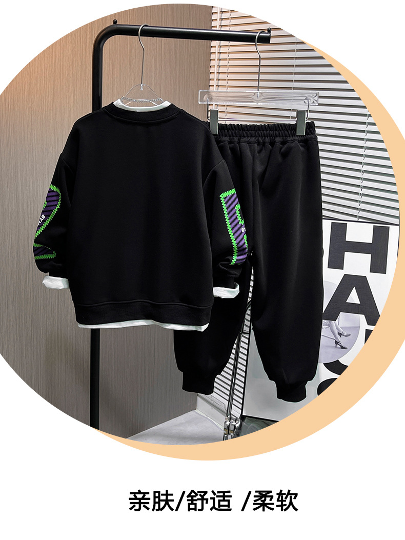 Popular 2024 niños primavera nuevo casual suéter de los niños de dos piezas estilo coreano estilo occidental medio y grande traje de los muchachos