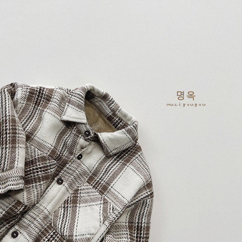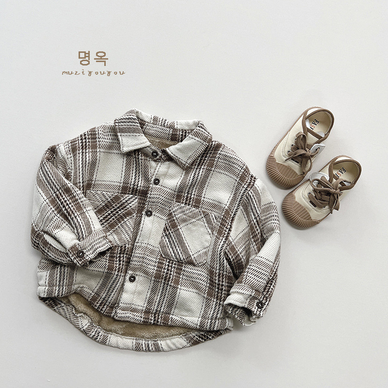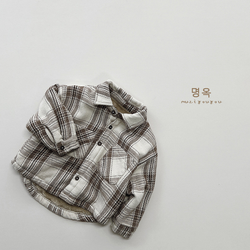 Estilo artístico de los muchachos de la tela escocesa camisa de lana forrada de invierno Nuevas niñas de estilo coreano retro top coat moda infantil ropa para niños