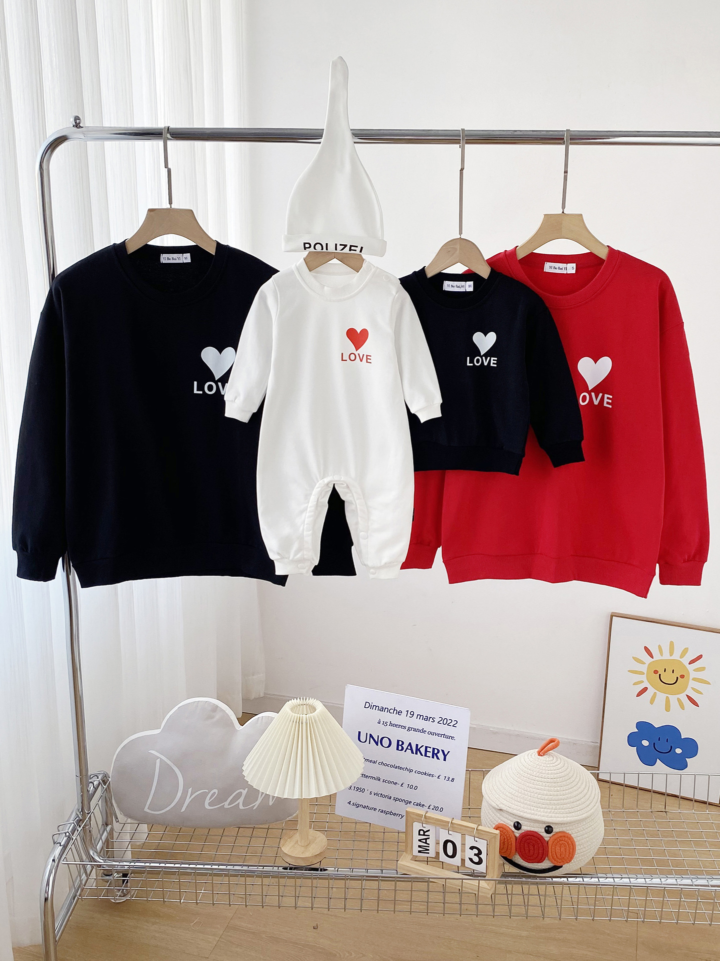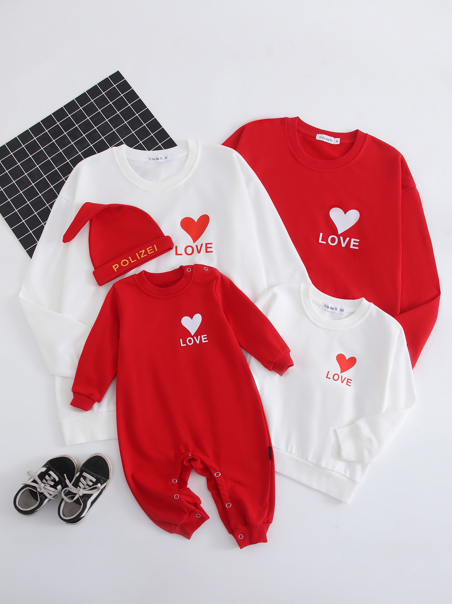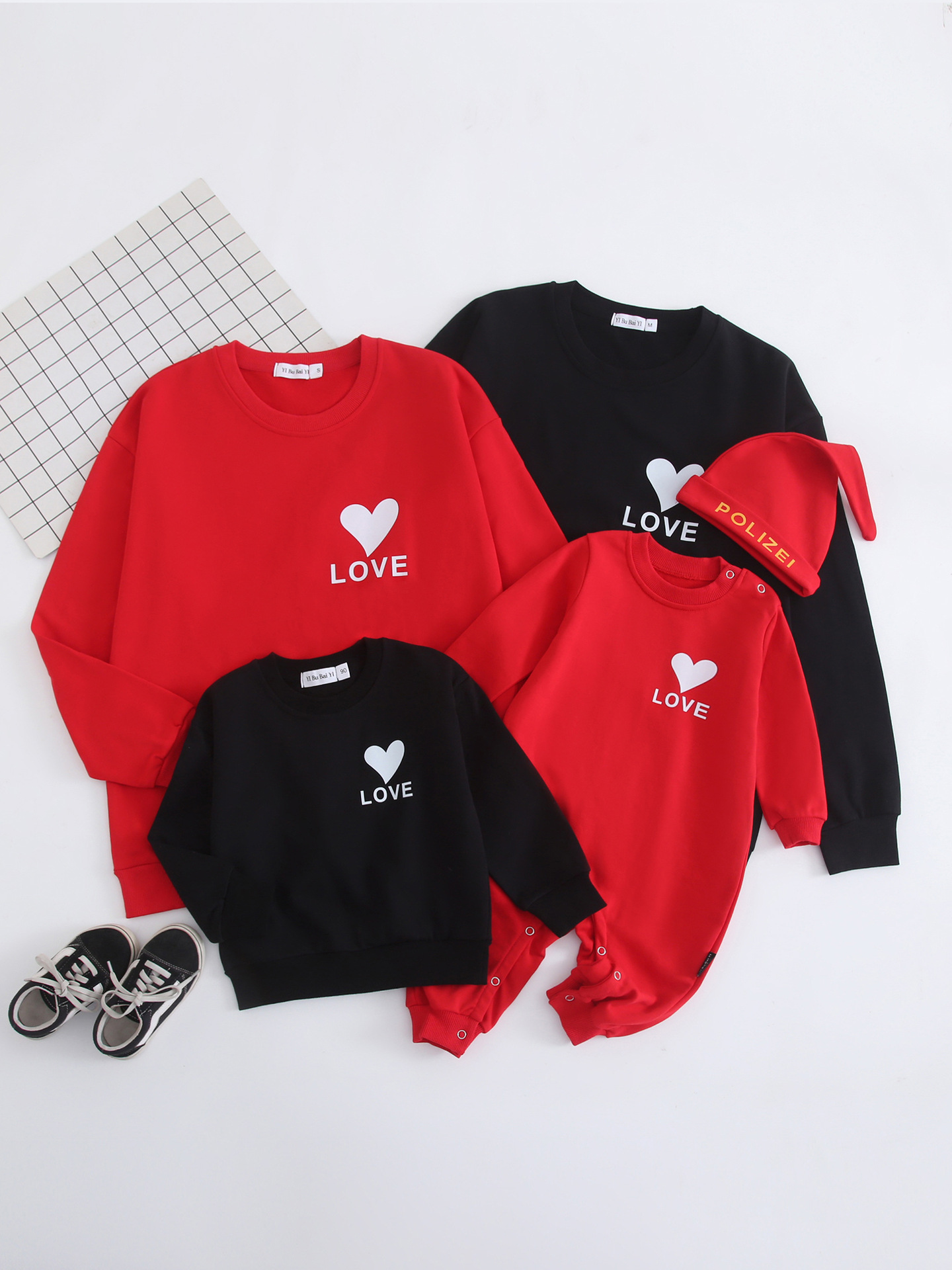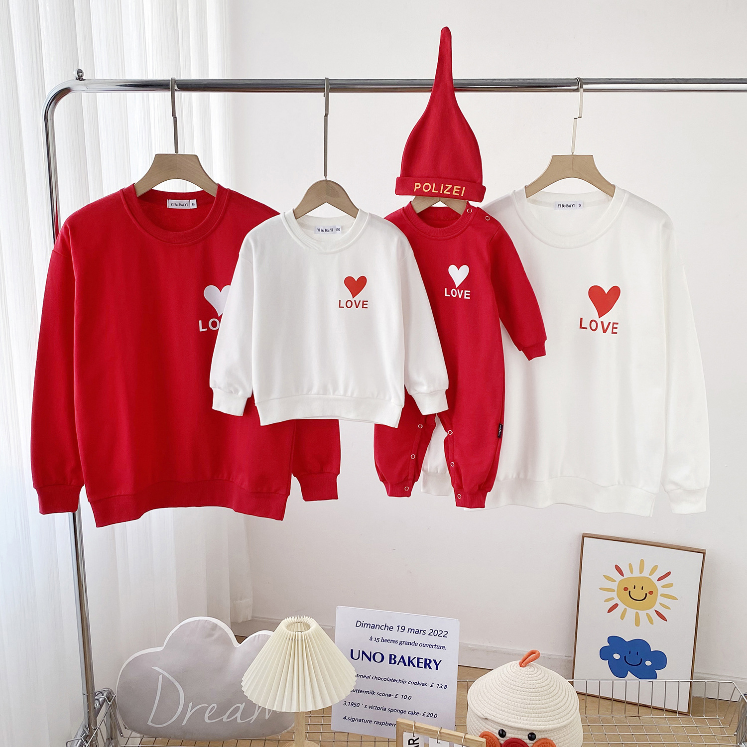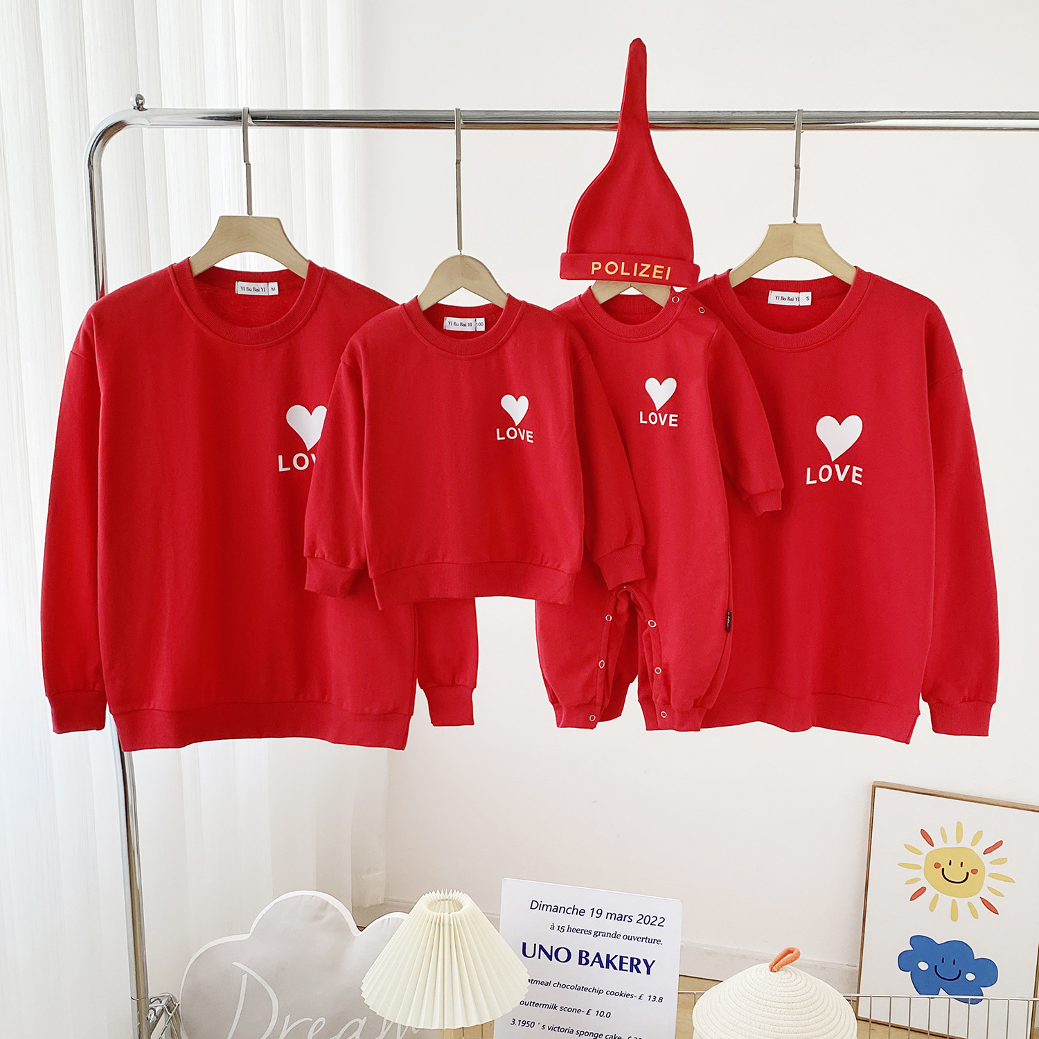 2023 nuevo suéter de algodón AMOR corazón estampado simple ropa de padre-hijo rojo festivo madre-hija Bebé Ropa familiar