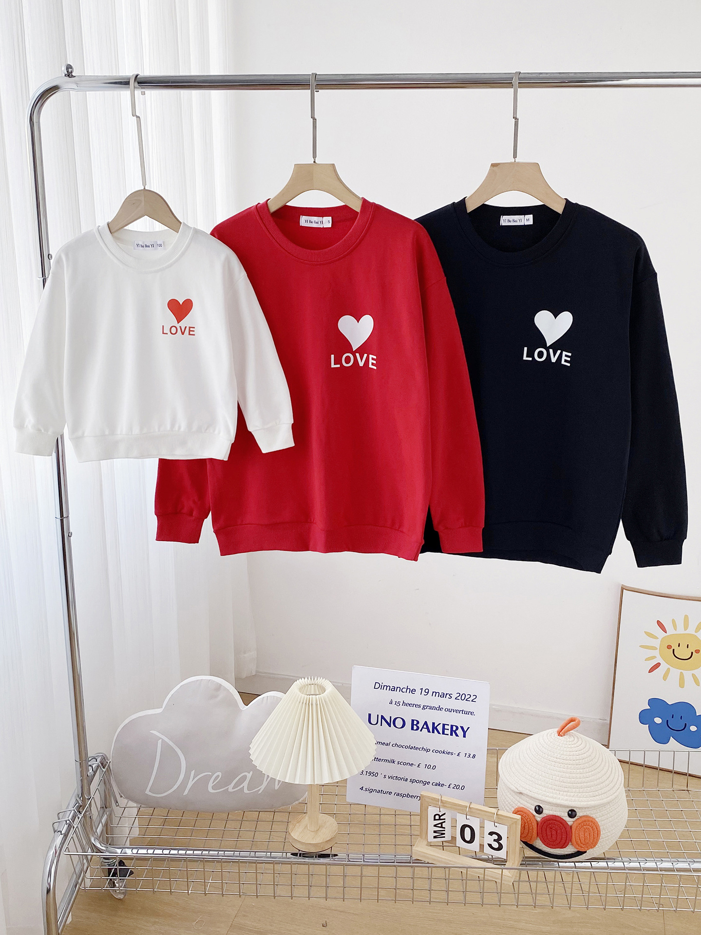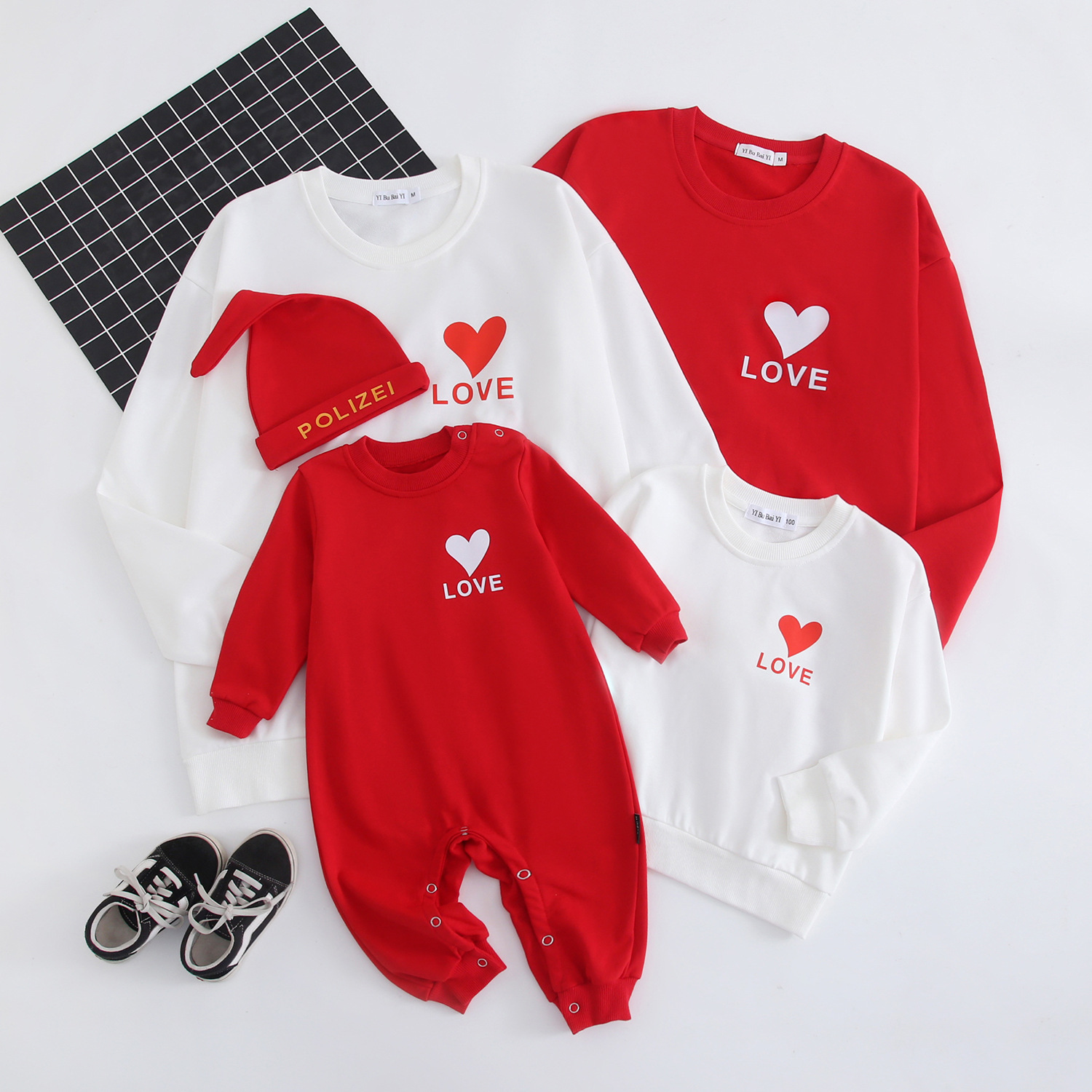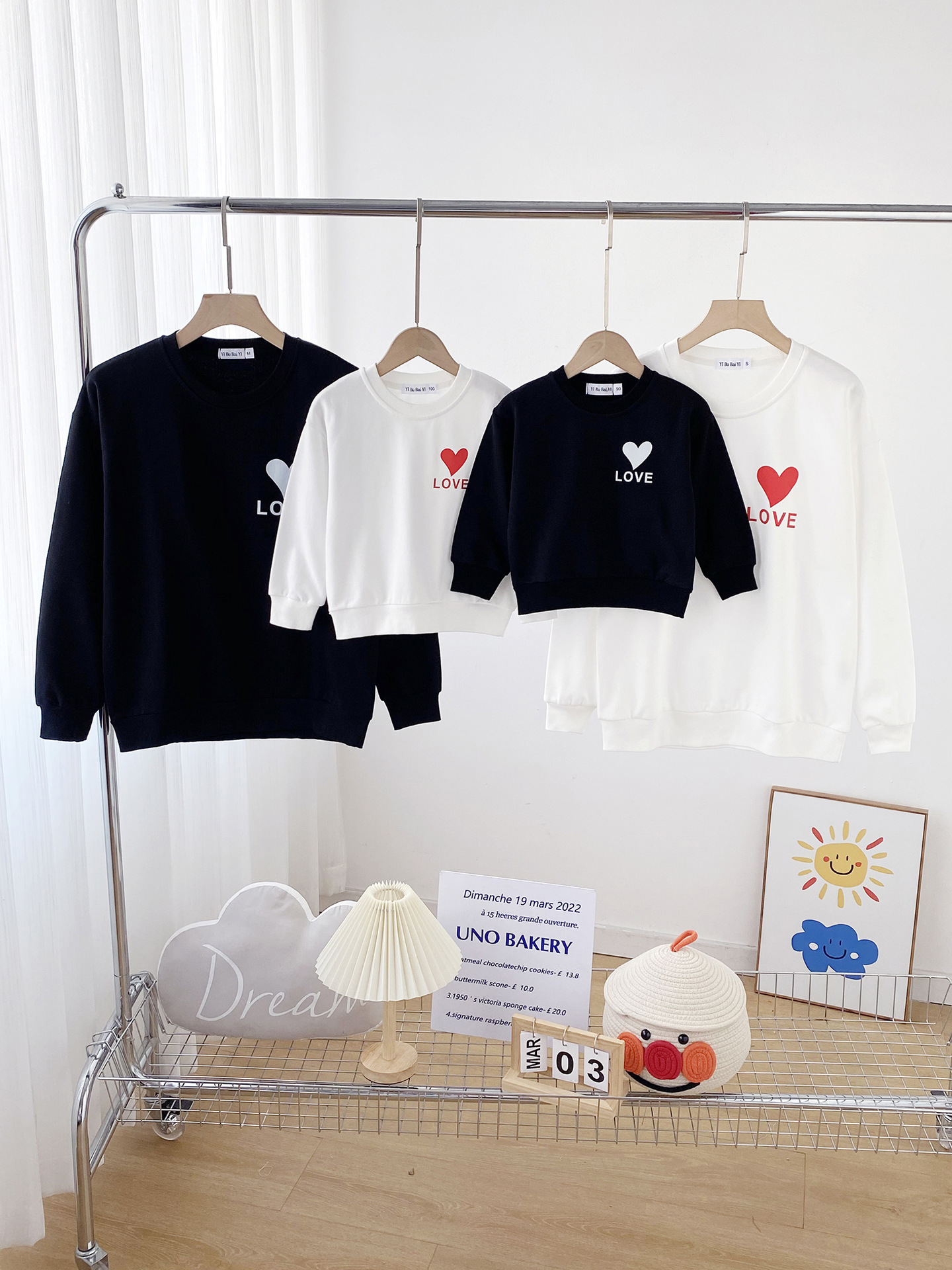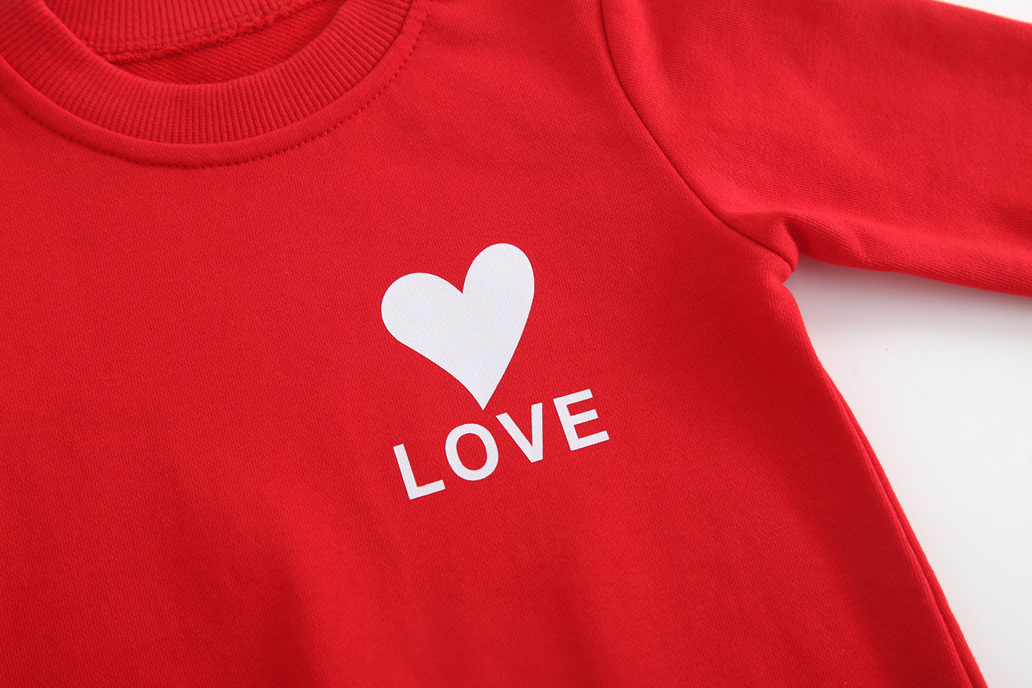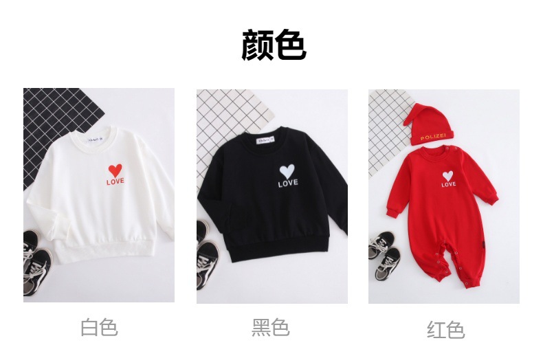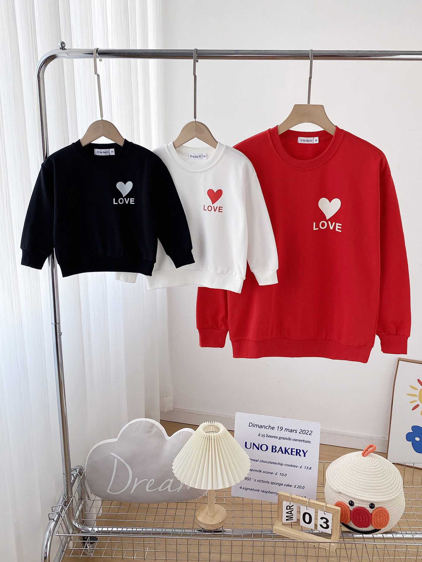 2023 nuevo suéter de algodón AMOR corazón estampado simple ropa de padre-hijo rojo festivo madre-hija Bebé Ropa familiar