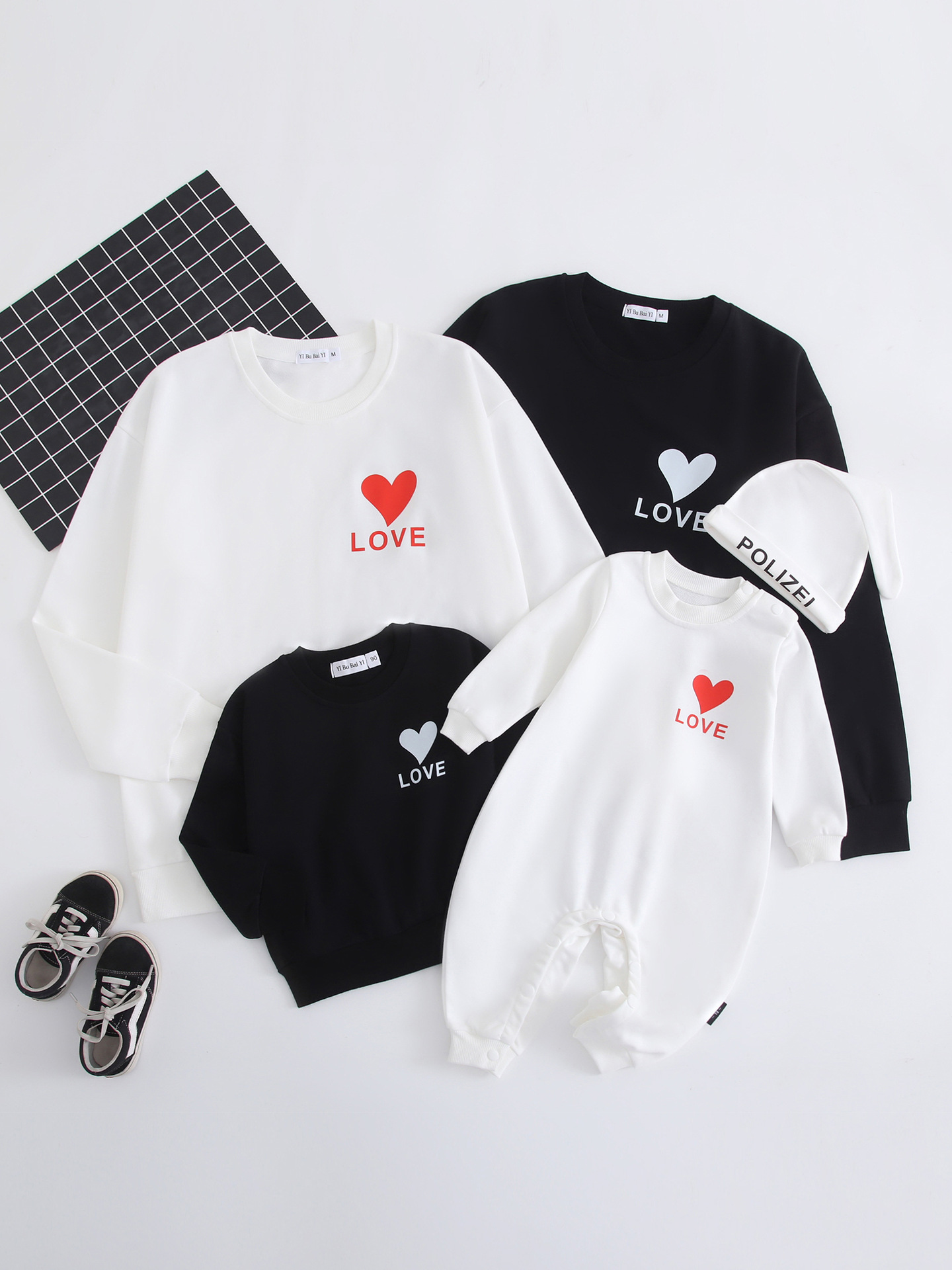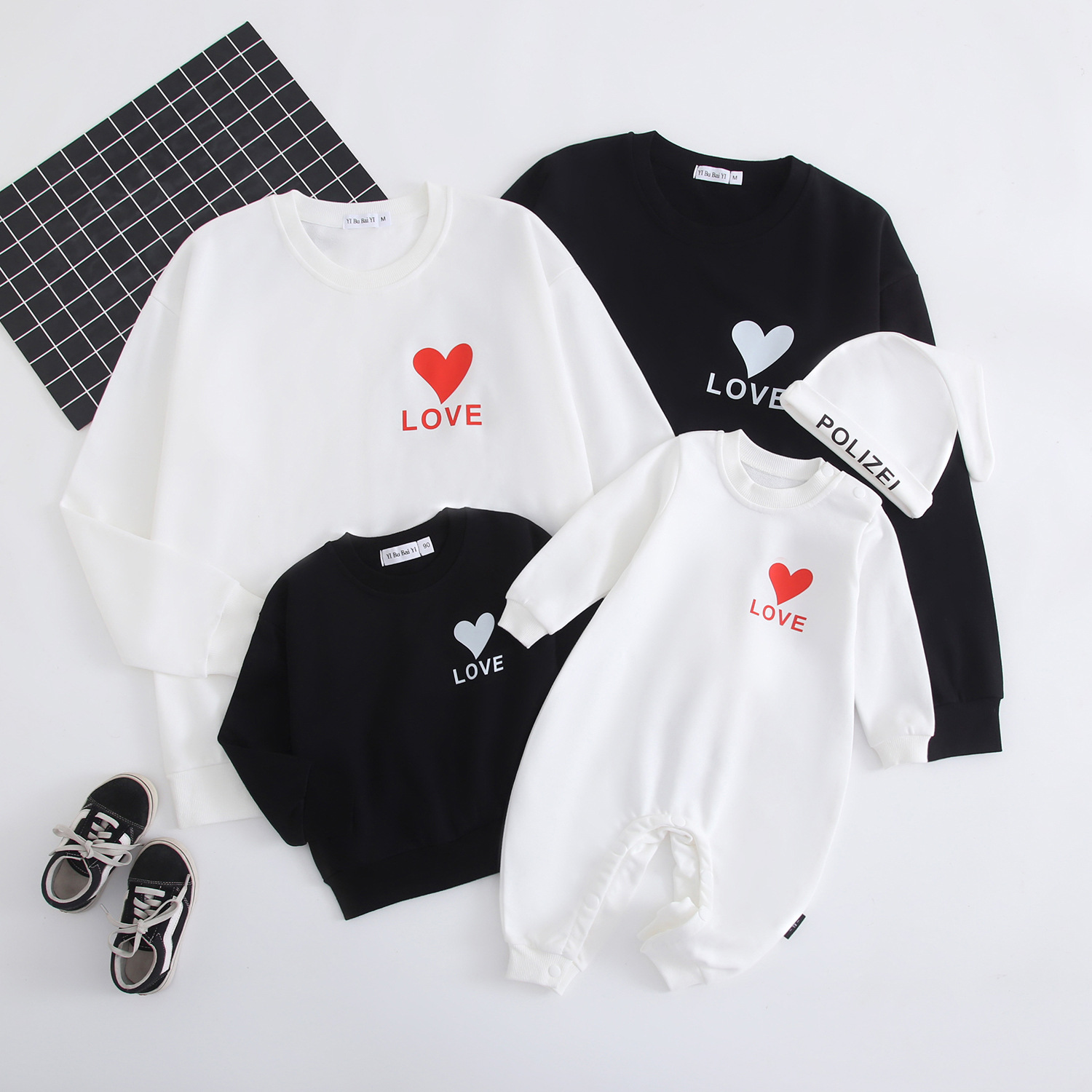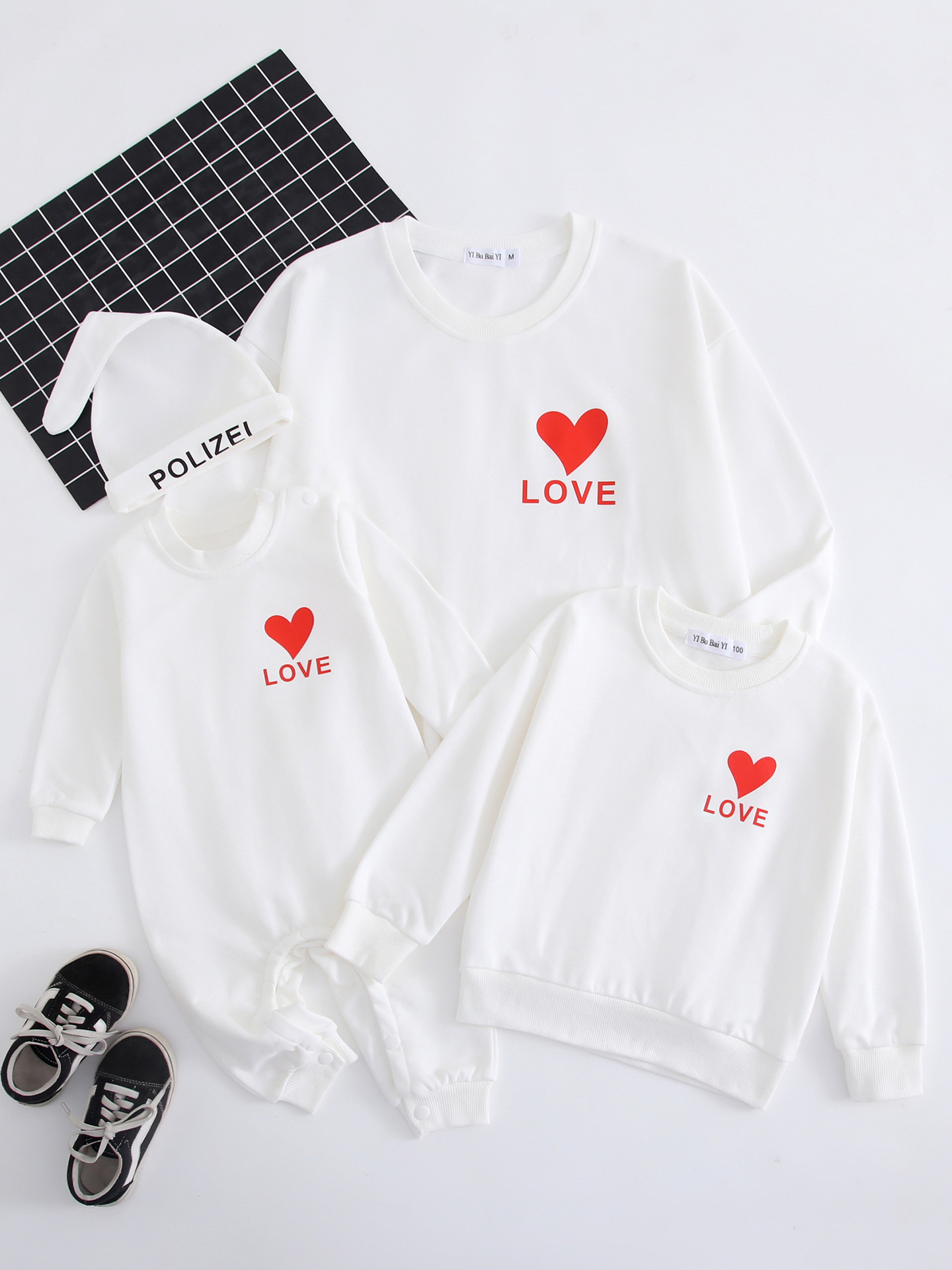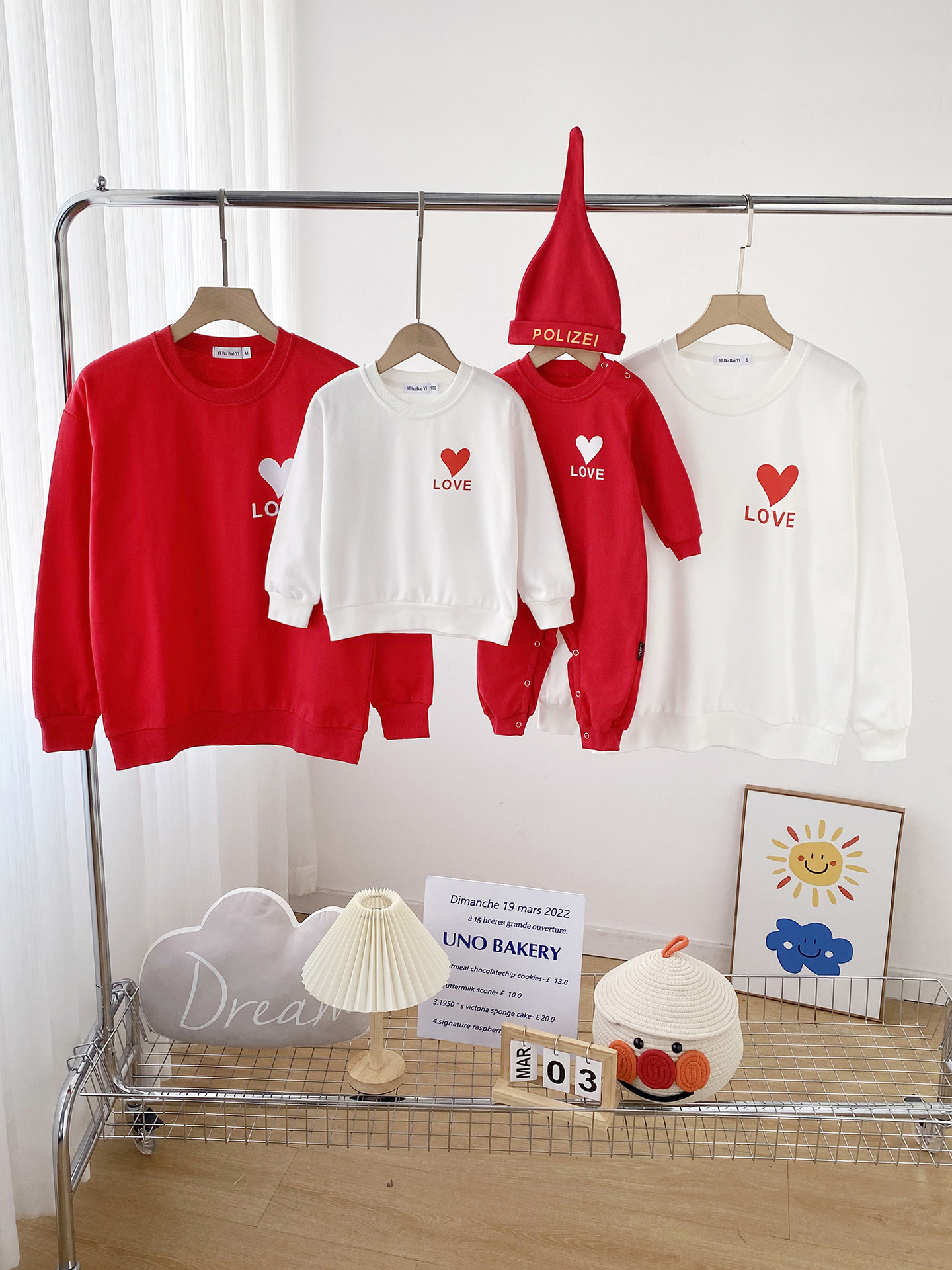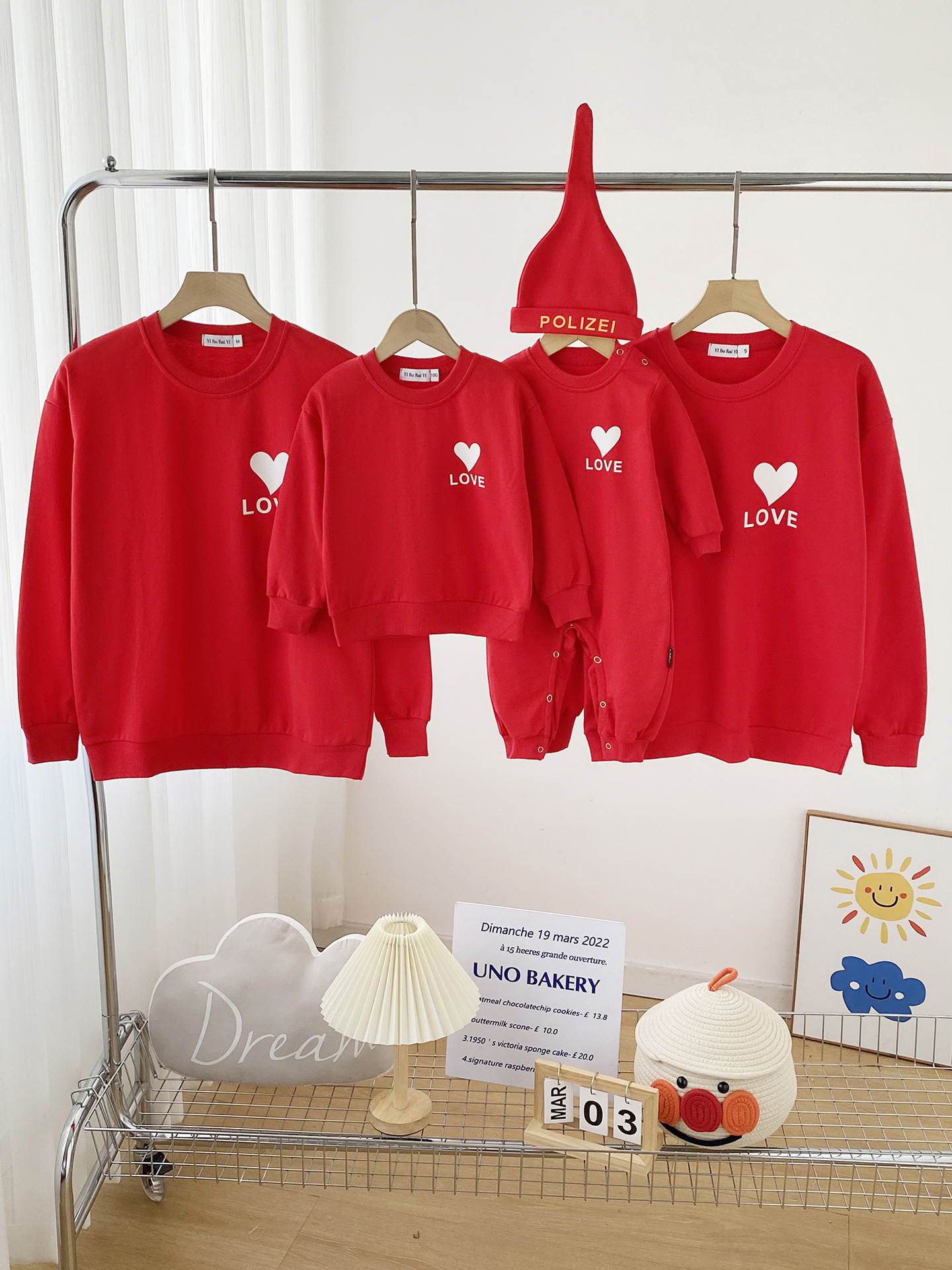 2023 nuevo suéter de algodón AMOR corazón estampado simple ropa de padre-hijo rojo festivo madre-hija Bebé Ropa familiar