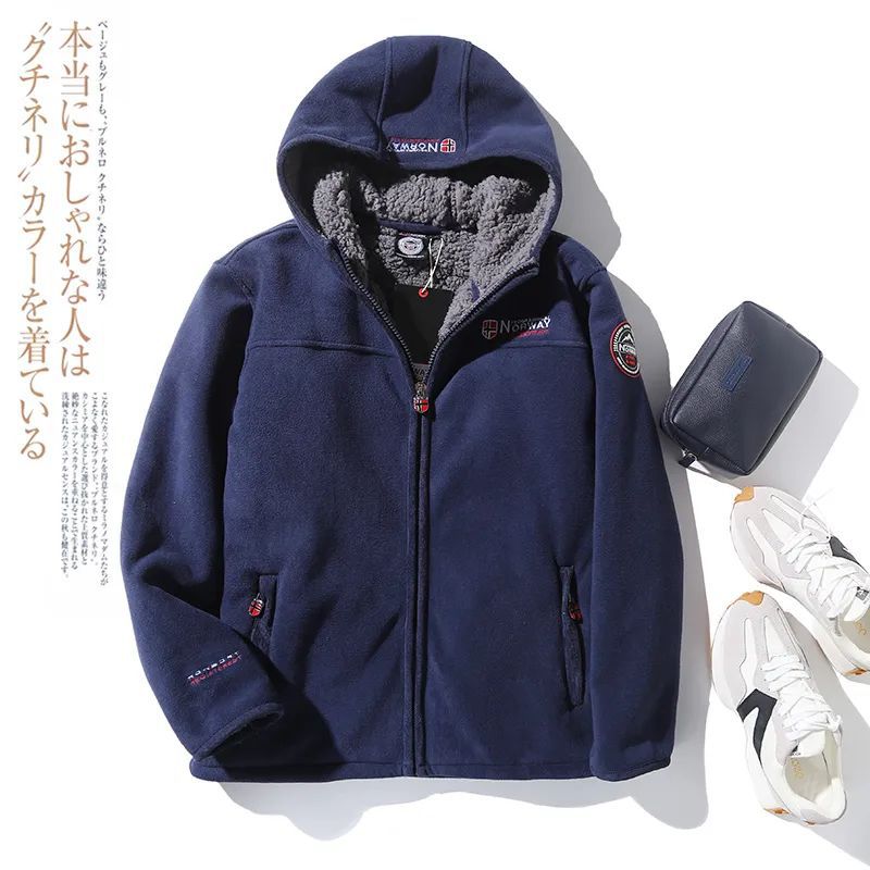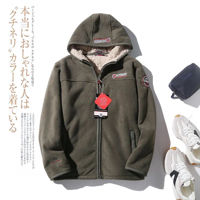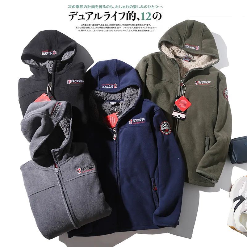 ¡Mover/Wei orden! Engrosado/abrigo de lana de cordero con capucha de los hombres otoño e invierno cálido polar fleece chaqueta de invierno