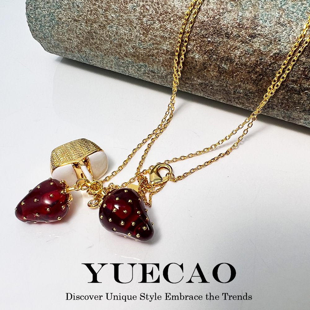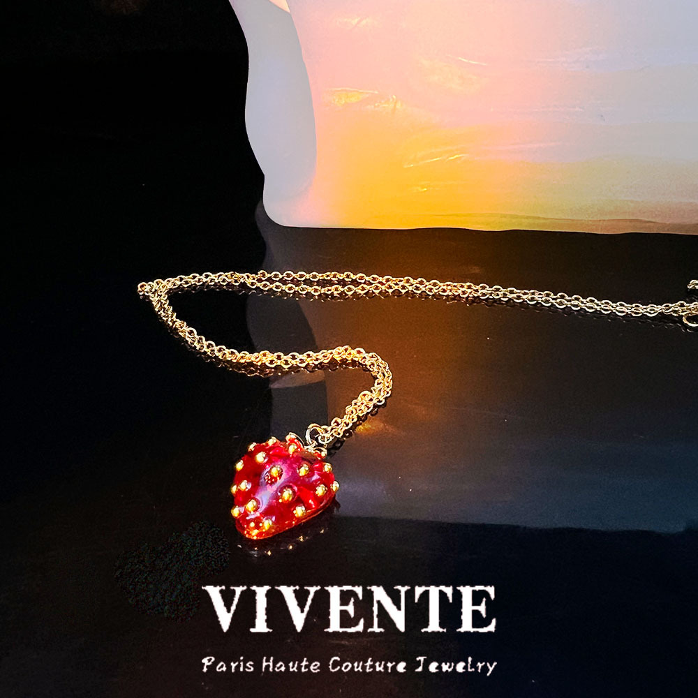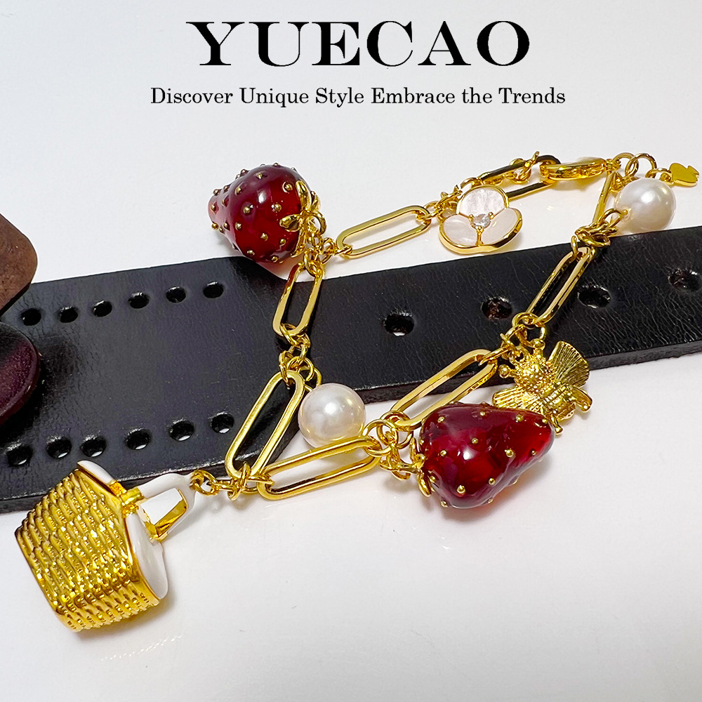 KS nueva fresa pulsera nicho ins cobre textura de oro Chapado en la fruta de alta definición marcado dopamina collar oído espárragos