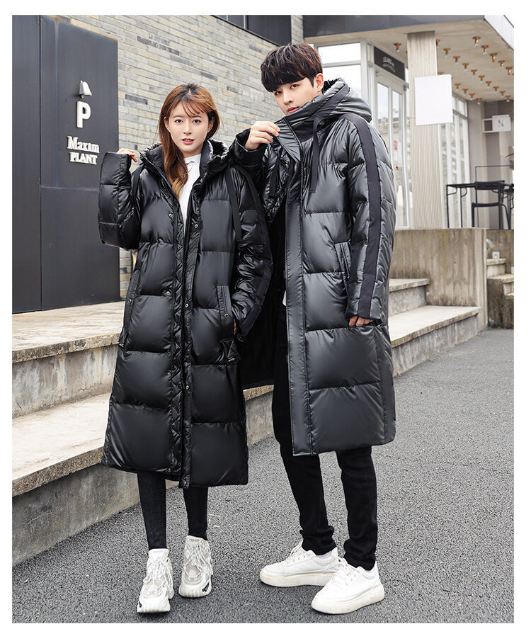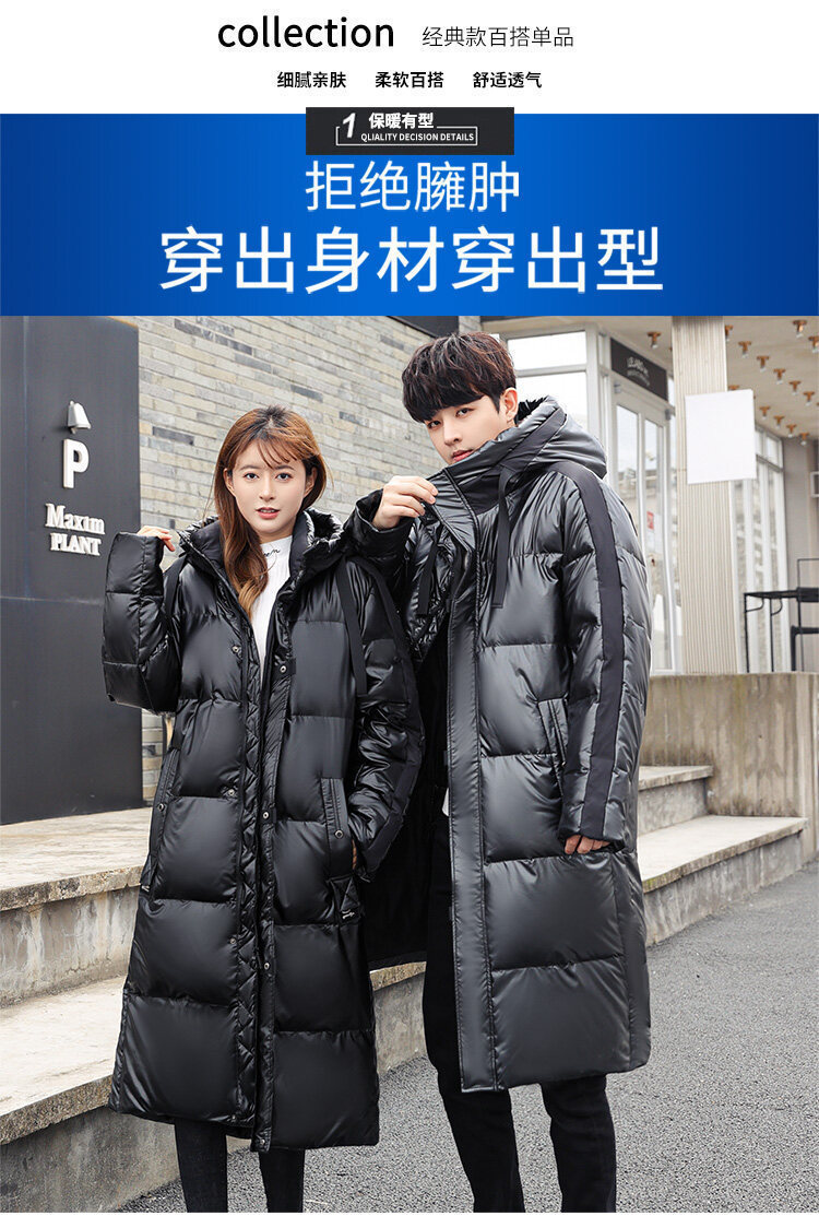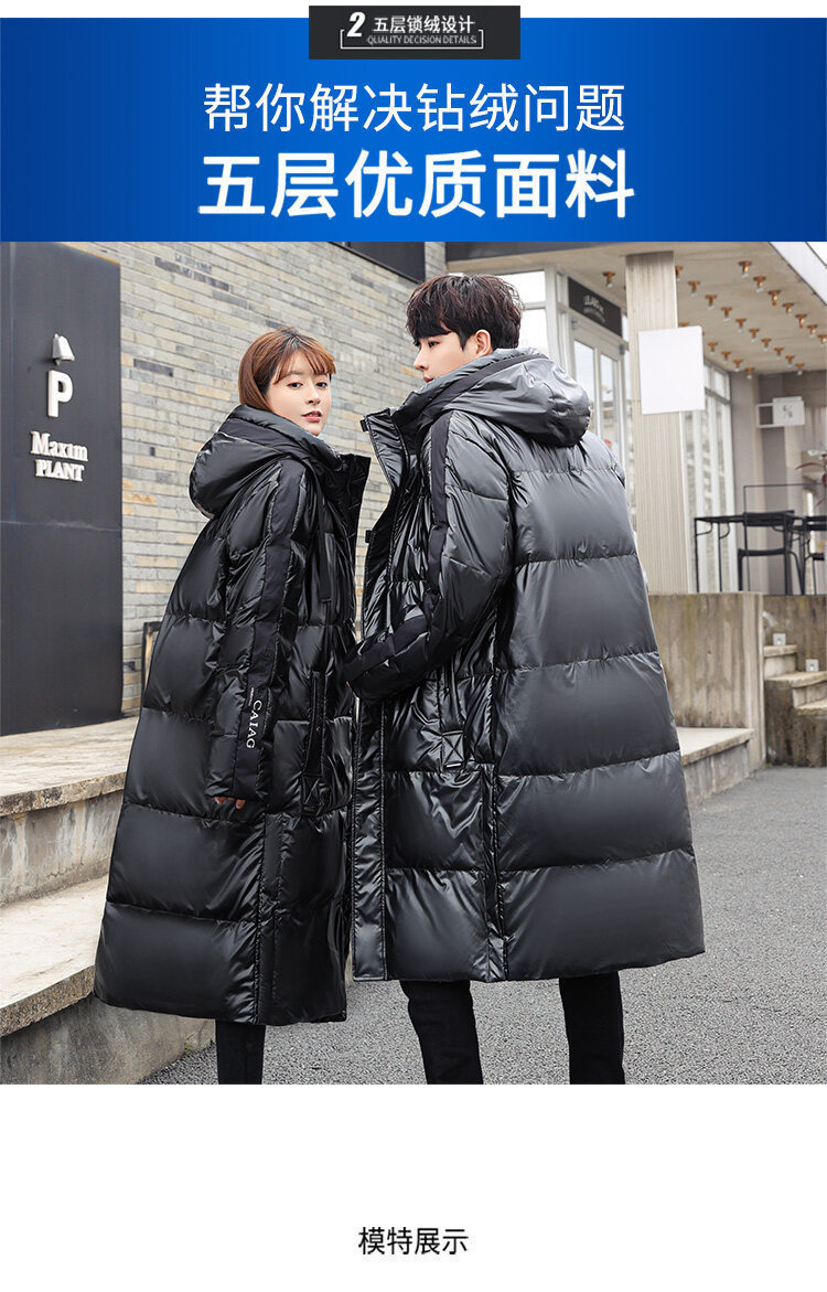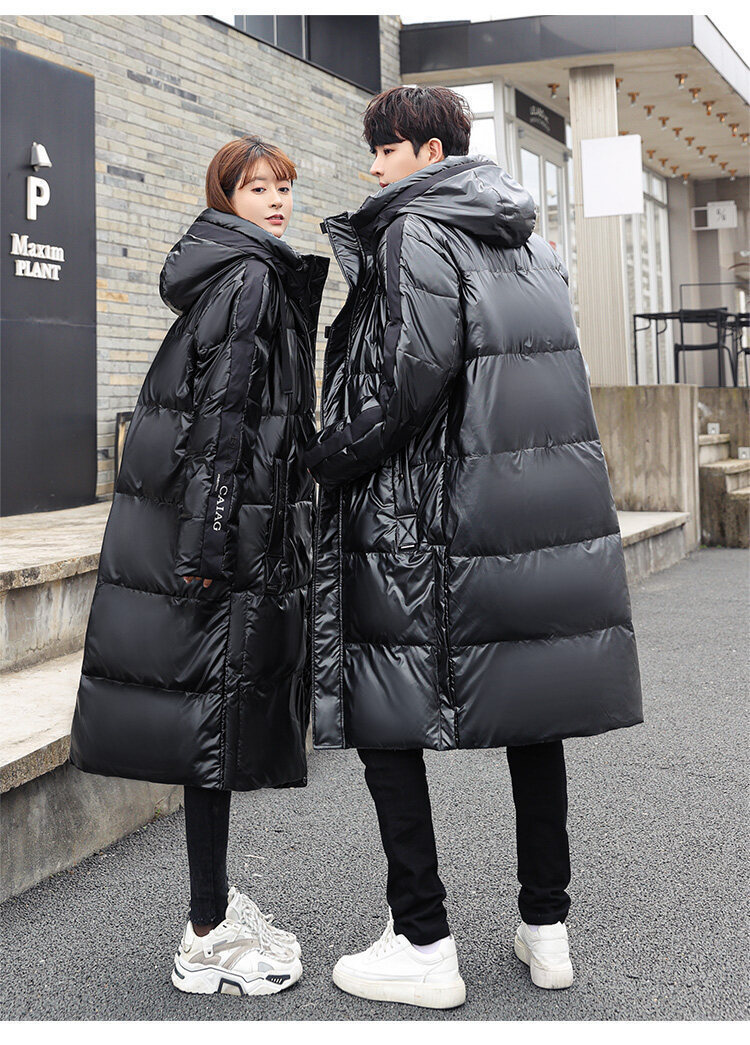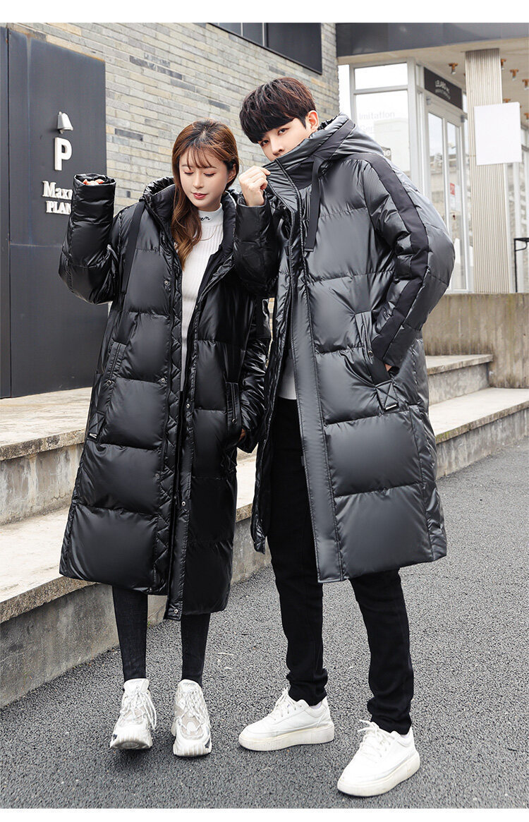 Abajo chaqueta de los hombres y de las mujeres de la mitad de la longitud de la superficie brillante engrosada cálida pareja abajo chaqueta de invierno de los hombres jóvenes Chaqueta de algodón acolchado